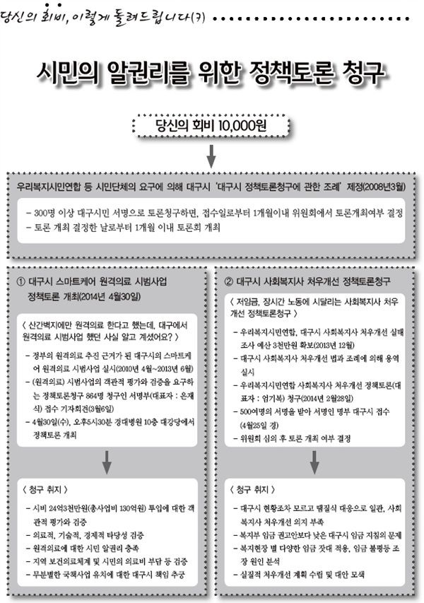 ȸ¿øºÐµéÀÌ ¸Å´Þ ³»´Â ȸºñ´Â ¿ì¸®º¹Áö½Ã¹Î¿¬ÇÕ È°µ¿¿¡ ¼ÒÁßÇÏ°Ô »ç¿ëµË´Ï´Ù. ½Ã¹ÎµéÀ» À§ÇÑ ¼ÒÁßÇÑ ¿¹»êÀ» È®º¸Çϰí, ³¶ºñ¼º ¿¹»êÀ» ¸·´Â µî ³³¼¼ÀÚÀÇ ±Ç¸®¸¦ ´ëº¯ÇÕ´Ï´Ù. º¹Áö°¡ ±Ç¸®·Î ÀÎÁ¤¹ÞÀ» ¼ö ÀÖµµ·Ï ´Üü ÁÖ¿ä Ȱµ¿°ú ¿¬°èÇÏ¿© ¾Ë·Áµå¸®°í ÀÖ½À´Ï´Ù. |