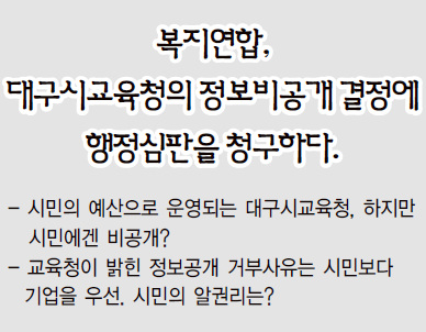 º¹Áö¿¬ÇÕ, ´ë±¸½Ã±³À°Ã»ÀÇ Á¤º¸ºñ°ø°³ °áÁ¤¿¡ ÇàÁ¤½ÉÆÇÀ» û±¸ÇÏ´Ù.2014.12.04 ±Û¾´ÀÌ : º¹Áö¿¬ÇÕ |