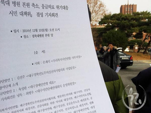 ±âÀÚȸ°ß¹® º¸±â - °æºÏ´ëº´¿ø º»¿ø Ãà¼Ò, ÀÀ±ÞÀÇ·á À§±â ´ëÀÀ ½Ã¹Î´ëÃ¥À§ ¹ßÁ· ±âÀÚȸ°ß(12.15) °ü·Ã ±â»ç º¸±â - [´ë±¸ MBC] °æ´ëº´¿ø Ãà¼Ò ³í¶õ(12.15) - [¿À¸¶ÀÌ´º½º] "´ë±¸½Ã¹ÎÀÇ °Ç° ´Þ¸° ¹®Á¦... º´¿øÀÌ °áÁ¤ÇÒ ÀÏ ¾Æ³Ä"(12.15) - [ÆòÈ´º½º] ù»ð ¶á °æºÏ´ëº´¿ø 'Á¦3º´¿ø', º»¿ø º´»ó Ãà¼Ò ³í¶õ (12.16)