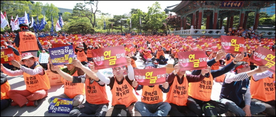 '°øÀû¿¬±Ý°È ±¹¹ÎÇൿ(°øÀû¿¬±Ý ±¹¹ÎÇൿ)'¿Í °øÀû¿¬±Ý°È¸¦ À§ÇÑ °øµ¿ÅõÀﺻºÎ´Â 4¿ù 25ÀÏ ¼¿ï, ºÎ»ê, ±¤ÁÖ ´ë±¸ µî 4°÷¿¡¼ Àü±¹µ¿½Ã´Ù¹ß ¡®°øÀû¿¬±Ý°È ¹ü±¹¹Î´ëȸ¡¯¸¦ ¿°í "°ø¹«¿ø¿¬±Ý °³¾Ç½Ãµµ Áß´Ü, ±¹¹Î¿¬±Ý°ú ±âÃÊ¿¬±Ý µî °øÀû¿¬±Ý °È, »õ´©¸®´ç ½ÉÆÇ"À» Ã˱¸Çß´Ù. À̳¯ Áýȸ¿¡´Â ¼¿ï 4¸¸¸íÀ» ºñ·Ô, ´ë±¸¿¡¼µµ 5õ¸í(°æÂûÃß»ê 4õ¸í) ÀÌ»óÀÌ Âü¿©Çß´Ù.