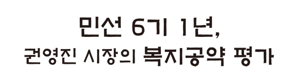 ¹Î¼± 6±â ±Ç¿µÁø ½ÃÀåÀÌ ÃëÀÓÇÑÁö 1³âÀÌ µÇ¾ú½À´Ï´Ù. ±Ç½ÃÀå °ø¾à Áß Áֿ亹Áö°ø¾àÀ¸·Î ´ë±¸Çü º¹Áö¾ÈÀü¸Á ±¸Ãà, Àå¾ÖÀÎÀÌ »ì±â ÁÁÀº »ýȰȯ°æ Á¶¼º, ¿©¼º°ú ¾ÆÀ̵éÀÌ ÇູÇÑ ´ë±¸°Ç¼³, ½Ã¹ÎÀÌ ÇູÇÑ °Ç°¼ºñ½º Á¦°ø µî 12°³ °ø¾àÀÌ ÀÖ½À´Ï´Ù. ´ë±¸½Ã´Â Áö³ ¹Î¼± 5±â±îÁö Áß¾ÓÁ¤ºÎÀÇ ¼±º°Àû º¹Áö¼ºñ½º °ø±Þó¿¡ ¸Ó¹°·¯ ÀÖ´Ù´Â ½Ã¹Î»çȸ´ÜüµéÀÇ ÁúŸ¸¦ ¹Þ¾Æ¿Ô´Âµ¥¿ä. ÃëÀÓ 1³âÀ» ¸ÂÀÌÇÑ ¹Î¼± 6±âÀÇ Æò°¡¸¦ 3¸íÀÇ ÆÐ³Îµé¿¡°Ô ´äº¯À» ¹Þ¾Æ Á¤¸®ÇÏ¿´½À´Ï´Ù.