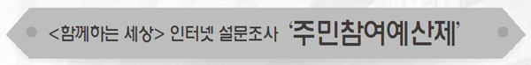1989³â ºê¶óÁú Æ÷¸£Åõ¾Ë·¹±×·¹¿¡¼ óÀ½ ½ÃÇàµÈ ÁÖ¹ÎÂü¿©¿¹»êÁ¦´Â ¿¹»êÆí¼º¿¡ ÁÖ¹ÎÀÌ Á÷Á¢ Âü¿©ÇÏ´Â Á¦µµÀÔ´Ï´Ù. ¿ì¸®³ª¶óµµ 2011³â 9¿ù Áö¹æÀçÁ¤¹ý °³Á¤À¸·Î Àü±¹ ÁöÀÚü¿¡ Àǹ«ÈµÇ¾ú´Âµ¥¿ä. ´ë±¸½Ã´Â Áö±Ý±îÁö Çü½ÄÀûÀ¸·Î Àϰ¥ÇÏ´Ù ¿ÃÇØ Á¶·Ê¸¦ °³Á¤ÇÏ¿© ÁÖ¹ÎÂü¿©¿¹»êÀ§¿øÀ» °ø°³¸ðÁýÇÏ¿© 100¸íÀ¸·Î ±¸¼ºÇϰí, ¿¹»êÇб³¿Í ÁÖ¹ÎÁ¦¾È»ç¾÷À» ½Ç½ÃÇß½À´Ï´Ù. À̹ø ¼³¹®Á¶»ç¿¡ 114¸íÀÌ ÀÀ´äÇØÁּ̽À´Ï´Ù. °¨»çµå¸³´Ï´Ù.