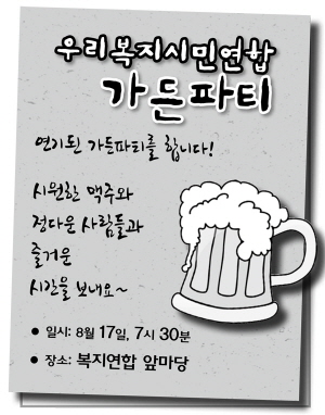 Àú³á 7½Ã, °¡µçÆÄƼ Àü Àá±ñ ¿¸° º¹Áö¿¬ÇÕ ¿î¿µÀ§¿øÈ¸. Æò¼Ò¿¡´Â »ç¹«½Ç ³» °Å½Ç¿¡¼ ȸÀǸ¦ Çß¾ú´Âµ¥ ÀÌ·¸°Ô »ç¹«Ã³ ¾Õ¸¶´ç¿¡¼ ÇßÁö¿ä. ¾î¶² À̾߱Ⱑ ¿À°¬À»±î¿ä? °¡À»¿¡ ¿¸± ´ë¾È»çȸº¹ÁöÇб³¿Í °ð ÇÏ°Ô µÉ ÈÄ¿øÇà»ç¿Í °ü·ÃµÈ À̾߱⸦ °£´ÜÇÏ°Ô ³ª´©¾ú½À´Ï´Ù. °¡µçÆÄƼ ¶§ ºËÁö ¸øÇÑ ºÐµé, ÀÌ µÎ Çà»ç¿¡¼ ²À ºÆ¾úÀ¸¸é ÇÕ´Ï´Ù.^^