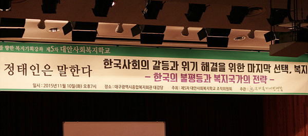 5Â÷ ´ë¾È»çȸº¹ÁöÇб³ ¸¶Áö¸· 5° Á¤ÅÂÀÎ ¼ÒÀå, Çѱ¹°æÁ¦¿Í ºÒÆòµî ÇØ¼Ò ¹æ¾È Ä¡¿ÇÏ°Ô ³íÁõÇØ¾ß 10¿ù 15ÀϺÎÅÍ ½ÃÀÛµÈ 5Â÷ ´ë¾È»çȸº¹ÁöÇб³°¡ 11¿ù 10ÀÏ Á¤ÅÂÀÎ Ä®Æú¶ó´Ï»çȸ°æÁ¦¿¬±¸¼Ò ¼ÒÀåÀÇ ¡®Çѱ¹»çȸÀÇ °¥µî°ú À§±âÇØ°áÀ» À§ÇÑ ¸¶Áö¸· ¼±ÅÃ, º¹Áö¡¯¸¦ ³¡À¸·Î Àüü °Á°¡ ¸¶¹«¸®µÇ¾ú´Ù. Á¤ÅÂÀÎ ¼ÒÀåÀº ¡®Çѱ¹ÀÇ ºÒÆòµî°ú º¹Áö±¹°¡ Àü·«¡¯À» °ÀÇ ºÎÁ¦·Î ¼±ÅÃÇßÀ» ¸¸Å ´õ ³ªÀº »çȸ·Î °¡±â À§Çؼ´Â Çѱ¹»çȸ¿¡¼ ´õ¿í ½Éȵǰí ÀÖ´Â ¡®ºÒÆòµî¡¯ ¹®Á¦¸¦ ¾î¶»°Ô Ç® °ÍÀΰ¡°¡ º¹Áö±¹°¡·Î °¡´Â Àü·«ÀÓÀ» °Á¶Çß´Ù. »çȸÀû °¥µî°ú °èÃþ °£ ´ÜÀýÀÌ °¥¼ö·Ï ½Éȵʿ¡ µû¶ó ºÒÆòµî ¹®Á¦¸¦ ÇØ°áÇÏÁö ¾Ê°í¼´Â ÀÌ À§±â¸¦ µ¹ÆÄÇÒ ¼ö ¾ø´Ù´Â ÆÇ´Ü¿¡¼ À̳¯ °ÀÇÀÇ ´ëºÎºÐÀ» ÇÇÄÉÆ¼ÀÇ ÀÌ·ÐÀ» Çѱ¹»çȸ¿¡ Á¢¸ñÇÏ¿© ÇØ¼³ÇÏ°í ´ë¾ÈÀ» ã´Âµ¥ ÇÒ¾ÖÇß´Ù. °ÀÇ Àü »ó¿µÇÑ ¡®Áö½Ää³Î e - ÇÇÄÉÆ¼°¡ ¸¶¸£Å©½º¿¡°Ô¡®µµ ÇÇÄÉÆ¼°¡ ÁöÀûÇÑ ºÐ¹è¹®Á¦¿Í °ü·ÃµÈ ¿µ»óÀ̾ú´Ù.