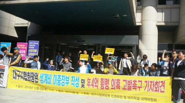 ´ë±¸Èñ¸Á´ëÃ¥À§ »ý°èºñ ¿¬ 4¾ï Ⱦ·É ÀÇȤ Á¦±â. ±¹È¸, ±¹°¡ÀαÇÀ§, ´ë±¸½Ã, ¾ð·Ð¿¡ ÀÌ¾î °ËÂû±îÁö ¼ö»ç2016.10.20 ±Û¾´ÀÌ : º¹Áö¿¬ÇÕ |