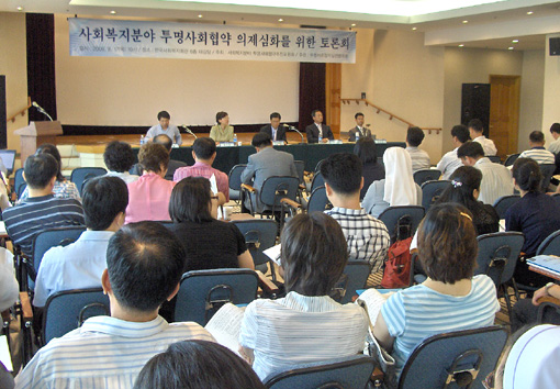 °æ»óºÏµµÀÇ 23°³ ½Ã¤ý±º Áß ¾ÆÁ÷µµ 15°³ ½Ã¤ý±ºÀº ÈÄ¿ø±Ý ³»¿ª °ø°³ÇÏÁö ¾Ê°í ÀÖ¾î... ¿ì¸®º¹Áö½Ã¹Î¿¬ÇÕ Á¶»ç°á°ú ¿ì¸®º¹Áö½Ã¹Î¿¬ÇÕÀº »çȸº¹Áö¹ýÀΰú »çȸº¹Áö½Ã¼³ÀÇ ÈÄ¿ø±Ý ³»¿ª °ø°³¿Í °ü·ÃÇØ °æ»óºÏµµÀÇ 23°³ ½Ã, ±ºÀÇ È¨ÆäÀÌÁö¸¦ 8¿ù17ÀÏ Á¶»çÇÑ °á°ú, ¼ºÁÖ±ºÀÌ À¯ÀÏÇÏ°Ô »çȸº¹Áö¹ýÀΰú ¹ýÀÎ ¼Ò¼Ó »çȸº¹Áö½Ã¼³ÀÇ ÈÄ¿ø±Ý ³»¿ªÀ» °ø°³ÇÑ °ÍÀ¸·Î µå·¯³µ´Ù. ±¸¹Ì¿Í »óÁÖ, ±èõ, Ä¥°î, ûµµ µî 5°³ ½Ã¤ý±ºÀº ÀϺΠº¹Áö¹ýÀΰú ½Ã¼³À» Á¦¿ÜÇÏ°í ºÎºÐ°ø°³¸¦ ÇßÀ¸¸ç, ³ª¸ÓÁö 17°³ ½Ã¤ý±ºÀº 2006³âµµ »ó¹Ý±â ÈÄ¿ø±Ý ³»¿ªÀ» ¾Æ¿¹ °ø°³ÇÏÁö ¾Ê°í ÀÖ´Â °ÍÀ¸·Î ¹àÇôÁ³´Ù. ÀÌ¿Í °ü·Ã, ¿ì¸®º¹Áö½Ã¹Î¿¬ÇÕÀº Áö³ 18ÀÏ ¼º¸í¼¸¦ ÅëÇØ Áï°¢ °ø°³¸¦ Ã˱¸ÇßÀ¸¸ç, ¼º¸í¼ ÀÌÈÄ °ø°³¿©ºÎ¸¦ ÆÄ¾ÇÇϱâ À§ÇØ 8¿ù23ÀÏ 2Â÷·Î Á¶»çÇß´Ù. ±× °á°ú Ä¥°î±ºÀÌ ³ª¸ÓÁö ¹ýÀΰú ½Ã¼³ÀÇ ÈÄ¿ø±Ý ³»¿ªÀ» °ø°³ÇßÀ¸¸ç, ±ºÀ§±º°ú ¿ïÁø±ºÀÌ °ø°³Çϱ⠽ÃÀÛÇß´Ù. ±×·¯³ª ¿©ÀüÈ÷ 15°³ ½Ã¤ý±ºÀº °ø°³Àǹ«¸¦ ¾Æ´ÂÁö ¸ð¸£´ÂÁö ¹¬¹¬ºÎ´äÀ¸·Î ÀϰüÇϰí ÀÖ´Â °ÍÀ¸·Î È®ÀεǾú´Ù. ½Ã¤ý±º¤ý±¸ÀÇ ÈÄ¿ø±Ý °ø°³ Àǹ«´Â Áö³ 2005³â 7¿ù¿¡ °³Á¤µÇ¾î ¿ÃÇØºÎÅÍ ½ÃÇàµÇ´Â »çȸº¹Áö¹ýÀÎ À繫ȸ°è±ÔÄ¢¿¡ ºÐ¸íÈ÷ ¸í½ÃµÇ¾î ÀÖ´Ù. ÀÌ ½ÃÇà±ÔÄ¢¿¡ ÀÇÇϸé, º¹Áö¹ýÀÎÀÇ ´ëÇ¥ÀÌ»ç¿Í º¹Áö½Ã¼³ÀÇ ÀåÀº ¸Å¹Ý±â Á¾·á ÈÄ 10ÀÏÀ̳»¿¡ ÈÄ¿ø±Ý ¼öÀÔ ¹× »ç¿ë°á°ú º¸°í¼¸¦ °üÇÒ ½ÃÀåÀ̳ª ±º¼ö, ±¸Ã»Àå¿¡°Ô Á¦ÃâÇϵµ·Ï µÇ¾î ÀÖ°í, Á¦Ãâ¹ÞÀº ½ÃÀå, ±º¼ö ¹× ±¸Ã»ÀåÀº ÈÄ¿ø±ÝÀÇ ¼öÀÔ ¹× »ç¿ë°á°ú ³»¿ª°ú ÈÄ¿ø±Ý Àü¿ë°èÁ µîÀÇ ÈÄ¿ø±Ý ÀÔ¤ýÃâ±Ý ³»¿ªÀ» ¸Å¹Ý±â Á¾·á ÈÄ 30ÀÏ À̳»¿¡ ÀÎÅͳÝÀ» ÅëÇØ °ø°³Çϵµ·Ï µÇ¾î ÀÖ´Ù. ¶ÇÇÑ °ø°³ÀϷκÎÅÍ 3°³¿ù°£Àº ´©±¸µçÁö º¼ ¼ö ÀÖµµ·Ï °Á¦Çϰí ÀÖ´Ù´Â °ÍÀÌ´Ù. ´Ù½Ã ¸»ÇØ Àϳ⿡ µÎ ¹ø¾¿ ÇØ´ç ½Ã¤ý±º¤ý±¸´Â ÀÚü ȨÆäÀÌÁö¸¦ ÅëÇØ Àǹ«ÀûÀ¸·Î °ø°³ÇÏ°Ô µÇ¾î ÀÖ°í, ÀÌ¿¡ µû¶ó »ó¹Ý±â ÈÄ¿ø±Ý ³»¿ªÀ» 7¿ù¸»±îÁö °ø°³ÇØ¾ß µÈ´Ù´Â °Í. ¸¸¾à, »çȸº¹Áö¹ýÀΰú ½Ã¼³ÀÌ ÈÄ¿ø±Ý ³»¿ªÀ» °ø°³ÇÏÁö ¾ÊÀ¸¸é ¾î¶»°Ô µÉ±î? »çȸº¹Áö»ç¾÷¹ý Á¦58Á¶¿¡ ÀÇÇϸé, º¸°Çº¹ÁöºÎÀå°üÀ̳ª ½ÃµµÁö»ç ¶Ç´Â ½ÃÀå¤ý±º¼ö¤ý±¸Ã»ÀåÀº ÈÄ¿ø±Ý°ú °ü·ÃµÈ »çÇ×À» À§¹ÝÇÒ ½Ã 300¸¸¿ø ÀÌÇÏÀÇ °úÅ·Ḧ ºÎ°úÇÒ ¼ö ÀÖµµ·Ï µÇ¾î ÀÖ´Ù. ±×·¯³ª ÇöÀçÀÇ ÈÄ¿ø±Ý ¹Ì°ø°³´Â °úÅÂ·á ºÎ°úÀÇ Ã¥ÀÓÀÌ ÀÖ´Â ½Ã¤ý±º¤ý±¸°¡ ÀÚ½ÅÀÇ Áöµµ°¨µ¶ ¼ÒȦ·Î ºú¾îÁø °æ¿ì°¡ ´ëºÎºÐÀÌ¾î¼ »ç½Ç»ó ¹úÄ¢±ÔÁ¤Àº À¯¸í¹«½ÇÇÏ´Ù ÇϰڴÙ. »çȸº¹ÁöÇöÀåÀÇ ÇÑ °ü°èÀÚ´Â ¡°¹Ù·Î Áö¿ªÁֹεéÀÇ ¼¼±Ý°ú ±âºÎ·Î ¿î¿µµÇ´Â »çȸº¹Áö½Ã¼³°ú ±× ¿î¿µ¹ýÀεéÀÇ ÈÄ¿ø±Ý °ø°³´Â ³Ê¹«³ª ´ç¿¬ÇÏ´Ù¡±°í ÇÏ¸é¼ ¡°¾ÆÁ÷±îÁö ÈÄ¿ø±Ý °ø°³Àǹ« »ç½Ç Á¶Â÷ ¸ð¸£´Â ÁöÀÚü°¡ ´õ Å« ¹®Á¦¡±¶ó°í ²¿Áý¾ú´Ù. ±×µ¿¾È ½Ã¼³ºñ¸® À¯Çü Áß¿¡ ´ëÇ¥ÀûÀÎ °ÍÀÌ ÈÄ¿ø±ÝÀ» ºñÀÚ±ÝÀ¸·Î µÐ°©½ÃŰ´Â °ÍÀ̾ú´Ù. ´ëºÎºÐÀÇ »çȸº¹Áö¹ýÀÎÀº ÀçÁ¤È®º¸¸¦ À§ÇØ º°µµÀÇ ¼öÀÍ»ç¾÷ü¸¦ °®°í ÀÖÁö ¾Ê´Ù. ±×·³¿¡µµ ºÒ±¸ÇÏ°í °è¼Ó ¸öÁýÀ» Ű¿ï ¼ö ÀÖ´Â ºñ°áÀÌ µµ´ëü ¹«¾ùÀÎÁö ±Ã±ÝÇÏ´Ù´Â ¾ê±âÀε¥... ¿ì¸®º¹Áö½Ã¹Î¿¬ÇÕÀº ¡°ÁöÀÚüµéÀÇ ÈÄ¿ø±Ý °ø°³¸¦ °è¼Ó ¸ð´ÏÅÍ ÇÔ°ú µ¿½Ã¿¡ ÈÄ¿ø±Ý »ç¿ë³»¿ª¿¡ ´ëÇÑ ÁøÀ§ÆÄ¾Çµµ Á߿䡱ÇÏ´Ù°í ¸»Çß´Ù. °ø°³°¡ Áß¿äÇÑ °ÍÀÌ ¾Æ´Ï¶ó Á¦´ë·Î µÈ °ø°³¿©¾ß ÇÑ´Ù´Â °Í. ¿ÃÇØºÎÅÍ ½ÃÇàµÇ´Â »çȸº¹Áö¹ýÀΰú ½Ã¼³ÀÇ ÈÄ¿ø±Ý °ø°³°¡ »çȸº¹Áö¹ýÀΰú ½Ã¼³ÀÇ Åõ¸í¼ºÀ» ³ôÀ̰í, Áö¿ª»çȸ·ÎºÎÅÍ ½Å·Ú¸¦ ³ôÀÏ ¼ö ÀÖ´Â °è±â°¡ µÇ±â¸¦ ±â´ëÇÑ´Ù. ÇÑÆí, Áö³ 8¿ù17ÀÏ ¼¿ï¿¡¼´Â »çȸº¹ÁöºÐ¾ß Åõ¸í»çȸÇù¾àÀ» À§ÇÑ Åä·Ðȸ°¡ °³ÃÖµÈ ¹Ù ÀÖ´Ù. ÀÌ ÀÚ¸®¿¡¼µµ Âü¼®ÀÚµéÀº À̱¸µ¿¼ºÀ¸·Î ÀçÁ¤Åõ¸íȰ¡ ¼±°á°úÁ¦¶ó°í ÁÖÀåÇß´Ù°í ÇÑ´Ù. ¡°±¹°íº¸Á¶±Ý ¿î¿µÀÇ Åõ¸í¼ºÀ» ÀÏÂ÷ÀûÀ¸·Î È®º¸ÇØ¾ß ÇÑ´Ù¡±, ¡°½Ã¼³¿î¿µºñÀÇ °ø°³¿Í Åõ¸íÇÑ ÀΰǺñ Áö±ÞÀÌ ÇÊ¿äÇÏ´Ù¡±, ¡°¾öÁ¤ÇÑ È¸°è°¨»ç ½Ç½Ã¿Í ÈÄ¿ø±Ý ¼öÀÔ°ú ÁöÃâ °ø°³ ¹× ³»ºÎ°í¹ßÁ¦µµ Ȱ¼ºÈ¸¦ À§ÇÑ ½Å°í¼¾ÅÍ ¼³Ä¡°¡ ÇÊ¿äÇÏ´Ù¡± µîÀÇ Á¦¾ÈÀÌ ½ñ¾ÆÁ® ³ª¿Ô´Ù´Â °ÍÀÌ´Ù(»çÁø). ¸Å³â ÅÍÁö´Â »çȸº¹Áö½Ã¼³ÀÇ ºñ¸®³ª Àαǹ®Á¦¿¡ ´ëÇØ »çȸº¹Áö°èµµ ´õ ÀÌ»ó °¡¸¸È÷ ÀÖ´Ù°¡´Â ¸ðµÎ°¡ °ø¸êÇÒ ¼ö ÀÖ´Ù¶ó´Â À§±âÀǽÄÀÌ ÆØ¹èÇØÁö°í ÀÖ´Ù. ±×·¯³ª ÀÚÁ¤³ë·ÂÀ» ÇÏ°Ú´