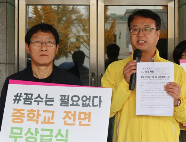 ¡ã 'ÁßÇб³ Àü¸é ¹«»ó±Þ½Ä Ã˱¸' ±âÀÚȸ°ß(2018.11.8.´ë±¸½ÃÀÇȸ ¾Õ) / »çÁø.ÆòÈ´º½º ±è¿µÈ ±âÀÚ ½Ã¹Î»çȸ´Â ÀÌ¹Ì µé²ú°í ÀÖ´Ù. Áö³ 10¿ù 31ÀÏ¿¡´Â ÇÑ ´ë±¸½Ã¹ÎÀÇ 'û¿Í´ë ±¹¹Îû¿ø'±îÁö µîÀåÇß´Ù. ÀÌ Ã»¿øÀÎÀº "ÀÚĪ ±³À°¼öµµ¸¦ ¿ÜÄ¡´Â ´ë±¸¸¸ ÁßÇб³ ¹«»ó±Þ½ÄÀ» ÇÏÁö ¾Ê´Â´Ù. ´ë±¸¿¡ »ç´Â °Ô Á˵µ ¾Æ´Ï°í ¸Ô°í »ì±âµµ Èûµçµ¥ ¼¹ÎµéÀº Áö¿ª °ÝÂ÷¿¡ µî°ñÀÌ ÈØ´Ù. ´ë±¸µµ ÁßÇлý Àü¸é ¹«»ó±Þ½ÄÀÌ ½Ç½ÃµÇµµ·Ï ÇØ´Þ¶ó"°í û¿øÇß´Ù. ½Ã±³À°Ã» ÀÚÀ¯°Ô½ÃÆÇ¿¡µµ »Ô³ '¸¾'µéÀÇ ºñÆÇ¼º °Ô½Ã¹°ÀÌ ¿Ã¶ó¿À°í ÀÖ´Ù. Áö¿ª¿¡¼ 10³â° '¹«»ó±Þ½Ä ¿îµ¿'À» ÆîÄ£ ½Ã¹Î´Üü¿Í Á¤´çµµ ´Ù½Ã ¸ñ¼Ò¸®¸¦ ³Â´Ù. ¿ì¸®º¹Áö½Ã¹Î¿¬ÇÕ, ´ë±¸°æ½Ç·Ã, ´ë±¸½Ã¹Î´Üü¿¬´ëȸÀÇ, ´ë±¸°æºÏ¿©¼º´Üü¿¬ÇÕ, Àü±³Á¶´ë±¸ÁöºÎ, Á¤ÀǴ硤¹ÎÁß´ç ´ë±¸½Ã´ç µî 20¿©°³ ´Üü´Â 8ÀÏ ´ë±¸½ÃÀÇȸ ¾Õ¿¡¼ ±âÀÚȸ°ßÀ» ¿°í "ÃÊ¡¤Áß¡¤°í ¹«»ó±Þ½Ä ½ÃÇà Àü±¹ Æò±Õ ºñÀ²Àº 82.5%ÀÎ ¹Ý¸é, ´ë±¸´Â 69.2%·Î Àü±¹ Æò±Õµµ ¾ÈµÈ´Ù"¸ç "ÀÎõ¡¤¼¼Á¾¡¤ÀüºÏ¡¤Àü³²¡¤°¿ø¡¤±¤ÁÖ´Â ÀÌ¹Ì ÃÊ¡¤Áß¡¤°í Àü¸é ¹«»ó±Þ½ÄÀ» ½ÃÇà ÁßÀÌ°í ³»³â¿£ ´ëºÎºÐ Áö¿ªÀÌ °íµîÇб³±îÁö È®´ë ½ÃÇàÇÑ´Ù"°í Çß´Ù.
