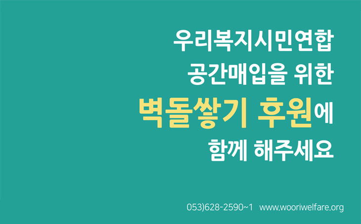 Ç®»Ñ¸® ÀÚÄ¡¿îµ¿°ú º¹Áö¿îµ¿À» ÆîÄ¡±â À§ÇÑ ¿ì¸®º¹Áö½Ã¹Î¿¬ÇÕ °ø°£¸ÅÀÔ°ú º®µ¹½×±â ÈÄ¿ø2021.02.02 ±Û¾´ÀÌ : º¹Áö¿¬ÇÕ |