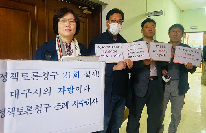 ¡ã ´ë±¸½ÃÀÇȸ ±âȹÇàÁ¤À§¿øÈ¸ ½Ã¹ÎÁ¤Ã¥Åä·Ðȸ ½ÉÀÇ Àü ÇÇÄϽÃÀ§ [°øµ¿¼º¸í] ´ë±¸½ÃÀÇ ±Ëº¯, °Å¼ö±â ½ÃÀÇȸ. Á¤Ã¥Åä·Ðû±¸ °³¾Ç¾È »óÀÓÀ§ Åë°ú ±Ôź (5.1) 5¿ù 1ÀÏ ´ë±¸½ÃÀÇȸ ±âȹÇàÁ¤À§¿øÈ¸´Â ±×µ¿¾È ³í¶õÀÌ µÈ ¡®´ë±¸½Ã Á¤Ã¥Åä·Ðû±¸¿¡ °üÇÑ Á¶·Ê °³Á¤¾È¡¯(ÀÌÇÏ Á¤Ã¥Åä·Ðû±¸Á¶·Ê)À» ¼öÁ¤ Åë°ú½ÃÄ×´Ù. Åë°úµÈ °³Á¤¾ÈÀº û±¸ÀοøÀ» ÁýÇàºÎ ¾ÈÀÎ 1,500¸íÀ» 300¸í ³·Ãç 1,200¸íÀ¸·Î ¼öÁ¤Çß´Ù. À̳¯ ´ë±¸½ÃÀÇȸ¸¦ ¹æÃ»ÇÑ ½Ã¹Î»çȸ´Üü´Â ´ë±¸½ÃÀÇ ±Ëº¯°ú °Å¼ö±â ½ÃÀÇȸÀÇ ¾ßÇÕÀÇ °á°ú¶ó°í Æò°¡Çß´Ù. ±âÁ¸ Á¤Ã¥Åä·Ðû±¸ ¼¸íÀÎ ¼ö´Â 300¸íÀÌ´Ù. [±âÀÚȸ°ß] ´ë±¸½ÃÀÇȸ´Â Á¤Ã¥Åä·Ðû±¸ Á¶·Ê °³¾Ç¾ÈÀ» ºÎ°áÇ϶ó! (5.4) ´ë±¸½ÃÀÇȸ »óÀÓÀ§¸¦ Åë°úÇÑ Á¤Ã¥Åä·Ðû±¸Á¶·Ê °³Á¤¾ÈÀÇ º»È¸ÀÇ ºÎ°áÀ» Ã˱¸Çß´Ù. óÀ½ºÎÅÍ ³¡±îÁö ÀϰüµÇÁö ¸øÇÑ ´ë±¸½ÃÀÇ °³Á¤ÀÌÀ¯´Â ¹°·Ð, µµÀÔÃëÁö, ¿ª»ç, ¼º°ú¿¡ ´ëÇÑ ºÎÁ¤ µî ±Ëº¯ÀÇ ¿¬¼ÓÀ̾ú´Ù¸ç ÁýÇàºÎÀÇ ½Ã³à°¡ ¾Æ´Ñ ÀÌ»ó ÁÖ¹ÎÀÇ ´ëÇ¥¶ó¸é ´ÜÈ£È÷ °ÅºÎÇÒ °ÍÀ» Ã˱¸Çß´Ù. ±×·¯³ª ´ë±¸½ÃÀÇȸ´Â »óÀÓÀ§ ¼öÁ¤¾ÈÀ» Åë°ú½ÃÄ×´Ù. [°øµ¿¼º¸í] ´ë±¸ ÀÀ±ÞȯÀÚ »ç¸Á»ç°Ç, Áß¾ÓÁ¤ºÎ ¶«Áú󹿰ú ¹ÌºÀÃ¥ ±Ôź (5.8) Áö³ 3¿ù 19ÀÏ Ãß¶ôÇÑ 10´ë ÇлýÀÌ 119 ±¸±ÞÂ÷¿¡ ½Ç·Á 2½Ã°£ ³Ñ°Ô ¶°µ¹´Ù ÀÀ±Þ½ÇÀ» °á±¹ ãÁö ¸øÇØ »ç¸ÁÇÑ »ç°Ç°ú °ü·ÃÇÏ¿© º¸°Çº¹ÁöºÎ´Â 5¿ù 4ÀÏ ´ë±¸ 4°³ ÀÀ±ÞÀÇ·á±â°ü¿¡ ´ëÇÑ ÇàÁ¤Ã³ºÐÀ» ³»·È´Ù. ±×·¯³ª ±¹¹ÎÀÇ »ý¸íÀ» Ã¥ÀÓÁ®¾ß ÇÒ º¸°Çº¹ÁöºÎÀÇ Ã¥ÀÓ¸éÇÇ¿ë ¹ÌºÀÃ¥À» ºñÆÇÇß´Ù. ÀÌÈÄ¿¡µµ ÀÀ±Þ½Ç ÀÌ¼Û »ç¸Á »ç°ÇÀº °è¼Ó ¹ß»ýÇϰí ÀÖ´Ù. [°øµ¿¼º¸í] ´ë±¸½Ã¿¡ Á¤Ã¥Åä·Ðû±¸ 8°Ç Á¢¼ö, ½Ã¹ÎÀÇ ½ÃÁ¤Âü¿© ÀÇÁö ²ªÀ» ¼ö ¾ø´Ù (5.22) ![]() Áö³ 19ÀÏ, 7°³ ½Ã¹Î»çȸ´ÜüµéÀº ÃÑ 8°ÇÀÇ Á¤Ã¥Åä·Ðû±¸¼¸¦ ´ë±¸½Ã¿¡ Á¦ÃâÇß´Ù. ´ë±¸½ÃÀÇ Á¤Ã¥Åä·Ðû±¸Á¦µµ °³¾Ç¿¡ ¸Â¼ 5¿ù 2ÀϺÎÅÍ 19ÀϱîÁö 19ÀÏ ¸¸¿¡ Á¤Ã¥Åä·Ðû±¸¼¿Í ¼¸íÀθíºÎ¸¦ Á¦ÃâÇÑ °Í. ½Ã¹Î»çȸ´Üü´Â ½ÃÁ¤ÀÇ ¿À¸¸ÀÌ ºÒÅëÀ» ³º°í Á¹¼Ó¡¤ÀϹæ ÅëÇàÀ¸·Î À̾îÁ® À̹ø Á¤Ã¥Åä·Ðû±¸ ¼¸íÀ¸·Î À̾îÁ³´Ù°í ¹àÇû´Ù. [¼º¸í] ±Þ½Äºñ¸®, ¹ßº»»ö¿øÇÏ¿© ÀϹú¹é°èÇÏ°í ¾ÈÀüÇÑ ¸Ô°Å¸® À¯Åë¸Á Ã˱¸ (5.24) Áß±¹»ê °í»ç¸®¿Í µµ¶óÁö 90Åæ(¾à 10¾ï »ó´ç)À» ±¹³»»êÀ¸·Î µÐ°©½ÃÄÑ ´ë±¸¸¦ ºñ·ÔÇÑ °æºÏ, °æ³² µîÀÇ Çб³¿Í º´¿ø, ¿ä¾ç¿ø µî 1õ 5¹é¿© °÷¿¡ À¯ÅëÇÑ °¡°ø¾÷ÀÚ°¡ ±¸¼ÓµÇ¾ú´Ù. º¹Áö¿¬ÇÕÀº ±Þ½Ä ºñ¸®°¡ ¾Æ¿¹ ¹ßºÙÀÏ ¼ö ¾øµµ·Ï °æÂûÇÑ °·ÂÇÑ Ã³¹ú°ú ÇàÁ¤´ç±¹ÀÇ ´ëÃ¥ ¸¶·ÃÀ» Ã˱¸Çß´Ù. [º¸µµÀÚ·á] Àå¾ÖÀÎÇдë½Ã¼³ ÇÑ»ç¶û¸¶À» Æó¼â! ´Þ¼º±º Àå¾ÖÀÎ ±Ç¸®º¸Àå ÅõÀï¼±Æ÷ ÁýÁß Çൿ (5.31) ![]() 420Àå¾ÖÀÎÂ÷º°Ã¶Æó´ë±¸ÅõÀ↓´ë µîÀº Àå¾ÖÀÎÇдë¹ýÀÎÀÇ ¼³¸³Çã°¡ Ãë¼Ò¿Í ÇÑ»ç¶û¸¶À» Æó¼â, ÇÑ»ç¶û¸¶À» °ÅÁÖ Àå¾ÖÀÎ °³Àκ° 24½Ã°£ Áö¿ø º¸Àå, Àå¾ÖÀÎ ÀαÇÄ§ÇØ°ÅÁֽü³ ¿ø½ºÆ®¶óÀÌÅ© ¾Æ¿ôÁ¦¸¦ µµÀÔ, ¹ß´ÞÀå¾ÖÀΰú ÁßÁõÀå¾ÖÀÎ °³Àκ° 24½Ã°£ °ø°øÃ¥ÀÓ µ¹º½ ½ÇÇö °ø¾à ÀÌÇà µîÀ» ¿ä±¸ÇÏ¸ç ´Þ¼º±ºÃ» ³ó¼º¿¡ µ¹ÀÔÇß´Ù. [¼º¸í] ¾Æ½Ã¾Æ³ªÇ×°ø »ç½Ç ¿Ö°î°ú ÀºÆó ±Ôź ¹× ±¹ÅäºÎ öÀúÇÑ ¿øÀαԸí Ã˱¸ (5.31) ¾Æ½Ã¾Æ³ªÇ×°ø ¿©°´±â ºñ»ó¹® °Á¦ °³¹æ °ü·Ã, Áö±Ý±îÁö ºñ»ó¹®À» ¿¬ 30´ë ³²¼ºÀÌ ºñÇà±â ¹ÛÀ¸·Î ¶Ù¾î³»¸®·Á ÇÏÀÚ ½Â¹«¿ø°ú ½Â°´ÀÌ Á¦¾ÐÇÑ ÈÄ Âø·ú Á÷ÈÄ °æÂû¿¡ ³Ñ±ä °ÍÀ¸·Î ¾Ë°í ÀÖ¾úÀ¸³ª, ¿Ö°î¡¤°úÀåµÇ¾ú´Ù´Â ³í¶õÀÌ Á¦±âµÇ¾î ÀÌ¿¡ ´ëÇÑ ±Ôź°ú »ç°ú, ±¹ÅäºÎÀÇ Ã¶ÀúÇÑ ¿øÀαԸíÀ» Ã˱¸Çß´Ù. ¡Ø ¼º¸í ¹× º¸µµÀÚ·á Àü¹®Àº º¹Áö¿¬ÇÕ È¨ÆäÀÌÁö¿¡ ÀÖ½À´Ï´Ù. Ãâó : ¿ì¸®º¹Áö½Ã¹Î¿¬ÇÕ ¿ù°£ <ÇÔ²²ÇÏ´Â ¼¼»ó> Åë±Ç 309È£ (2023³â 6¿ù)