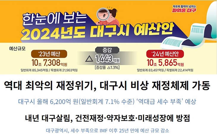 [¿¹»êµ¸º¸±â(1)] ´ë±¸½Ã ¿¹»ê(¾È)À» ³³¼¼ÀÚÀÎ ´ë±¸½Ã¹ÎÀº ¿Ö º¼ ¼ö ¾ø³ª?2024.01.23 ±Û¾´ÀÌ : º¹Áö¿¬ÇÕ |