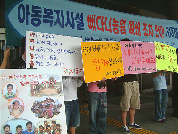 [³×Æ®Áð°ú ÇÔ²² ÀÌ ¹®Á¦¸¦ ÁøÁöÇÏ°Ô °í¹ÎÇϰíÀÚ ¾Æ·¡ÀÇ ±â»ç¸¦ ¿Ã¸³´Ï´Ù] "Ä£ÇüÁ¦ °°Àº ¿ì¸®, °°ÀÌ »ì ¼ö´Â ¾ø³ª¿ä?" ¾Æµ¿º¹Áö½Ã¼³ 'º£´Ù´Ï³ó¿ø' °ð Æó¼â...ºÀ»ç´Üü "»ç¾÷À¯Áö¸¦" / Àç´Ü "º´Çà ¸øÇØ" "6»ìÀÇ ³ªÀÌ·Î º£´Ù´Ï¿¡ ¿ÔÀ» ¶§ ¸ðµç °ÍÀÌ ³¸¼³°í ¾î·Æ±â¸¸ Çߴµ¥, ¾î´À »õ ±ä ¼¼¿ùÀÌ Èê·¯ ´ëÇлýÀÌ µÇ¾ú½À´Ï´Ù. Àú¿¡°Ô ¹èµð´Ï ³ó¿øÀº ¿µ¿øÇÑ °¡Á·ÀÔ´Ï´Ù. ºñ·Ï ÇÇ·Î À̾îÁø °¡Á·Àº ¾Æ´ÏÁö¸¸ ¾ÆÇÁ°í Èûµé¶§ ÈûÀÌ µÇ¾îÁÖ°í, ´©±¸º¸´Ù ÀÌÇØÇØÁÖ°í °°ÀÌ ¾ÆÇÄÀ» ÇÔ²²ÇÑ °¡Á·ÀÔ´Ï´Ù. ¸¶À½À¸·Î ÇǸ¦ ³ª´« °®°íµéÀÌ ¾î¶»°Ô Çì¾îÁú ¼ö ÀÖÀ»±î¿ä?... º£´Ù´Ï°¡ ¾ø¾îÁø´Ù´Â ¸»À» µé¾úÀ» ¶§¿¡´Â µ¿»ýµé°ú ¼ûÁ׿© ¿ì´Â °Í ¹Û¿¡ ÇÒ ¼ö ¾ø¾ú½À´Ï´Ù. ÀúÈñ´Â ¾î¸¥µéÀÌ Èð¾îÁö¶ó°í Çϸé Èð¾îÁö°í ¾î¸¥µéÀÌ ÀÓÀÇ·Î °®°íÀ» ¸¸µé¾îÁÖ¸é ±× °¡Á·ÀÌ »õ °¡Á·À̶ó°í ¿©±â°í »ç´Â ±×·± Àå³°¨ ·Îº¿ÀÌ ¾Æ´Õ´Ï´Ù. ÀúÈñ´Â ¿ì¸®¸¦ ³º¾ÆÁֽŠºÎ¸ð´ÔÀ» ¼±ÅÃÇÒ ¼ö ÀÖ´Â ±Ç¸®µµ, ÇÔ²² Áö³¾ ¼ö ÀÖ´Â ¶Ç ´Ù¸¥ °¡Á·À» ¼±ÅÃÇÒ ±Ç¸®µµ ¾ø´Ü ¸»Àΰ¡¿ä?...ºñ·Ï ¿ì¸®°¡ ÇÒ ¼ö ÀÖ´Â ÀÏÀº ±×¸® ¸¹Áö ¾ÊÁö¸¸ ¿ì¸®°¡ ÇÔ²² ÇϰíÀÚ ÇÏ´Â ¸¶À½¸¸ °¡Áö°í º£´Ù´Ï¸¦ À§ÇØ ±âµµÇÑ´Ù¸é ²À ÁöÄѳ¾ ¼ö ÀÖÀ¸¸®¶ó ¹Ï½À´Ï´Ù" ¿ÃÇØ ´ëÇп¡ °« µé¾î°£ 20»ìÀÎ À̸ð¾çÀº ÀÌ ÆíÁö¸¦ ÀÐÀº µÚ ´«¹°À» Èê·È´Ù. ÀÌ ¾çÀº 3»ì ¶§ ¾î´À º¹Áö½Ã¼³¿¡ ¸Ã°ÜÁ³°í 6»ì ¶§ ´ë±¸½Ã µ¿±¸ À²Çϵ¿¿¡ ÀÖ´Â ¾Æµ¿º¹Áö½Ã¼³ º£´Ù´Ï³ó¿øÀ¸·Î ¿Å°Ü¿Ô´Ù. ºÎ¸ð°¡ ´©±º Áöµµ ¸ð¸¥ ä º£´Ù´Ï³ó¿øÀÇ ¾ÆÀ̵éÀ» Ä£ÇüÁ¦¶ó, °¡Á·À̶ó ¹ÏÀ¸¸ç Áö³Â´Ù. ±×·±µ¥, 15³âµ¿¾È »ì¾Æ ¿Â º£´Ù´Ï³ó¿øÀÌ Æó¼âµÈ´Ù´Â ¼Ò½ÄÀ» Áö³ 7¿ù¿¡ µé¾ú´Ù. ÇÏ´ÃÀÌ ¹«³ÊÁö´Â °Í °°¾Ò´Ù. °°ÀÌ Áö³½ ¾ÆÀ̵éÀº ´ë±¸½Ã µ¿±¸ ÀÏ¿øÀÇ ´Ù¸¥ º¹Áö½Ã¼³ 3°÷À¸·Î Çì¾îÁ®¾ß ÇÑ´Ù. º£´Ù´Ï³ó¿ø¿¡´Â 6»ì À¯Ä¡¿ø ¶Ç·¡ºÎÅÍ ´ëÇлý±îÁö 40¸íÀÌ Áö³»°í ÀÖ´Ù. º£´Ù´Ï³ó¿øÀº <¼Á¤º¹ÁöÀç´Ü(ÀÌ»çÀå ¼ÅÂÁø)>ÀÌ ¿î¿µÇÏ´Â ¾Æµ¿º¹Áö½Ã¼³·Î, Áö³ 1961³â ¡®¼øº¹À½º£´Ù´Ï¿ø¡¯À¸·Î ´Þ¼±¸¿¡ ¼³¸³µÈ µÚ, 1967³â Áö±ÝÀÇ À²Çϵ¿À¸·Î ¿Å°å°í 1972³â ¡®º£´Ù´Ï³ó¿ø¡¯À¸·Î À̸§À» ¹Ù²å´Ù. 6»ì À¯Ä¡¿ø ¶Ç·¡ºÎÅÍ ´ëÇлý±îÁö 40¸íÀÌ ÀÌ °÷¿¡¼ »ýȰÇϰí ÀÖÀ¸¸ç, Áß.°í.´ëÇлýÀº ´ëºÎºÐ À¯¾Æ ¶§ºÎÅÍ 10-15³âÀ» °°ÀÌ Áö³»°í ÀÖ´Ù. ±×·±µ¥, ¡®º£´Ù´Ï³ó¿ø¡¯ÀÌ Æ÷ÇÔµÈ ´ë±¸À²ÇÏÁö±¸ ÅÃÁö°³¹ß»ç¾÷ °³¹ß°èȹÀÌ ½ÂÀÎ(2002)µÈ µÚ ÅäÁö°³¹ß°ø»çÀÇ °³¹ß»ç¾÷ÀÌ º»°ÝȵÇÀÚ, ¼Á¤º¹ÁöÀç´ÜÀº º£´Ù´Ï³ó¿øÀ» Æó¼âÇϱâ·Î °áÁ¤Çß´Ù. ƯÈ÷, º¹ÁöÀç´ÜÃøÀº ¡®º£´Ù´Ï³ó¿ø¡¯À» ´Ù¸¥ °÷À¸·Î ÀÌÀüÇÏ´Â °ÍÀÌ ¾Æ´Ï¶ó, ¡®¾Æµ¿º¹Áö»ç¾÷¡¯ ÀÚü¸¦ ÇÏÁö ¾Ê±â·Î °áÁ¤Çß´Ù. ±×¸®°í, º¹ÁöÀç´ÜÀÇ º¹Áö»ç¾÷À» ±âÁ¸ ¡®¾Æµ¿º¹Áö»ç¾÷¡¯¿¡¼ ¡®³ëÀκ¹Áö»ç¾÷¡¯À¸·Î ÀüȯÇϱâ·Î Çß´Ù. ¶§¹®¿¡ ¡®º£´Ù´Ï³ó¿ø¡¯¿¡ ÇÔ²² Áö³» ¿Â ¾ÆÀ̵éÀº ´ë±¸½Ã µ¿±¸ ÀÏ¿øÀÇ ¶Ç ´Ù¸¥ º¹Áö½Ã¼³ 3°÷À¸·Î Çì¾îÁö°Ô µÉ óÁö¿¡ ³õ¿´´Ù. Áö³ 1973³âºÎÅÍ 30³â ³Ñ°Ô º£´Ù´Ï³ó¿ø¿¡¼ ºÀ»çȰµ¿À» ÇØ ¿Â ¡®Âü±æÈ¸¡¯´Â, º¹ÁöÀç´ÜÃøÀÇ À̰°Àº ¡®Æó¼â¡¯Á¶Ä¡¿¡ Å©°Ô ¹Ý¹ßÇÏ¸ç ¡®º£´Ù´Ï³ó¿ø ÀÌÀü¡¯°ú ¡®¾Æµ¿º¹Áö»ç¾÷ À¯Áö¡¯¸¦ ¿ä±¸Çϰí ÀÖ´Ù. Âü±æÈ¸ ±èÃáÈ »ç¹«±¹ÀåÀº ¡°¼ö½Ê³âµ¿¾È °°ÀÌ Áö³½ ¾ÆÀ̵éÀÌ ¶Ç Çì¾îÁ®¾ß ÇÑ´Ù´Ï ³Ê¹« °¡½¿ ¾ÆÇÁ´Ù¡±¸ç ¡°¾ÆÀ̵éÀ» À§ÇØ º¹ÁöÀç´ÜÃøÀÌ ¾Æµ¿º¹Áö»ç¾÷À» °è¼Ó À¯ÁöÇØÁÖ±æ °£°îÈ÷ ¹Ù¶õ´Ù¡±°í ¸»Çß´Ù. ¶Ç, Âü±æÈ¸¸¦ ºñ·ÔÇØ ºÏ´ë±¸·ÎŸ·ºÆ®, º£´Ù´Ï¸¦ »ç¶ûÇÏ´Â ¸ðÀÓ, °³ÀÎ ÈÄ¿øÀÚµéÀº ÃÖ±Ù <º£´Ù´Ï ´ëÃ¥À§¿ø¿øÈ¸>¸¦ ²Ù·È´Ù. ´ëÃ¥À§¿øÈ¸´Â 9¿ù 4ÀÏ ¿ÀÀü ´ë±¸½Ãû ¾Õ¿¡¼ ±âÀÚȸ°ßÀ» °®°í ¡°¾ÆÀ̵éÀÌ Áö±Ýó·³ °°ÀÌ Áö³¾ ¼ö ÀÖµµ·Ï º£´Ù´Ï³ó¿øÀ» ÀÌÀüÇÏ°í ¾Æµ¿º¹Áöµµ °è¼Ó À¯ÁöÇÒ °Í¡±À» Ã˱¸Çß´Ù. ´ëÃ¥À§¿øÈ¸´Â "ÅäÁö°ø»çÃøÀÌ º£´Ù´Ï³ó¿øÀ» ¿Å±æ ´ëüºÎÁö¸¦ ¾à¼ÓÇßÁö¸¸, º¹ÁöÀç´ÜÃøÀº ³ëÀκ¹Áö»ç¾÷À» ÇÏ°Ú´Ù¸ç º£´Ù´Ï³ó¿ø Æó¼â¿Í ¾Æµ¿º¹Áö»ç¾÷ Áß´ÜÀ» °áÁ¤Çß´Ù"¸é¼ "À̴ ģºÎ¸ð¿Í ¶³¾îÁ® º£´Ù´Ï³ó¿ø¿¡¼ Ä£ÇüÁ¦Ã³·³ Áö³» ¿Â ¾ÆÀ̵éÀ» ¶Ç ´Ù½Ã Çì¾îÁö°Ô ÇÒ »Ó ¾Æ´Ï¶ó, ¾ÆÀ̵éÀÇ Áְűǰú »ýÁ¸±Ç, ÀαÇÀ» ¹«½ÃÇϴ ȾÆ÷"¶ó°í ºñÆÇÇß´Ù. ¶Ç, "º¹ÁöÀç´ÜÃøÀÌ ÅäÁö°ø»ç·ÎºÎÅÍ ¹ÞÀº 100¾ï¿ø °¡±î¿î ÅäÁöº¸»ó±ÝÀÌ¸é ¾Æµ¿º¹Áö»ç¾÷°