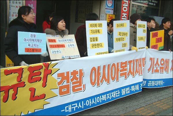 ½Ã¹Î´Üü, AÀç´Ü °ü·Ã ´ë±¸Áö°Ë Ç×ÀÇ Áýȸ..Àå¾ÖÀδÜü, ´ã´ç °Ë»ç½Ç¿¡ ¿À¹° ´øÁ® ´ë±¸Áö¹æ°ËÂûûÀÌ ºÒ¹ýÀ¸·Î º¹ÁöÀç´Ü Å͸¦ ÀºÇà ´ãº¸·Î Á¦°øÇÑ ¾Æ½Ã¾Æº¹ÁöÀç´Ü ´ëÇ¥ K(56)¾¾¿¡ ´ëÇØ ±â¼ÒÀ¯¿¹ óºÐ(2005.12.5)À» ³»¸°µ¥ ´ëÇØ Áö¿ª ½Ã¹Î.Àå¾ÖÀδÜüÀÇ ¹Ý¹ßÀÌ ÀÕµû¸£°í ÀÖ´Ù. '¿ì¸®º¹Áö½Ã¹Î¿¬ÇÕ'°ú '´ë±¸°æ½Ç·Ã', '´ë±¸Âü¿©¿¬´ë', '´ë±¸Àå¾ÖÀο¬¸Í'À» ºñ·ÔÇÑ ½Ã¹Î´Üü ȸ¿ø 10¿©¸íÀº ¿À´Ã(1.10) ¿ÀÈÄ ´ë±¸Áö¹æ°ËÂûû ¾Õ¿¡¼ Áýȸ¸¦ °®°í, °ËÂûÀÌ ¾Æ½Ã¾Æº¹ÁöÀç´Ü ´ëÇ¥ K¾¾¸¦ ±â¼ÒÀ¯¿¹ óºÐÇÑ °ÍÀ» ±ÔźÇß´Ù. ƯÈ÷, ÀÌµé ´Üü´Â, ÇàÁ¤´ç±¹ÀÌ ¾Æ½Ã¾Æº¹ÁöÀç´ÜÀ» °í¹ßÇÒ ¶§¸¶´Ù '±â¼ÒÀ¯¿¹' µÈµ¥ ´ëÇØ "°ËÂûÀÇ ºÁÁֱⰡ ¾Æ´Ï³Ä"¸ç °ÇÑ ÀÇȤÀ» Á¦±âÇß´Ù. ¿ì¸®º¹Áö½Ã¹Î¿¬ÇÕ ÀºÀç½Ä »ç¹«Ã³ÀåÀº, "Áö³ 2004³â 8¿ù, °¨»ç¿ø °¨»ç°á°ú¿¡ µû¶ó ¼ö¼º±¸Ã»ÀÌ ¾Æ½Ã¾Æº¹ÁöÀç´ÜÀ» °í¹ßÇßÀ» ¶§µµ °ËÂûÀº ±â¼ÒÀ¯¿¹ óºÐÀ» ³»·È´Ù"¸é¼, "À̹ø ´ë±¸½ÃûÀÇ °í¹ß¿¡ ´ëÇØ¼µµ ¶Ç ´Ù½Ã ±â¼ÒÀ¯¿¹ óºÐÀ» ³»¸° °ÍÀº, °ËÂûÀÌ ±â¼Òµ¶Á¡ÁÖÀǸ¦ ÅëÇØ »çȸº¹Áö»ç¾÷¹ýÀÇ ±Ùº» Á¤½ÅÀ» ¹«½ÃÇÏ°í ¹«·ÂȽÃŲ ÇàÀ§"¶ó°í ºñÆÇÇß´Ù. ¶Ç, ´ë±¸°æ½Ç·Ã Á¶±¤Çö »ç¹«Ã³ÀåÀº, "À߸øÀº ÀÖÁö¸¸ ó¹úÇÏÁö ¾Ê´Â´Ù´Â °ËÂûÀÇ '±â¼ÒÀ¯¿¹' óºÐÀº »ó½ÄÀûÀ¸·Î µµÀúÈ÷ ÀÌÇØÇÒ ¼ö ¾ø´Ù"¸é¼, "´ë±¸½Ã¿Í °ËÂû, º¹ÁöÀç´ÜÀÌ Áö¿ªÀÇ ÅäÈ£¼¼·ÂÀ¸·Î ¹¶ÃÄ ÀÖ´Â°Ô ¾Æ´ÑÁö ÀǽɵȴÙ"°í ¸»Çß´Ù. ÀÌµé ´Üü¸¦ ºñ·ÔÇÑ Áö¿ª 30¿©°³ ½Ã¹Î»çȸ´Üü´Â Áö³ 2005³â 7¿ù [´ë±¸½Ã.¾Æ½Ã¾Æº¹ÁöÀç´Ü ºÒ¹ý.ƯÇý Áø»ó±Ô¸í ´ëÃ¥À§¿øÈ¸]¸¦ ²Ù·Á Ȱµ¿Çϰí Àִµ¥, ¿À´Â ¼³(1.29) ÀÌÀü¿¡ º¸°Çº¹ÁöºÎ¿¡ 'Áֹ਻çû±¸'¸¦ ³»±â·Î Çϰí 500¿©¸í ±Ô¸ðÀÇ Ã»±¸ÀÎ ¼¸íÀ» ¹Þ°í ÀÖ´Ù. ÀÌ¿¡ ¾Õ¼, ¿À´Ã ³·¿¡´Â ÇÑ Àå¾ÖÀδÜü ȸ¿øµéÀÌ ÀÌ »ç°ÇÀÇ ´ã´ç °Ë»ç½Ç¿¡ ¿À¹°À» ´øÁö´Â Àϵµ ÀÖ¾ú´Ù. Àå¾ÖÀδÜü '¹àÀº ³»ÀÏ' ÃÖâÇö(41) ´ëÇ¥¸¦ ºñ·ÔÇÑ 4¸íÀº, °ËÂûÀÌ ¾Æ½Ã¾Æº¹ÁöÀç´Ü K¾¾¿¡ ´ëÇØ '±â¼ÒÀ¯¿¹'Çѵ¥ ¹Ý¹ßÇØ ¿À´Ã ³· ¿À¹°À» ³ÖÀº ºñ´ÒÀ» C°Ë»ç½Ç¿¡ ´øÁ³´Ù. °ËÂûÀº À̵éÀº ±× ÀÚ¸®¿¡¼ ºÙÀâ¾Æ »ç°Ç °æÀ§¸¦ Á¶»çÇϰí ÀÖ´Ù. "Çã°¡¾øÀÌ º¹ÁöÀç´Ü ÅÍ ÀºÇà ´ãº¸ Á¦°ø"...2004³â ¼ö¼º±¸Ã» °í¹ß '±â¼ÒÀ¯¿¹', 2005³â ´ë±¸½Ãû °í¹ßµµ '±â¼ÒÀ¯¿¹' ¾Æ½Ã¾Æº¹ÁöÀç´Ü ´ëÇ¥ K¾¾´Â, 'º¹Áö½Ã¼³À» ´ãº¸·Î ³»³õÀ¸·Á¸é »çÀü¿¡ ÇàÁ¤±â°üÀÇ ½ÂÀÎÀ» ¹Þ¾Æ¾ß ÇÑ´Ù¡¯°í ±ÔÁ¤ÇÑ »çȸº¹Áö»ç¾÷¹ý Á¦23Á¶¸¦ ¾î±ä ä, Áö³ 2004³â 7¿ù º¹Áö½Ã¼³ ÅÍ 5õ¿©ÆòÀ» ÀºÇà¿¡ ´ãº¸·Î Á¦°øÇÑ µÚ 80¾ï¿øÀ» ´ëÃâ¹Þ¾Æ °Ç¼³¾÷ü¿¡ ÀüÇØÁØ ÇøÀǸ¦ ¹Þ°í ÀÖ´Ù. À̰°Àº ³»¿ëÀº ´ë±¸½Ã¿¡ ´ëÇÑ Á¤ºÎÇÕµ¿°¨»ç(2005.3)¿¡¼ µå·¯³µ´Âµ¥, ´ë±¸½Ã´Â °¨»ç¹ÝÀÇ Áö½Ã¿¡ µû¶ó 2005³â 7¿ù K¾¾¸¦ ´ë±¸¼ö¼º°æÂû¼¿¡ °í¹ßÇß°í, ¼ö¼º°æÂû¼´Â ±â¼ÒÀǰßÀ» ºÙ¿© K¾¾¸¦ ºÒ±¸¼Ó »óÅ·Π±×ÇØ 8¿ùÃÊ °ËÂû¿¡ ¼ÛÄ¡Çß´Ù. ±×·¯³ª, °ËÂûÀº ³Ë´Þµ¿¾È Á¶»çÇÑ µÚ, Áö³ 12¿ù ÃÊ¿¡ K¾¾¿¡ ´ëÇØ '±â¼ÒÀ¯¿¹' óºÐÀ» ³»·È´Ù. °ËÂûÀº '±â¼ÒÀ¯¿¹' óºÐ¿¡ ´ëÇØ, "¾Æ½Ã¾Æº¹ÁöÀç´ÜÀÌ ÀºÇà¿¡ ºô¸° µ·À» °±¾Æ ´ãº¸°¡ Ç®·ÈÀ¸¸ç Àç»ê»ó °¡Ä¡º¯µ¿ÀÌ ¾ø´Ù´Â Á¡ µîÀ» °¨¾ÈÇß°í, K¾¾ÀÇ ÇøÀÇ´Â ÀÎÁ¤µÇÁö¸¸ ó¹úÇÒ °¡Ä¡°¡ ¾ø´Ù´Â ÆÇ´Ü¿¡ µû¶ó ÀçÆÇ¿¡ ³Ñ±âÁö ¾Ê´Â ±â¼ÒÀ¯¿¹ óºÐÀ» ³»·È´Ù¡±°í ¼³¸íÇß´Ù. ±Û.»çÁø ÆòÈ´º½º À¯Áö¿õ ±âÀÚ(1.10)pnnews@pn.or.kr / pnnews@hanmail.net
