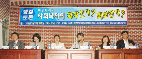 ¡®¹Ù¿ìóÁ¦µµ, »çȸº¹ÁöÀÇ È®ÀåÀΰ¡? Åðº¸Àΰ¡?¡¯Á¤´äÀº ±×µ¿¾È µîÇѽÃÇÏ¿©¿Ô´ø »çȸ¼ºñ½º°¡ È®´ëµÇ¾ú´Ù´Â °Í¸¸Àº »ç½ÇÀÌÁö¸¸, ±× Á¦°ø¹æ½ÄÀÎ ¹Ù¿ìó Á¦µµ´Â ÇöÀç ½É°¢ÇÑ ¹®Á¦Á¡À» ¾È°í ÀÖ´Ù´Â °Í. Áö³ 5¿ù28ÀÏ ¿ì¸®º¹Áö½Ã¹Î¿¬ÇÕÀÌ °è¸í¹®È´ë »çȸº¹Áö»ó´ã°ú¿Í ´ë±¸±¤¿ªÀÚȰÁö¿ø¼¾ÅÍ¿Í °øµ¿ ÁÖÃÖÇÑ Á¦2Â÷ ½Ã¹Îº¹ÁöÆ÷·³¿¡¼ ¹Ù¿ìó Á¦µµ°¡ µµ¸¶À§¿¡ ¿Ã¶ú´Ù. ÆÐ³ÎµéÀº ¹Ù¿ìóÁ¦µµÀÇ ¼öÁ¤¡¤º¸¿Ï¿¡¼ Àü¸é Æó±â±îÁö ´Ù¾çÇÑ ÀǰßÀ» Á¦½ÃÇß´Ù. À̳¯ Æ÷·³¿¡¼´Â ¹Ù¿ìó(±³È¯±Ç) ¹æ½ÄÀ¸·Î ´ëº¯µÇ´Â »çȸ¼ºñ½º(4´ë ¹Ù¿ìó»ç¾÷ µî) ½ÃÀåȰ¡ °ú¿¬ ÀÌ¿ëÀÚÀÇ ¼±ÅñÇÀ» °ÈÇϰí ÀÖ´ÂÁö? °æÀïÀ» ÅëÇØ »çȸ¼ºñ½ºÀÇ ÁúÀº Çâ»ó½Ãų ¼ö ÀÖ´ÂÁö? µî »çȸ¼ºñ½º¸¦ µÑ·¯½Ñ ÀïÁ¡µéÀ» °¡Áö°í, ÁöÀº±¸ °è¸í´ë ±³¼öÀÇ ÁÖÁ¦¹ßÇ¥¿¡ ÀÌ¾î ¹Ú¼Û¹¬ ¼¾ÅÍÀå(°æ»êÁö¿ªÀÚȰ¼¾ÅÍ), ¼ÕÁö¾Æ ±³¼ö(°¡¾ß´ë »çȸº¹ÁöÇÐ), ÀÌ¿¬Èñ »ç¹«±¹Àå(´ë±¸»ç¶÷Àå¾ÖÀÎÀÚ¸³»ýȰ¼¾ÅÍ), ¹ÚÁö¿µ Á¤Ã¥Â÷Àå(°ø°ø³ëÁ¶ »çȸ¿¬´ëº»ºÎ)ÀÇ Åä·ÐÀÌ ÀÖ¾ú´Ù. À̳¯ Âü¼®ÇÑ »çȸº¹ÁöÇöÀå ¹× °è¸í¹®È´ë Çлý 200¿©¸íÀÇ °ü½É ¶ÇÇÑ ¶ß°Å¿ü´Ù. ÁÖÁ¦¹ßÇ¥¿¡ ³ª¼± ÁöÀº±¸ ±³¼ö´Â ¹Ù¿ìó¸¦ ÁöºÒ¹æ½ÄÀ¸·Î ÇÏ´Â »çȸ¼ºñ½º»ç¾÷À» ¹Î¿µÈ ƯÈ÷ »çȸº¹Áö ½ÃÀåÈ¿Í ¿¬°ü½ÃÄÑ ºÐ¼®Çß´Ù. Áö±³¼ö´Â¡®¹Ù¿ì󡯴 ½ÃÀå°æÀï°ú ¼±ÅÃÀ» °Á¶ÇÏ´Â ¼ö¿äÀÚÁ߽ɸðµ¨ÀÇ Àü´Þü°è·Î½á ¡ãÇö »çȸº¹ÁöÀü´Þü°è Á¶Á÷±¸Á¶ÀÇ ½É´ëÇÑ º¯ÈÃÊ·¡ ¡ã±¹°¡º¹ÁöÀÇ Ãà¼Ò, ¡ã°Å´ë ¿µ¸®±â°üÀ» Çã¿ëÇÏ´Â °á°ú¸¦ ÃÊ·¡Çϴ¡®»çȸº¹Áö ½ÃÀåÈ¡¯ÀÓÀ» ÁöÀûÇß°í, À̰ÍÀº ¹Î°üÇù·Â±¸Á¶¸¦ ÅðÁ¶½Ã۰í, ±¹°¡Àû Ã¥ÀÓ¼ºÀ» ¹Î°£¿¡ Àü°¡½ÃŰ´Â µîÀÇ ¹®Á¦¸¦ ¾ß±âÇÑ´Ù°í ÁÖÀåÇß´Ù. ¶ÇÇÑ ¹Ù¿ìóÀÇ ÀåÁ¡À» ¿ÂÀüÈ÷ ½ÇÇöÇϱâ À§Çؼ´Â ¹Ýµå½Ã ÀüÁ¦Á¶°ÇÀÌ ÃæÁ·µÇ¾î¾ß ÇÑ´Ù°í °Á¶Çß´Ù. ±×·¯¸é¼µµ ¿Ü±¹»ç·Ê¿¡¼ º¸´õ¶óµµ¡®¹Ù¿ì󡯴 ¼±È£ÇÏ´Â ¹æ½ÄÀ̶ó°í´Â ÇÒ ¼ö ¾ø´Ù°í ÁöÀûÇÏ¸é¼ Á¤ºÎ´Â ÀçÁ¤Àû È¿À²¼ºÀÌ ÀÖÀ» °ÍÀ̶ó´Â ±â´ë·Î »çȸº¹Áö»ç¾÷¿¡ ¹«¸®ÇÏ°Ô Àû¿ëÇÑ °ÍÀÌ ¾Æ´Ñ°¡ ÇÏ´Â ÀDZ¸½ÉÀ» Á¦±âÇß´Ù. ¸¶Áö¸·À¸·Î Áö±³¼ö´Â ±Ùº»ÀûÀ¸·Î ¼Ò¿Ü°èÃþ¿¡ ´ëÇÑ ±¹°¡º¹Áö¿µ¿ªÀº ¹Ýµå½Ã ±¹°¡°¡ Á÷Á¢ ÇØ°áÇØ¾ß ÇÑ´Ù°í °Á¶Çß´Ù. »çȸ¼ºñ½º Á߽ɱâ°üÀÎ ÀÚȰ¼¾ÅÍÀÇ ¹Ú¼Û¹® ¼¾ÅÍÀåÀº Åä·Ð¿¡¼ »çȸº¹Áö ½ÃÀåȰ¡ ¾ß±âÇÒ ºÎÁ¤Àû È¿°ú¿¡ ´ëÇØ ÀüÀûÀ¸·Î µ¿°¨À» Çϸ鼵µ, ¹Ì·¡»çȸ¿¡ ´ëÇÑ ´ë¾ÈÀ» ¸¸µé±â À§ÇØ ½ÃÀåÀ» ±â¹ÝÀ¸·Î ÇÏ´Â ±â¾÷ ¿ªÇÒÀÇ Çʿ伺µµ ÇÇ·ÂÇØ Çö ¹Ù¿ìóÀÇ ¹®Á¦Á¡À» º¸¿ÏÇÏ¸é¼ È®´ëÇØ ³ª°¡¾ß ÇÑ´Ù°í ÁÖÀåÇß´Ù. ¹Ý¸é ¼ÕÁö¾Æ ±³¼ö´Â ¹Ù¿ìóÀÇ ÀåÁ¡À¸·Î Á¦±âµÇ´Â ¼ÒºñÀÚ ¼±ÅÃÀÇ È®´ë, °æÀïÀ» ÅëÇÑ »çȸ¼ºñ½ºÀÇ Áú Çâ»óÀÇ ¹®Á¦¿¡ ´ëÇØ ȸÀÇÀûÀÎ ÀÔÀåÀ» º¸À̸é¼, ¿ÀÈ÷·Á Çѱ¹ÀÇ »çȸº¹Áö´Â Á¤ºÎÀÇ ºÎ´ãÀÌ °úµµÇϱ⺸´Ù ¹Î°£¿¡ ´õ ÀÇÁ¸Çϰí ÀÖ´Ù¸é¼, ±¹°¡Á᫐ °ø°øº¹ÁöÀÇ È®´ë¸¦ ÅëÇØ ÇØ°á ÇÒ °ÍÀ» ÁÖÀåÇß´Ù. ÇöÀç »çȸ¼ºñ½º Á¦°ø±â°üÀÇ ÀÔÀå¿¡¼ Åä·ÐÀÚ·Î ³ª¼± ÀÌ¿¬Èñ »ç¹«±¹ÀåÀº ÀÌ¿ëÀÚÀÇ Àںδ㠹®Á¦, Ȱµ¿º¸Á¶ÀÎÀÇ ³ëµ¿±Ç¹®Á¦, Áß°³±â°ü°ú Á¤ºÎÀÇ Ã¥ÀÓ¼º ¹®Á¦ µîÀ¸·Î ÀÎÇØ Àå¾ÖÀÎȰµ¿º¸Á¶¼ºñ½º »ç¾÷ÀÌ º»·¡ÀÇ ÃëÁö¸¦ »ì¸®Áö ¸øÇϰí ÀÖ´Ù°í ÁÖÀåÇß´Ù. »çȸ¼ºñ½º ³ëµ¿ÀÚ ÀÔÀå¿¡¼ Åä·ÐÇØ ÁØ ¹ÚÁö¿µ Á¤Ã¥Â÷ÀåÀº ¼ºñ½º³ëµ¿ÀÚÀÇ ¼Ò¿Ü·Î ÀÎÇÑ ¼ºñ½º Áú Ç϶ô°ú ³ëµ¿±Ç ¹ÚÅ»¹®Á¦¸¦ ÁöÀûÇß´Ù. ±×·¯¸é¼ »çȸ¼ºñ½º °ø°ø¼º °È¸¦ À§ÇÑ °øÀûÀÎÇÁ¶ó È®º¸, °ø±ÞÀÚ Á߽ɸ𵨷ÎÀÇ ¹Ù¿ìó Àü¸é Àç°ËÅä, ³ëµ¿ÀÚÀÇ ³ëµ¿±Ç º¸Àå µîÀ» ¿ä±¸Çß´Ù. Á¤¸® ±èÈñÁø »óÀÓȰµ¿°¡ |