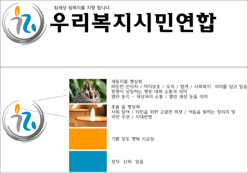 ¶ÇÇÑ ¹àÀº ÁÖȲ»öÀº ±â»Ý°ú ÇູÀ», ¹àÀº ÆÄ¶û»öÀº Á¤Á÷°ú ¹ÏÀ½À» ÀǹÌÇÏ´Â °ÍÀ¸·Î ÀüüÀûÀ¸·Î »çȸÀû ¼ÒÅëÀ» ÅëÇØ¼ ¾àÀÚ°¡ »çȸÀûÀ¸·Î º¸È£µÇ°í ÇÔ²²»ç´Â ÀνÄÀ» °®Ãá ÇູÇÑ »çȸ, °ÇÀüÇÏ°í ¹ÏÀ½ÀÌ °¡´Â »çȸ¸¦ Ãß±¸ÇÏ´Â º¹Áö¿¬ÇÕÀÇ ÀÇÁö¸¦ Ç¥ÇöÇÏ¿´½À´Ï´Ù. ÇöÀç ȸ¿øÀÇ Àǰ߼ö·ÅÀ» ¹ÙÅÁÀ¸·Î ÀϺΠ¹ÌÈíÇÑ ºÎºÐÀ» ¼öÁ¤ÇÏ´Â ÀÛ¾÷ÀÌ ÁøÇàÁßÀ̸ç, ȸ¿øÀǰßÀ» ÃÖ´ëÇÑ ¹Ý¿µÇϰí ÇâÈÄ ¿î¿µÀ§¿øÈ¸ÀÇ °ËÅä ¹× °áÀǸ¦ °ÅÃÄ ÃÖÁ¾ È®Á¤ÇÒ °èȹÀÔ´Ï´Ù. ȸ¿ø¿©·¯ºÐ²²¼´Â º¹Áö¿¬ÇÕ »õ CI¿¡ ¸¹Àº °ü½ÉÀ» °¡Á® Áֽðí ÀǰßÀ» º¸³»Áֽñ⠹ٶø´Ï´Ù.