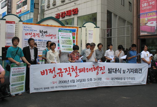 - ºñÁ¤±Ô´ë±¸°ø´ëÀ§ Àüü Æò°¡È¸ÀÇ °³ÃÖ - ½ÅÀÚÀ¯ÁÖÀÇ ³ëµ¿Á¤Ã¥ÀÇ °È¿Í °æÁ¦À§±â·Î ÀÎÇØ ºñÁ¤±Ô³ëµ¿Àº È®»êµÇ°í ´õ ¿¾ÇÇØ Áö°í ÀÖ´Â »óȲ¿¡¼ ¿Ã 1¿ù31ÀÏ Ãâ¹üÇÑ ¡®ºñÁ¤±ÔÁ÷öÆó¸¦ À§ÇÑ ´ë±¸Áö¿ª °øµ¿´ëÃ¥À§¡¯(ÀÌÇÏ ºñÁ¤±Ô´ë±¸°ø´ëÀ§)°¡ ÇÑÇØ »ç¾÷À» Æò°¡ÇÏ´Â ÀÚ¸®¸¦ 12¿ù17ÀÏ ¸¶·ÃÇß´Ù. 25°³ ³ëµ¿½Ã¹Î»çȸ´Üü·Î ±¸¼ºµÈ ºñÁ¤±Ô´ë±¸°ø´ëÀ§´Â Ãâ¹ü´ç½Ã ºñÁ¤±Ô¾Ç¹ýöÆó¿Í ±Ç¸®ÀÔ¹ý ÀïÃë, °ø°øºÎ¹® ºñÁ¤±ÔÁ÷¹®Á¦¿¡ ´ëÇÑ ´ëÀÀ, ºñÁ¤±Ô°ü·Ã Á¶»ç¿¬±¸»ç¾÷ µîÀ» ÁÖ¿ä»ç¾÷À¸·Î äÅÃÇϰí, ±âȹ»ç¾÷À¸·Î ¡®ºñÁ¤±ÔÁ÷öÆó¸¦ À§ÇÑ ´ëÇàÁø¡¯°ú ¡®ºñÁ¤±ÔöÆóÇѸ¶´ç¡¯À» °³ÃÖÇÑ ¹Ù ÀÖ´Ù. À̸¦ ÅëÇØ »çȸÀûÀ¸·Î ºñÁ¤±Ô¹®Á¦¸¦ È®»ê½Ã۰íÀÚ Çß´Ù. ºñÁ¤±Ô´ë±¸°ø´ëÀ§´Â Áö³ 4¿ùºÎÅÍ ¿ù1ȸ ¡®ºñÁ¤±ÔöÆóÇѸ¶´ç¡¯À» °³ÃÖÇÏ¸é¼ ÇϹݱ⿡´Â Àü±¹ÀûÀ¸·Î ºñÁ¤±Ô¹®Á¦ÀÇ »ó¡À¸·Î ¶°¿À¸¥ ±â¸¢ÀüÀÚ ºÒ¹ýÆÄ°ß³ëµ¿ÀÚÀÇ ¹®Á¦¿Í Áö¿ª¿¡¼ ¹ß»ýÇÑ ¼ö¼º·¹¹ÌÄÜ Æ¯¼ö°í¿ë³ëµ¿ÀÚÀÇ ¹®Á¦ ÇØ°á Ã˱¸¿Í ¸Â¹°·Á ³ó¼º°ú Ãкҹ®ÈÁ¦·Î ÁøÈµÇ±âµµ Çß´Ù. ¶ÇÇÑ 7¿ù1ÀÏ 100ÀÎÀÌ»ó ºñÁ¤±Ô¹ý È®´ë½ÃÇà ½ÃÁ¡¿¡ ¸ÂÃç 6¿ù23ÀϺÎÅÍ 28ÀϱîÁö ¿©¼º, Àå¾ÖÀÎ, û³â, ½Ç¾÷, ºó°ï µîÀÇ ÁÖÁ¦¸¦ °®°í ÀÏÁÖÀϰ£ ¡®ºñÁ¤±ÔöÆó¸¦ À§ÇÑ ´ëÇàÁø¡¯ ÁÖ°£Çà»ç¸¦ °³ÃÖÇϱ⵵ Çß´Ù. À̿ܿ¡µµ 6¿ù¸» 09³â ÃÖÀúÀÓ±Ý °áÁ¤½Ã±â¿¡ ¸ÂÃç ÃÖÀúÀÓ±Ý Çö½Çȸ¦ ¿ä±¸ÇÏ´Â Ä·ÆäÀΰú Åä·Ðȸ¸¦ °³ÃÖÇßÀ¸¸ç, ÃÖ±Ù ÃÖÀúÀӱݸ¦ ÈÄÅð½ÃŰ´Â ³»¿ëÀ» ´ãÀº ¹ý¾ÈÀ» ÀÔ¹ý¹ßÀǸ¦ ÇÑ ´ë±¸Áö¿ª 3¸íÀÇ ±¹È¸ÀÇ¿øÀ» »ó´ë·Î 1ÀνÃÀ§¿Í ¼±ÀüÀüÀ» ÇØ´ç Áö¿ª±¸¿¡¼ ÆîÄ£ ¹Ùµµ ÀÖ´Ù. ±×·¯³ª Æò°¡È¸ÀÇ¿¡ Âü¿©ÇÑ 20¿©¸íÀÇ Æò°¡´Â ³¯±î·Î¿ü´Ù. Àüü Æò°¡¿¡ ¾Õ¼ ±âȹȸÀÇ¿¡¼ Æò°¡ÇÑ ³»¿ëÀ» ¼³¸íÇÑ ÀºÀç½Ä ºñÁ¤±Ô´ë±¸°ø´ëÀ§ ÁýÇàÀ§¿øÀå(¿ì¸®º¹Áö½Ã¹Î¿¬ÇÕ »ç¹«Ã³Àå)Àº ¡°07³â ÀÌ·£µå ÅõÀïÀ» °ÅÄ¡¸é¼ ¿Ã1¿ù¿¡ ¹ßÁ·ÇßÁö¸¸, Á¶Á÷±¸¼º°ú ¿î¿µ¿¡ ´Ù¼Ò ¹ÌÈíÇÑ ºÎºÐÀÌ ¸¹¾Ò°í, ³ëµ¿°ú ½Ã¹Î»çȸ´Üü°£ÀÇ ºÒÇùÈÀ½µµ ÀÖ¾úÁö¸¸ ¿ÀÈ÷·Á ÀÌ´Â °ø´ëÀ§ÀÇ À§»ó°ú ¿ªÇÒÀ» ã¾Æ°¡´Â ÇÑÇØ·Î ½ÂȽÃÄÑ¾ß ÇÑ´Ù¡±°í ¸»Çß´Ù. À̳¯ Æò°¡È¸ÀÇ¿¡¼ ½ñ¾ÆÁø ÁÖ¿äÇÑ ³»¿ëÀ¸·Î ¡âºñÁ¤±Ô´ë±¸°ø´ëÀ§¸¦ ¹Ù¶óº¸´Â ¡®»ó¡¯ÀÇ Â÷ÀÌ ¡â³ëµ¿°ú ½Ã¹Î»çȸÀÇ ±ä¹ÐÇÑ ¼ÒÅë°ú ¿ªÇÒ ÀçÁ¤¸³ ¡â¹ÎÁÖ³ëÃÑ, »êº°³ëÁ¶ÀÇ ¿ªÇÒ °È ¡â½Ã¹Î´Üü°¡ ÇÔ²²ÇÒ ¼ö ÀÖ´Â ¹°¸®Àû/À̳äÀû Á¤Ã¥°øÀ¯¿Í Çö½ÇÀû Á¦½Ã ¡âÁö¿ªÀû °úÁ¦ÀÇ µµÃâ ¹× Á¤Ã¥»ý»ê´É·Â Çâ»ó ¡â½Ã¹Îµé°ú ÇÔ²² È£ÈíÇÒ ¼ö ÀÖ´Â »ç¾÷¹æ½ÄÀÇ Àüȯ µîÀ» Á¦½ÃÇß´Ù. À̸¦ ÅëÇØ ºñÁ¤±Ô´ë±¸°ø´ëÀ§°¡ Áö¿ªÀÇ ´Ù¾çÇÑ ºñÁ¤±Ô¹®Á¦¸¦ ¼ÒÅëÇÏ°í ³×Æ®¿öÅ©ÇÏ¿© Á߽ɿªÇÒÀ» ÇÒ ¼ö ÀÖ¾î¾ß ÇÑ´Ù´Â °Í. ÇÑÆí, ºñÁ¤±Ô´ë±¸°ø´ëÀ§´Â ¡®Ã¶Æó, ºñÁ¤±ÔÁ÷¡¯ Ã¥ÀÚ¸¦ ¹ß°£, À̳¯ °£´ÜÇÏ°Ô ÃâÆÇº¸°íȸµµ °¡Á³´Ù. ¡®Ã¶Æó, ºñÁ¤±ÔÁ÷¡¯ Ã¥ÀÚ¿¡´Â ¿Ã ÇÑÇØ ºñÁ¤±Ô´ë±¸°ø´ëÀ§ Ȱµ¿À» ´ãÀº Ⱥ¸¿Í Ȱµ¿ÀÏÁö »Ó ¾Æ´Ï¶ó °í·ÉÃà»ê¹°°øÆÇÀå°ú ´ëÇн𣰻ç Â÷º°½ÃÁ¤ »ç·Ê ±â°í¹®, ÃÖÀúÀÓ±Ý »ç¾÷Àå ½ÇÅÂÁ¶»ç °á°ú º¸°í¼ µîÀÇ ³»¿ëÀ» ´ã°í ÀÖ´Ù. ºñÁ¤±Ô´ë±¸°ø´ëÀ§´Â ³»³âºÎÅÍ ½ÃÀÛµÉ 2±â Ãâ¹üÀ» À§ÇÑ ÁغñÀ§¿øÈ¸¸¦ ±¸¼ºÇÏ¿© ³»³âµµ Á¶Á÷±¸¼º°ú Àμ±, ±×¸®°í »ç¾÷°èȹÀ» ¸¶·ÃÇÒ °èȹÀÌ´Ù. |