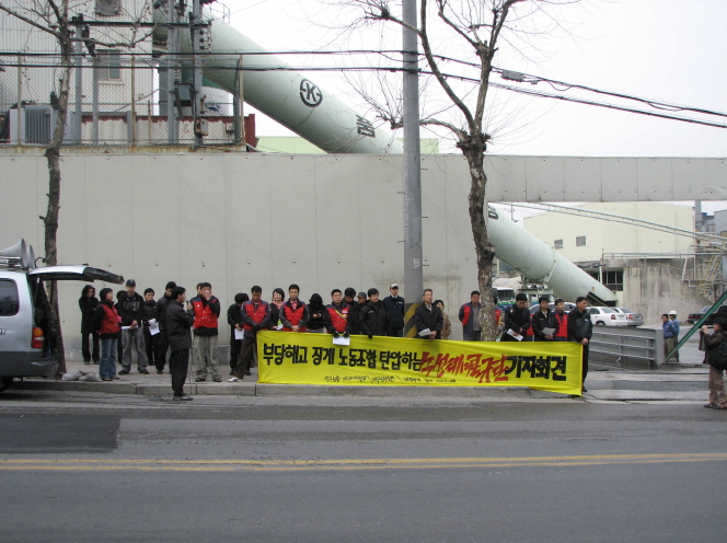 ¶ÇÇÑ °ü¸®Á÷°ú ºñÁ¶ÇÕ¿øµéÀ» µ¿¿øÇÏ¿© ³ë³ë°¥µîÀ» ÀÏÀ¸Å°´Â Àϵ鵵 ¹ú¿©¿Ô´Ù. ȸ»ç³» º®¸é¿¡ ¹ÎÁÖ³ëÃѰú ³ëµ¿Á¶ÇÕÀ» ºñ³ÇÏ´Â Çö¼ö¸·À» ³»°É°í, °ü¸®Á÷ »ç¿øµéÀ» µ¿¿øÇØ ±Ù¹«½Ã°£ Áß¿¡ ȸ»ç³»¿¡¼ ³ëÁ¶¿Í Á¶ÇÕ °£ºÎ¸¦ ºñ³ÇÏ´Â Áýȸ¸¦ ÇÏ°Ô Çϰí, ¶Ç ³ëÁ¶ÀÇ ÁýȸȰµ¿À» °¡·Î¸·±â À§Çؼ Á÷¿øµéÀ» ¼º¼°æÂû¼¿Í ´Þ¼°æÂû¼¿¡¼ 24½Ã°£ ´ë±â½ÃÄÑ ÇÏÁöµµ ¾Ê´Â ÇãÀ§ Áýȸ½Å°í¸¦ ³»¼ ³ëÁ¶ÀÇ È°µ¿À» ¹æÇØÇß´Ù. ¶ÇÇÑ ÁöÀÔÁ¶ÇÕ¿ø¿¡ ´ëÇÑ °è¾àÇØÁö, 2Â÷·Ê¿¡ °ÉÄ£ ¡°è¿Í ÇØ°í, À§ÀåÆó¾÷À¸·Î Á¶ÇÕ¿øµéÀÇ »ýÁ¸±ÇÀ» Áþ¹â¾Æ¿Ô´Ù.