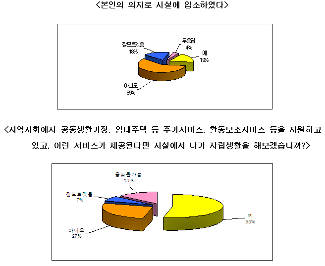 ´ë±¸½Ã´Â Áö³ 5¿ù21ÀϺÎÅÍ 6¿ù11ÀϱîÁö 13°³ ´ë±¸Áö¿ª Àå¾ÖÀλýȰ½Ã¼³¿¡ ´ëÇÑ ÀαǽÇÅ ¹× ÀÚ¸³»ýȰ ¿å±¸Á¶»ç¸¦ Æ÷ÇÔÇÑ ¿î¿µÀü¹Ý¿¡ ´ëÇÑ Á¶»ç°á°ú¸¦ 7¿ù20ÀÏ ¹ßÇ¥ÇÏ¸é¼ Å»½Ã¼³Á¤Ã¥Àº ½ï »« ä »ýȰ½Ã¼³À» Àü±¹ ÃÖ°í·Î ¸¸µé°Ú´Ù°í ¼±¾ðÇÑ °Í¿¡ ´ëÇØ Áö¿ª Àå¾ÖÀδÜü¿Í ½Ã¹Î»çȸ°¡ ¹Ý¹ßÇÏ°í ³ª¼¹´Ù. 420Àå¾ÖÀÎÂ÷º°Ã¶Æó´ë±¸ÅõÀ↓´ë´Â ´ë±¸½ÃÀÇ Àå¾ÖÀλýȰ½Ã¼³ Àü¼öÁ¶»ç °á°ú¹ßÇ¥ º¸µµÀڷḦ Àü¸é ¹Ý¹ÚÇÏ´Â ±âÀÚȸ°ßÀ» 22ÀÏ ´ë±¸½Ãû¾Õ¿¡¼ °®°í, À̹ø Àü¼öÁ¶»ç ÃëÁö¸¦ ¸Á°¢ÇÑ Ã¤ ´ë±¸½Ã°¡ »ýȰ½Ã¼³ Áß½ÉÀÇ ½Ã¼³Á¤Ã¥À» ¿©ÀüÈ÷ °ø°íÈ÷ Çϰí ÀÖ´Ù°í ºñ³Çß´Ù. ÀÌµé ´Üü´Â Àå¾ÖÀλýȰ½Ã¼³ Áß½ÉÀÇ ½Ã¼³Á¤Ã¥À» Æó±âÇϰí Å»½Ã¼³°ú ÀÚ¸³»ýȰ¿¡ ´ëÇÑ Àå¾ÖÀεéÀÇ ±Ç¸®¸¦ º¸ÀåÇÒ °ÍÀ» Ã˱¸Çß´Ù. º»ÀÎÀÇÁö¿Í »ó°ü¾øÀÌ ÀÔ¼Ò 59%, ÀÚ¸³»ýȰ Èñ¸Á 53%·Î µå·¯³ª, ±×·¯³ª ÀÚ¸³»ýȰÀ» °ÅºÎÇÑ 40% ±× ÀÌÀ¯´Â?