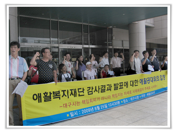 °¨»ç°á°ú¿¡ ´ëÇØ ¡¸¾ÖȰº¹ÁöÀç´Ü ¾Æµ¿ÇÐ´ë ¹× ½Ã¼³ºñ¸® ô°á°ú Àç´Ü¹ÎÁÖȸ¦ À§ÇÑ °øµ¿´ëÃ¥À§¡¹(ÀÌÇÏ ¾ÖȰ°ø´ëÀ§)´Â 25ÀÏ ´ë±¸½Ãû¾Õ¿¡¼ ±âÀÚȸ°ßÀ» ¿¾î ¡°¹ýÀÎÀÇ ±âº»Àç»ê °ü¸®¿¡ °üÇÑ »çÇ×Àº ÀÌ»çȸ°¡ Á¦±â´ÉÀ» Çß´Ù¸é ¹ß»ýÇÒ ¼ö ¾ø´Â ¹®Á¦¡±¶ó¸ç ¡°±¸ ÀÌ»çȸÀÇ ÇØÀÓ°ú ¹ÎÁÖÀûÀÎ ÀÌ»çȸ À籸¼º¡±À» Ã˱¸Çß´Ù. À¯¸í¹«½ÇÇÑ ÀÌ»çȸ ¿î¿µÀº ºñ¸® ȯ°æÀ» Á¦°øÇϰí, ´ë±¸½ÃÀÇ Áöµµ°¨µ¶ ºÎ½ÇÀº ºñ¸®¸¦ Ű¿ö¿Ô´Ù´Â °ÍÀÌ´Ù. °¨»ç°á°ú ¹ßÇ¥ÀÚ·á¿¡µµ ¡â¹ýÀÎ ÀÌ»çȸ °³Ãֽà ¼¸éÅëÁö ºÒÀÌÇà ¡âȸÀÇ·Ï»ó Àΰ¨ »óÀÌ ¡âȸÀÇ·Ï ³»¿ë ÇãÀ§ÀÛ¼º ¹× Àü¿øÂü¼®․Àü¿øÂù¼ºÀ¸·Î ¸ðµç ¾È°Ç ó¸® ¡â°´°üÀûÀ¸·Î ½ÇÇöºÒ°¡´ÉÇÑ ¸ñÀû»ç¾÷ ½ÉÀÇ․ÀÇ°á µî ÀÌ»çȸ ºÎ½Ç¿î¿µ¿¡ ´ëÇÑ ÁöÀû»çÇ×ÀÌ ´Ù¼ö Æ÷ÇԵǾî ÀÖ´Ù.
