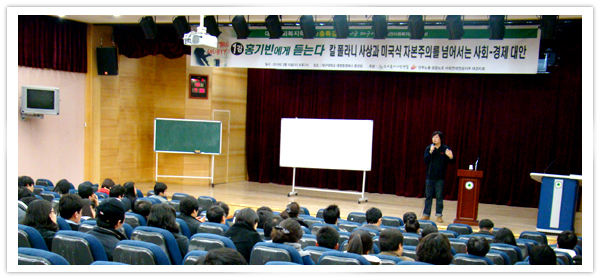 <Ä® Æú¶ó´ÏÀÇ »ç»ó°ú ¹Ì±¹½Ä ÀÚº»ÁÖÀǸ¦ ³Ñ¾î¼´Â »çȸ-°æÁ¦ ´ë¾ÈÀº?> À̹ø ÈļӰÀÇ´Â °¢°¢ <¹Ì±¹½Ä ÀÚº»ÁÖÀǸ¦ ³Ñ¾î¼´Â »çȸ-°æÁ¦ ´ë¾ÈÀ» ¹¯´Â´Ù>¿Í <°í¿ë-½Ç¾÷¹®Á¦ ÇØ°áÀ» ÅëÇÑ º¹ÁöÈ®Ãæ, ±× ´ë¾ÈÁ¤Ã¥À» µè´Â´Ù>·Î ±¸¼ºµÇ¾ú´Ù. 3¿ù10ÀÏ(¼ö) Àú³á7½ÃºÎÅÍ ±× ù ¹øÂ° °ÀÇ·Î Áö³ 1Â÷ ´ë¾È»çȸº¹ÁöÇб³ ´ç½Ã ¸¶Áö¸· °ÀǸ¦ ¸Ã¾Ò´ø È«±âºó ¼±»ýÀ» ¸ð½Ã°í Áö³ °ÀÇ ¶§ ½Ã°£°ü°è»ó ¹Ìó ´Ù ¼ÒÈÇÏÁö ¸øÇß´ø Ä® Æú¶ó´ÏÀÇ ´ë¾ÈÀû °æÁ¦»çȸ»ç»óÀ» Á» ´õ ±í°Ô ¼Ò°³ÇÏ´Â ½Ã°£À» °¡Á³´Ù. Áö³ 1Â÷ ´ë¾È»çȸº¹ÁöÇб³¿¡ ºñÇØ¼± ÀûÀº ÀοøÀÌÁö¸¸ °áÄÚ Áö¿ª¿¡¼± ÀûÁö ¾ÊÀº ±Ô¸ðÀÎ 70¸íÀÇ ¼ö°»ýÀÌ 3½Ã°£ ¿© °ÀǸ¦ ÇÔ²² Çß´Ù. À̹ø ´ë¾È»çȸº¹ÁöÇб³ º¸ÃæÆ¯° ¼ö°ÀοøÀº 95¸íÀ¸·Î Áý°èµÇ¾úÀ¸¸ç, °³º°¼ö°À» Çã¿ëÇϰí ÀÖ¾î ÀοøÀº Á» ´õ ´Ã °ÍÀ¸·Î º¸ÀδÙ.