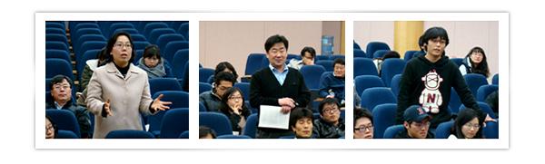 <º» °ÀǸ¦ ´É°¡ÇÑ 1½Ã°£ ¿©ÀÇ ÁúÀÇÀÀ´äÀ¸·Î ºÐÀ§±â °íÁ¶> 8½Ã50ºÐ °æ¿¡ º» °ÀǸ¦ ¸¶Ä¡°í Àá±ñÀÇ ÈÞ½ÄÀ» °¡Áø ÈÄ <°Å´ëÇÑ Àüȯ> ÁõÁ¤ À̺¥Æ®¸¦ ½ÃÀÛÀ¸·Î ÁúÀÇÀÀ´ä°ú Åä·ÐÀ» À̾°¬´Ù. ÁúÀÇÀÀ´ä ½Ã°£¿¡´Â »çÀü ÀÛ¼ºÇÑ ¼¸éÁúÀÇ ¿Ü¿¡µµ ÇöÀåÁú¹®ÀÌ 1½Ã°£ÀÌ ³Ñ°Ô À̾îÁ® Åä·ÐÀåÀÇ ¹Ðµµ´Â ³ô¾ÆÁ®¸¸ °¬´Ù. »çȸÀû ±â¾÷°ú CSR ȸ°è¿¡ ´ëÇØ, °øÁ¤¹«¿ª¿¡ ´ëÇÑ °ßÇØ, ³ó¾÷¹®Á¦¿¡ ´ëÇÑ ÇØ¹ý, ±¹¹Î¿¬±Ý°ú ¼¼´ë °£ »çȸº¸Àå µî ½Ç·Î ´Ù¾çÇÑ ÁÖÁ¦ÀÇ Áú¹®µé¿¡ ´ëÇØ È«±âºó ¼±»ýÀº ¹° È帣µí °Åħ¾øÀÌ ¼Ò½ÅÀ» ÇÇ·ÂÇßÀ¸¸ç °ÀÇ ÁÖÁ¦¿¡ ´ëÇØ ¸ø ´ÙÇÑ ÇØ¼³À» ´äº¯ Áß°£¿¡ °çµé¿© ÀÌÇØ¸¦ µµ¿Ô´Ù. ÀÌÈÄ ´ÊÀº ½Ã°£±îÁö À̾îÁø µÚÇ®ÀÌ¿¡¼ È«±âºó ¼±»ý°ú Âü¼®ÀÚµéÀº ´Ù¾çÇÑ ÁÖÁ¦¸¦ Åä·ÐÇϸç ÀÌÈÄ¿¡µµ °¢ÀÚÀÇ ÀÚ¸®¿¡¼ ´Ù¾çÇÑ ÀÌ·ÐÀÛ¾÷°ú ½ÇõȰµ¿À» ¾î¶»°Ô ³ª´Áö¿¡ ´ëÇÑ ÁøÁöÇÑ ÀÚ¸®¸¦ ¸¸µé±âµµ Çß´Ù. 2Â÷ °ÀÇ´Â 3.18(¸ñ) 19:00½Ã, 1°°ú °°Àº ´ë±¸´ëÇб³ ´ë¸íµ¿ Ä·ÆÛ½º Áß°´ç¿¡¼ ¿¸± ¿¹Á¤ÀÌ´Ù.