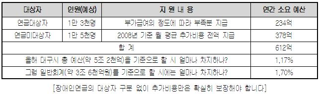 2008³âÀÇ Àå¾ÖÀνÇÅÂÁ¶»ç¿¡ µû¸£¸é, Àå¾ÖÀΰ¡±¸ÀÇ ¿ù Æò±Õ ¼ÒµæÀº Àü±¹ °¡±¸ Æò±Õ ¼ÒµæÀÇ Àý¹Ý¿¡ ºÒ°úÇϰí, Àå¾ÖÀÎ 10¸í Áß 6¸íÀº °æÁ¦È°µ¿¿¡ Âü°¡Á¶Â÷ ÇÏÁö ¸øÇÕ´Ï´Ù. Àå¾ÖÀÎ ½Ç¾÷·üÀº 8.3%·Î Àüü ½Ç¾÷·ü(3.3%)º¸´Ù µÎ ¹è ÀÌ»ó ³ôÀº ¼öÁØÀÌÁö¿ä. ±×³ª¸¶ ÀÏÀ» Çϰí ÀÖ´Â Àå¾ÖÀε鵵 ´ë´Ù¼ö°¡ ´Ü¼ø³ë¹«Á÷(29.4%)À̳ª ³ó‧¾î¾÷(23.5%) µî¿¡ ÁýÁߵǾî ÀÖ¾î ¼ÒµæÈ°µ¿ÀÌ ¾ÈÁ¤ÀûÀÌ¶ó º¸±â´Â ¹«Ã´ ¾î·Æ½À´Ï´Ù. ÇÑ ´Þ Æò±Õ »ýȰºñ°¡ 100¸¸¿ø¿¡µµ ¹ÌÄ¡Áö ¸øÇÏ´Â ÁßÁõÀå¾ÖÀΰ¡±¸°¡ 10°÷ Áß 4°÷ ²ÃÀÌÁö¸¸, ¿ù Æò±Õ 100¸¸¿ø ÀÌ»óÀÇ ºñ¿ëÀÌ ÁöÃâµÇ¾î¾ß ÇÏ´Â °÷Àº 10°÷ Áß 6°÷À» ³Ñ´Â »óȲÀÔ´Ï´Ù. Áï, °¡³ÇØ Áú ¼ö ¹Û¿¡ ¾ø´Â °ÍÀÌÁö¿ä. '¾²´Â °ÍÀ» ÁÙÀÌ¸é µÇÁö ¾Ê³Ä¡¯ ¶ó±¸¿ä? ÁßÁõÀå¾ÖÀÎÀº µÇÁö ¾Ê½À´Ï´Ù. ¹Ù·Î º»ÀÎÀÇ ÀÇ»ç¿Í´Â ¹«°üÇÏ°Ô ¡®Àå¾ÖÀÎÀ̱⠶§¹®¿¡¡¯ ²ÙÁØÈ÷ ÁöÃâµÉ ¼ö¹Û¿¡ ¾ø´Â ºñ¿ëÀÌ Àֱ⠶§¹®ÀÌÁö¿ä. ÀÇ·áºñ, º¸À屸, »çȸ¼ºñ½º Àںδ㠵îÀÌ ±×°ÍÀä, À̸¦ ¡®Àå¾Ö·Î ÀÎÇÑ »çȸÀû Ãß°¡ºñ¿ë¡¯À̶ó°í ºÎ¸¥´Ù³×¿ä. 2008³â Àå¾ÖÀνÇÅÂÁ¶»ç¿¡¼ Á¤ºÎ´Â ÁßÁõÀå¾ÖÀÎÀÌ ÁöÃâÇϰí ÀÖ´Â ¿ù Æò±Õ Ãß°¡ºñ¿ëÀÌ ¾à 21¸¸¿øÀ̶ó°í Åë°è¸¦ ³½ ¹Ù ÀÖ½À´Ï´Ù.