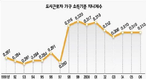 ±×´ÙÁö ¿¬°ü¼ºÀÌ ¾ø´Ù°í »ý°¢ µÉ Áöµµ ¸ð¸£°ÚÁö¸¸, IMFÀÌÈÄ Á¤ºÎÀÇ ½ÅÀÚÀ¯ÁÖÀÇÀûÀÎ Á¤Ã¥µéÀÌ ¼¹ÎµéÀÇ »ýȰ¿¡ ¾î¶°ÇÑ ¿µÇâÀ» ¹ÌÃÆ´ÂÁö¸¦ »ý°¢Çغ¸ÀÚ. ´ëÇлýÀÎ °ü°è·Î ±¸Ã¼ÀûÀÎ ¼öÄ¡ ȤÀº ÀڷḦ Á¦½ÃÇϱⰡ ½±Áö ¾ÊÁö¸¸, ´ë±â¾÷ Áß½ÉÀÇ IMF ±ÝÀ¶À§±â ȸº¹°ú ½ÅÀÚÀ¯ÁÖÀÇÀûÀÎ Á¤Ã¥µéÀÌ À̾îÁö¸é¼ ¾Æ·¡ÀÇ Ç¥¿Í °°ÀÌ Áö´Ï°è¼ö´Â °è¼ÓÇØ¼ »ó½ÂÇØ ¿Ô°í »ç¶÷µéÀÇ »ýȰÀÌ Á¡Á¡ ¾ç±ØÈµÇ¾î ¿ÔÀ½À» º»´Ù¸é ½ÅÀÚÀ¯ÁÖÀÇÀû Á¤Ã¥ÀÌ ¼¹Î»ýȰ¿¡ ±×´ÙÁö Å« µµ¿òÀ» ÁÖÁö´Â ¸øÇÑ´Ù´Â °ÍÀº ºÎÁ¤ÇÒ ¼ö ¾ø´Â »ç½ÇÀÌ´Ù. ÀÌ·¯ÇÑ »ç½Ç¸¸À¸·Î ´ë±â¾÷°ú ÀÚº»ÀÇ À¯ÀÔÀÌ ¿Ö °æÁ¦ÀÇ È°¼ºÈ¿¡ ±àÁ¤ÀûÀÌÁö ¸øÇѰ¡¿¡ ´ëÇØ ¼³¸íÇϱâ Èûµé±â¿¡ Á¶±Ý¸¸ ´õ µé¾î°¡¼ ´ë±â¾÷°ú ÀÚº»ÀÇ È°¼ºÈ°¡ ¾î¶² ½ÄÀ¸·Î Áö¿ª°æÁ¦¿¡¼ ¹ú¾îµéÀÎ µ·À» ¼øÈ¯½ÃŰ´ÂÁö¸¦ »ý°¢Çغ¸ÀÚ.