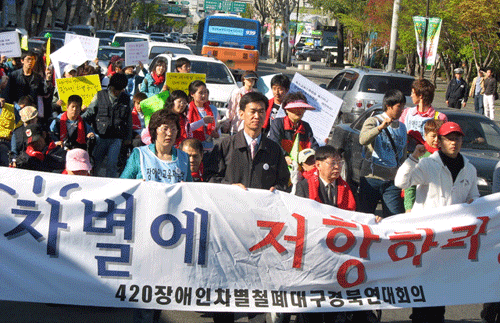 ¡¸4¿ù20ÀÏÀº Àå¾ÖÀÎÀÇ ³¯ÀÌ ¾Æ´Ï¶ó, Àå¾ÖÀÎ Â÷º°Ã¶ÆóÀÇ ³¯ÀÔ´Ï´Ù¡¹ ´ë±¸Áö¿ª 20°³ Àå¾ÖÀΤý½Ã¹Î»çȸ´Üüµé·Î ±¸¼ºµÈ ¡º4¤ý20 Àå¾ÖÀÎ Â÷º°Ã¶Æó ´ë±¸¤ý°æºÏ¿¬´ëȸÀÇ¡»´Â 16ÀÏ ´ë±¸¹éÈÁ¡ ¾Õ¿¡¼ 4¤ý20 Àå¾ÖÀÎ Â÷º°Ã¶ÆóÀÇ ³¯ ¼±Æ÷½ÄÀ» °®°í, Àå¾ÖÀÎ À̵¿±Ç°ú ±³À°±Ç, Àå¾ÖÀÎ ÀÚ¸³»ýȰ º¸ÀåÀ» ¿ÜÄ¡¸ç °Å¸®ÇàÁøÀ» ÆîÃÆ´Ù. ÈÙü¾î¸¦ ź ÁßÁõÀå¾ÖÀÎÀ» ºñ·Ô ³ëµ¿ÀÚ, ½Ã¹Î µî 200¿©¸íÀÌ ¸ðÀÎ Àå¾ÖÀÎ Â÷º°Ã¶ÆóÀÇ ³¯ Çà»ç ÁÖÃÖÃøÀº ´ë±¸½Ã¿Í °üº¯´Üü ±×¸®°í Àå¾ÖÀνü³¿¡¼ ¸Å³â 4¿ù20ÀÏ ½Ç³»¿¡¼ °³ÃֵǴ Àå¾ÖÀÎÀÇ ³¯ Çà»ç¸¦ °ÅºÎÇϰí, ´ë½Å ÀÌ ³¯À» Àå¾ÖÀο¡ ´ëÇÑ Â÷º°°ú ¾ï¾ÐÀ» öÆó½ÃŰ´Â ³¯·Î ¼±Æ÷ÇØ ¿Ô´Ù. ¡º4¤ý20 Àå¾ÖÀÎ Â÷º°Ã¶Æó ´ë±¸¤ý°æºÏ¿¬´ëȸÀÇ¡»´Â 16ÀÏ Àå¾ÖÀÎ Â÷º°Ã¶ÆóÀÇ ³¯ Çà»ç¿¡ À̾î 20ÀÏ ´ë±¸½Ãû ¾Õ¿¡¼ Áýȸ¸¦ °®°í ´ë±¸½Ã¿¡ ¹Ý¿ù´ç Ⱦ´Üº¸µµ º¹±¸¿Í ÁßÁõÀå¾ÖÀεéÀÌ È¥ÀÚ¼µµ ÀÚ¸³»ýȰÀÌ °¡´ÉÇϵµ·Ï Ȱµ¿º¸Á¶Àμºñ½º¸¦ ±Ç¸®·Î¼ ÀÎÁ¤Çϵµ·Ï Á¦µµÀûÀ¸·Î º¸ÀåÇÒ °ÍÀ» Ã˱¸ÇÒ ¿¹Á¤ÀÌ´Ù. ¿ÃÇØ 4ȸ°¸¦ ¸Â°í ÀÖ´Â ¡º4¤ý20 Àå¾ÖÀÎ Â÷º°Ã¶Æó ´ë±¸¤ý°æºÏ¿¬´ëȸÀÇ¡»´Â ³ª´®°øµ¿Ã¼, ³·ÀºÀÚ¸®, ´Ù¸´µ¹ IL¼¾ÅÍ, ´ë±¸°æºÏ °ø°ø¼ºñ½º³ëµ¿Á¶ÇÕ Ã»¾ÏÁöȸ, ´ë±¸´ëÇб³Àå¾ÖÀÎÇлý ±³À°±Ç È®º¸¸¦ À§ÇÑ ¿¬´ëȸÀÇ, ´ë±¸Áß±¸»ç¶÷ Àå¾ÖÀÎÀÚ¸³»ýȰ¼¾ÅÍ, ´ë±¸Âü¿©¿¬´ë, ´ë±¸DPI, ¹ÎÁֳ뵿´ç ´ë±¸½Ã´ç, ¹ÎÁÖ³ëÃÑ ´ë±¸Áö¿ªº»ºÎ, ¹àÀº³»ÀÏ, »çȸ´ç ´ë±¸½ÃÀ§¿øÈ¸, ¼º¼³ëµ¿ÀÚ½°ÅÍ, Àå¾ÖÀÎÁö¿ª°øµ¿Ã¼, Àü±³Á¶ ´ë±¸ÁöºÎ, Àü±³Á¶ °æºÏÁöºÎ, Àüµ¿À» »ç¶ûÇÏ´Â »ç¶÷µé, ÇÑ»ç¶û ¾î¸°ÀÌÁý, ÇÔ²²ÇÏ´Â Àå¾ÖÀκθðȸ, ¿ì¸®º¹Áö½Ã¹Î¿¬ÇÕ µî 20°³ ´Üü°¡ Âü¿©Çß´Ù. ¹è °æ ¸Å³â 4¿ù 20ÀÏÀº ´ë±¸½Ã¿Í °üº¯´Üü ¹× Àå¾ÖÀνü³¿¡¼ Àå¾ÖÀÎÀÇ ³¯ Çà»ç¸¦ ÁøÇàÇØ ¿Ô´Ù. ´ë±¸½Ã´Â ÀÌ Çà»ç¸¦ ÅëÇÏ¿© Àü±¹¿¡¼ ²ÃÂî ¼öÁØÀÎ ´ë±¸½ÃÀÇ Àå¾ÖÀκ¹Áö½ÃÃ¥Àº ¼û±â°í ¡°ÀÚ¿øºÀ»ç¸¦ ´Ã¿©¾ß µÈ´Ù¡±´Ï, ¡°½Ã¹ÎµéÀÇ Àǽݳ¼±ÀÌ Áß¿äÇÏ´Ù¡±, ¡°Àå¾ÖÀεéÀÇ ÀçȰÀÇÁö °íÃëÇØ¾ß ÇÑ´Ù¡±µîÀÇ ¸»µé·Î Àå¾ÖÀÎÀÇ ¹®Á¦¸¦ ÇØ°áÇÏ·Á°í Çß´Ù. ¾Æ¿ï·¯ °üº¯´Üüµµ ´ë±¸½ÃÀÇ Àå¾ÖÀÎÁ¤Ã¥ÀÇ °³¼±À» Ã˱¸ÇÏ´Â °ÍÀÌ ¾Æ´Ï¶ó »ç¶û°ú ºÀ»ç¶ó´Â À̸§À¸·Î °¢Á¾ Çà»ç¸¦ ÁøÇàÇÔÀ¸·Î½á Àå¾ÖÀÎÀÇ ¾ï¾Ð°ú Â÷º°À» Èñ¼®È½ÃŰ°í µ¿Á¶Çß´Ù. ¿ì¸®´Â Àå¾ÖÀÎÀÇ ³¯À» Æ÷ÀåÇÏ¿© Àå¾ÖÀÎÀ» Â÷º°ÇÏ°í ¾ï¾ÐÇÏ´Â »çȸ±¸Á¶¸¦ Èñ¼®È ½Ã۱â À§ÇÏ¿© ´ë±¸½Ã¿Í °üº¯´Üü¿¡¼ ½Ç½ÃÇÏ´Â °¢Á¾ Çà»ç¸¦ °ÅºÎÇϰí, ÀÌ ³¯À» Àå¾ÖÀο¡ ´ëÇÑ Â÷º°°ú ¾ï¾ÐÀ» öÆóÇϱâ À§ÇÑ ÅõÀïÀÇ ³¯·Î ¼±¾ðÇϸç, ¡º¡¯06 4¡¤20 Àå¾ÖÀÎÂ÷º°Ã¶Æó ¼±¾ð¹®¡»À» äÅÃÇÏ´Â ¹ÙÀÌ´Ù. Àü ¹® Áö³ ¼ö½Ê³â °£ Çѱ¹»çȸ´Â Àå¾ÖÀÎÀÇ Á¸Àç¿Í ¿ä±¸¸¦ ½ÃÇýÀûÀ̰í Çü½ÄÀûÀ¸·Î¸¸ ¹Ý¿µÇØ ¿ÔÀ¸¸ç, ±× °á°ú·Î Àå¾ÖÀÎÀÇ ¹®Á¦¸¦ ½Ã¼³¼ö¿ëÀ̶ó´Â â»ì ¾ø´Â °¨¿Á°ú °°Àº ½Ã¼³Á¤Ã¥À» ÁöÇâÇØ¿Ô´Ù. ±¹¹ÎÀÇ Á¤ºÎ, Âü¿©Á¤ºÎ·Î µé¾î¿À¸é¼ Àå¾ÖÀκ¹Áö°¡ ¼ÒÆø ³ª¾ÆÁø Á¡Àº ÀÖÀ¸³ª, ½Ã¼³»ýȰÀÎÀÇ ÀαÇÀ» º¸È£ÇÏ´Â ´ë¾Èµµ ¾øÀÌ, ½Ã¼³¿î¿µÀÚÀÇ ±¹°¡º¸Á¶±ÝȾ·ÉµîÀÇ °íÁúÀûÀÎ ½Ã¼³¹®Á¦¿¡ ´ë¾È Á¦½Ã´Â ÇÏÁö ¾ÊÀº ä ½Ã¼³À§ÁÖÀÇ Á¤Ã¥Àº °è¼Ó È®´ëµÇ°í ÀÖ´Â ½ÇÁ¤ÀÌ´Ù. Âü¿©Á¤ºÎ°¡ ÁÖÀåÇÏ´Â ¾ç±ØÈÀÇ ´ë¾ÈÀº ¼Ò¿Ü°èÃþÀ» ºÐ¸®ÇÏ°í ¼Ò¿ÜÇÏ´Â °ÍÀÌ ¾Æ´Ï¶ó ÁøÁ¤ÇÑ µ¿µîÇÑ ±¹¹ÎÀ¸·Î Áö¿ª¹ÎÀ̶ó´Â Â÷¿ø¿¡¼ Á¢±ÙÇØ¾ßÇϸç, Àå¾ÖÀÎÀÇ ¹®Á¦µµ Á¤ºÎÁÖµµÀÇ ½Ã¼³Á¤Ã¥ÀÌ ¾Æ´Ï¶ó ´ç»çÀÚ Áß½ÉÀÇ ¼±Åñǰú °áÁ¤±ÇÀ» Á¸ÁßÇϰí ÀαÇÀ» º¸È£ÇÏ´Â µ¥¿¡¼ºÎÅÍ ½ÃÀ۵Ǿî¾ß¸¸ ÇÒ °ÍÀÌ´Ù. ¶Ç, ¿ì¸® ³ª¶ó´Â ¼ö±ÞÀÚ Àå¾ÖÀο¡°Ô¸¸ ÀÇ·á, ±³À°, ¿¬±Ý, ÁÖ°Å µîÀÇ ÇýÅÃÀ» ÁÖ¾î ¼ö±ÞÀÚ°¡ ¾Æ´Ñ ÁßÁõÀå¾ÖÀÎÀº ´ëÇѹα¹ÀÇ ±¹¹ÎÀÌ ¾Æ´Ñ °Í°ú °°ÀÌ ´ë¿ì¸¦ ¹Þ°í ÀÖ´Ù. ´õ±º´Ù³ª, ¼ö±ÞÀÚÀ§ÁÖÀÇ Àå¾ÖÀÎÁ¤Ã¥Àº Àå¾ÖÀÎÀ» ¼ö±ÞÀÚ·Î Àü¶ô½ÃÄÑ, ÀÏÇÒ ¼ö ÀÖ´Â ³ëµ¿ÀÇ Àǿ帶Àú Æ÷±âÄÉ ÇÏ´Â Àå¾ÖÀÎ ³ëµ¿À» °¡·Î¸·´Â °¡Àå Å« ¿øÀÎÀÌ´Ù. »Ó¸¸ ¾Æ´Ï¶ó Àå¾ÖÀÎÀÇ 50% ÀÌ»óÀÌ ÃʵîÇб³µµ Á¹¾÷ÇÏÁö ¸øÇÑ Ã¤ »çȸ ÇÏ·ù°èÃþÀ¸·Î »ì¾Æ°¡°í ÀÖÀ¸¸ç, Àå¾Ö¾Æµ¿Àº ºñÀå¾Ö¾Æµ¿°ú ºÐ¸®µÇ¾î ±³À°À» ¹Þ°í ÀÖ´Ù. ƯÈ÷ Àå¾Ö¿©¼ºÀº ¼ºÆø·Â¿¡ ¹«¹æºñ·Î ³ëÃâµÇ¾î ÀÖÀ¸¸ç ¿©¼ºÀ¸·Î½áÀÇ Á¸Àç°¡Ä¡µµ ÀÎÁ¤¹ÞÁö ¸øÇϰí ÀÖ´Ù. ¿ì¸®´Â Á¤ºÎ¿Í ´ë±¸½ÃÀÇ ½ÃÇýÀûÀ̰í Çü½ÄÀûÀÎ Àå¾ÖÀÎÁ¤