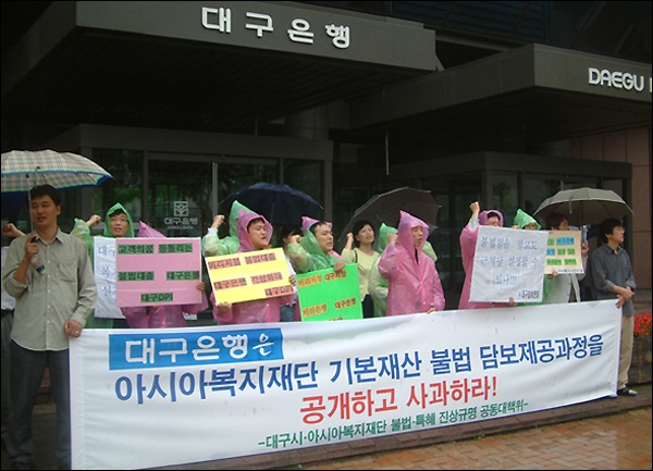 ¾Æ½Ã¾Æº¹ÁöÀç´Ü ÀÌÀü°úÁ¤¿¡¼ ´ë±¸ÀºÇàÀÌ ´ë±¸½ÃÀÇ ºÒÇã°ø¹®µµ ¹«½ÃÇÑ Ã¤, ´ë±¸½Ã Çã°¡µµ ¹ÞÁö ¾ÊÀº »óȲ¿¡¼ ¾Æ½Ã¾Æº¹ÁöÀç´Ü ÈÄÀûÁö¿¡ ´ëÇÑ ±ÙÀú´ç±ÇÀ» ¼³Á¤ÇÑ ÇàÀ§¸¦ µÎ°í ½Ã¹Î´Üü¿Í '»ç°ú'³Ä '¹öƼ±â'³Ä¸¦ µÎ°í ½Å°æÀüÀ» ¹úÀ̰í ÀÖ¾î ±ÍÃß°¡ ÁÖ¸ñµÈ´Ù. ¡®´ë±¸½Ã¤ý¾Æ½Ã¾Æº¹ÁöÀç´Ü ºÒ¹ý¤ýƯÇý °øµ¿´ëÃ¥À§(ÀÌÇÏ ¾Æ½Ã¾Æ°ø´ëÀ§)¡¯´Â ¾Æ½Ã¾Æº¹ÁöÀç´Ü ÈÄÀûÁö¿¡ ´ëÇÑ ±ÙÀú´ç±Ç ¼³Á¤°æÀ§¸¦ ¹àÈ÷±â À§ÇØ µÎÂ÷·Ê¿¡ °ÉÃĴ뱸ÀºÇà º»Á¡¾Õ¿¡¼ Áýȸ¸¦ °³ÃÖÇÏ¿© ±ÙÀú´ç±Ç ¼³Á¤°æÀ§¸¦ °ø°³ÇÏ°í »ç°úÇÒ °ÍÀ» Ã˱¸ÇÑ ¹Ù ÀÖ´Ù. ÀÌ¿¡ ´ë±¸ÀºÇà °ü°èÀÚ´Â ¾Æ½Ã¾Æ°ø´ëÀ§¿ÍÀÇ ¸é´ãÀ» ÅëÇØ ÀºÇà ´ëÃâ¾÷¹«¸Þ´º¾ó¿¡ µû¶ó »ç¾÷Ÿ´ç¼º¿¡ ±Ù°ÅÇØ ´ëÃâÀ» ½ÇÇàÇß°í ±×¿¡ µû¸¥ Àڱݰü¸®¸¦ ÇØ¿Ô´Ù´Â ÀÔÀåÀ» ¹àÈ÷°í ÀÖ´Ù. ±×·¯³ª À̰°Àº ÀºÇàÃøÀÇ ÀÔÀå¼³¸í¿¡µµ ºÒ±¸Çϰí '¾Æ½Ã¾Æ°ø´ëÀ§'´Â ºÒ¹ý°úÁ¤¿¡ ´ë±¸ÀºÇàÀÌ °³ÀÔÇÑ °ÍÀº »ç½ÇÀ̰í, µû¶ó¼ Ã¥ÀÓ¿¡¼ °áÄÚ ÀÚÀ¯·Î¿ï ¼ö ¾ø´Ù°í ÁÖÀåÇϰí ÀÖ´Ù. ÁÖ¹«°üûÀÇ Çã°¡¸¦ ¾òÁö ¾Ê°í ±ÙÀú´ç±ÇÀ» ¼³Á¤ÇÏ¿© »çȸº¹Áö»ç¾÷¹ýÀ» À§¹ÝÇÑ ´ç»çÀÚ°¡ ºñ·Ï ¾Æ½Ã¾Æº¹ÁöÀç´ÜÀ̶ó°í ÇÏÁö¸¸ ºÒ¹ý °úÁ¤¿¡ ´ë±¸ÀºÇ൵ °³ÀÔÇÔÇß´Ù´Â °ÍÀÌ´Ù. ¾Æ½Ã¾Æ°ø´ëÀ§´Â 11¿ù9ÀÏ ¼º¸í¼¸¦ ÅëÇØ "ºÒ¹ýÀÓÀ» ¾Ë°íµµ ±ÙÀú´ç±ÇÀ» ¼³Á¤ÇÑ °Í¿¡ ´ëÇØ¼ ºÐ¸íÇÏ°Ô ½Ã¹Îµé¿¡°Ô »ç°úÇÒ °Í°ú ´õºÒ¾î Áö¿ªÁֹε鿡°Ô »ç¶û¹ÞÀº ÀºÇàÀ¸·Î °Åµì ž´Â ´ë±¸ÀºÇàÀÌ µÇ±â¸¦ ¹Ù¶õ´Ù"°í ¹àÇû´Ù. ´ë±¸ÀºÇàÀº ´ë±¸½Ã°¡ 2004³â 7¿ù19ÀÏ '¹ýÀÎÀÇ ±âº»Àç»ê¿¡ ´ëÇÑ ÀºÇà ´ëÃâ´ãº¸ÀÇ °æ¿ì¿¡´Â ÁÖ¹«°üûÀÎ ´ë±¸½Ã¿¡ º°µµÀÇ Çã°¡¸¦ ¹Þ¾Æ¾ß ÇÑ´Ù¡¯´Â °ø¹®À» ¹Þ°íµµ ÀÏÁÖÀÏ ÈÄÀÎ 7¿ù 27ÀÏ ¾Æ½Ã¾Æº¹ÁöÀç´Ü ÈÄÀûÁö¿¡ ´ëÇØ ±ÙÀú´ç±ÇÀ» ¼³Á¤ÇÑ ¹Ù ÀÖ´Ù. ÇÑÆí, ´ë±¸½Ã´Â 2004³â 6¿ù23ÀÏ ¾Æ½Ãº¹ÁöÀç´Ü ±âº»Àç»êóºÐ Çã°¡½Åû¼¸¦ Á¢¼öÇÏ¿© 6¿ù 30ÀÏ ±³È¯Á¶°Ç¿¡ ÀÇÇÑ ±âº»Àç»êóºÐÀ» Çã°¡ÇÑ ¹Ù ÀÖ´Ù. ±×·¯³ª Áö³ 2005³â 3¿ù2ÀϺÎÅÍ 2ÁÖ°£ ½Ç½ÃµÈ Á¤ºÎÇÕµ¿°¨»ç¿¡¼ ÀÌÀüÀ» ÀüÈÄÇØ¼ ºÒ¹ý ƯÇý»ç½ÇÀÌ µå·¯³µ°í, 2005³â 7¿ù25ÀÏ 32°³ ½Ã¹Î»çȸ´Üü·Î ±¸¼ºµÈ ¾Æ½Ã¾Æ°ø´ëÀ§´Â Áø»ó±Ô¸íÀ» ¿ä±¸Çϰí ÀÖ´Ù. ¾Æ½Ã¾Æ°ø´ëÀ§´Â ÇöÀç Çã°¡Á¶°Ç À§¹Ý°ú ºÒ¹ý ƯÇýÀÇȤÀ» Á¦±âÇϸç ÇöÀç º¸°Çº¹ÁöºÎ¿¡ Áֹ਻çû±¸¸¦ À§ÇÑ ¼¸í¿îµ¿À» ÆîÄ¡°í ÀÖ´Ù. |