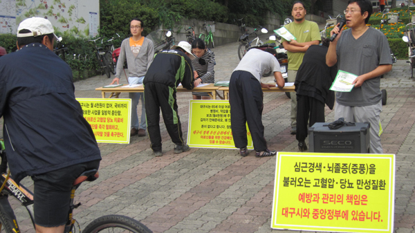 ¾Ï »ç¸Á·üÀ» ¾ÕÁö¸£°í ÀÖ´Â ¿ì¸®³ª¶ó »ç¸Á¿øÀÎ 1À§ ½É³úÇ÷°üÁúȯ, ÃÖ±Ù 10³â°£ 2¹è³ª Áõ°¡Çϰí ÀÖ´Ù. ±×·ÎÀÎÇØ ´ë±¸½Ã´Â Áß¾ÓÁ¤ºÎÀÇ Áö¿øÀ» ¹Þ¾Æ 2007³â 9¿ùºÎÅÍ °íÇ÷¾Ð°ú ´ç´¢º´ µî ¸¸¼ºÁúȯ °ü¸®¸¦ À§ÇØ Ä¡·áºñ Áö¿ø(¿ù 4õ¿ø)°ú ¿¹¹æ°ü¸® »ç¾÷À» Àü°³ÇØ ¿ÔÀ¸³ª ±¹ºñÈ®º¸¿¡µµ ºÒ±¸ÇÏ°í ½Ãºñ°¡ ¾ø´Ù´Â ÀÌÀ¯·Î µ¹¿¬ ÀÌ »ç¾÷À» 2010³â 8¿ù¸»·Î Áß´ÜÇß´Ù.