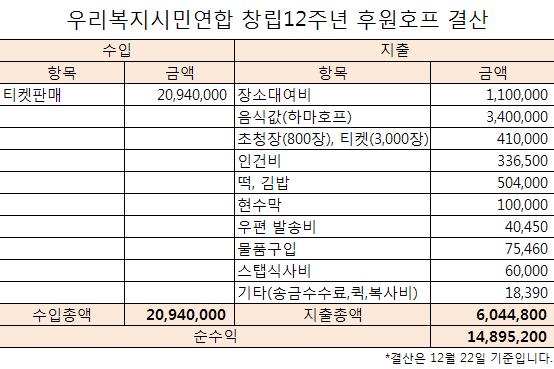 ÈÄ¿øÈ£ÇÁ¿¡¼ ¹ß»ýÇÑ ¼öÀͱÝÀº ¿ì¼±ÀûÀ¸·Î 2011³â ¿ì¸®º¹Áö½Ã¹Î¿¬ÇÕÀÇ »õ Ȱµ¿°¡¸¦ Ãæ¿øÇϴµ¥ »ç¿ëµÉ °ÍÀÔ´Ï´Ù. ±×µ¿¾È º¹Áö¿îµ¿À» °£ÀýÈ÷ ¿øÇÏÁö¸¸ ´ÜüÀÇ ÇüÆíÀÌ ´êÁö ¾Ê¾Æ 6°³¿ù°£ ±³Åëºñ µîÀÇ ¸í¸ñÀ¸·Î Áö¿øÇß´ø Ȱµ¿°¡¸¦ ¶¸¶¸ÇÏ°Ô ¸Â¾ÆµéÀÏ ¼ö ÀÖ°Ô µÇ¾ú½À´Ï´Ù. »ç¶÷ÀÌ Èñ¸ÁÀ̶ó°í ÇÕ´Ï´Ù. ¿ì¸®º¹Áö½Ã¹Î¿¬ÇÕÀ» ¿òÁ÷ÀÌ´Â °ÍÀº ȸ¿ø ÇѺÐÇѺÐÀÇ ¼ÒÁßÇÔ°ú ÇÔ²² ÀüÀûÀ¸·Î º¹Áö¿îµ¿¿¡ Àü³äÇÒ ¼ö ÀÖ´Â »ó±ÙȰµ¿°¡ÀÇ Á¸Àç¿Í ¿ªÇÒÀÌ ¸Å¿ì Áß¿äÇÕ´Ï´Ù. ¸¹Àº ºÐµéÀÌ ¸ð¾ÆÁֽЏ¶À½°ú Á¤¼ºÀ» ÀØÁö ¾Ê°í ¼º½ÇÇÑ È°µ¿À¸·Î º¸´äÇϰڽÀ´Ï´Ù.