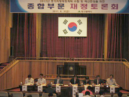 2011³â ´ë±¸½Ã ÀçÁ¤Åä·Ðȸ ¸¶¹«¸®. Çü½ÄÀûÀ̾úÁö¸¸ ¸¹Àº °úÁ¦µµ ³²°Ü ÀçÁ¤¿¡ ´ëÇÑ ±³À°°ú ¿¹»êºÐ¼®À» ÁÖ ³»¿ëÀ¸·Î ÇÏ´Â <Âü¿©¿¹»êÇб³> ´ë±¸½Ã ¿î¿µ Á¦¾È
