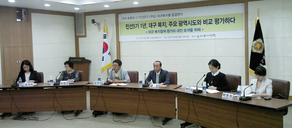 ¹Ù·Î ¾îÁ¦, 7¿ù12ÀÏ ¿ÀÈÄ 4½Ã, 30¿©¸íÀÌ Âü¼®ÇÑ °¡¿îµ¥ ¿¸° ¡®¹Î¼±5±â 1³â, ´ë±¸º¹Áö, ÁÖ¿ä ±¤¿ª½Ãµµ¿Í ºñ±³ Æò°¡ÇÏ´Ù¡¯ Åä·Ðȸ¿¡¼ ¹ßÁ¦ÀÚ·Î ³ª¼± ÀºÀç½Ä ¿ì¸®º¹Áö½Ã¹Î¿¬ÇÕ »ç¹«Ã³Àå°ú Åä·ÐÀÚ·Î ³ª¼± ¹èÁö¼÷ ´ë±¸½ÃÀÇȸ ÀÇ¿ø, ¹ÚÀºÈñ ´ë±¸°æºÏ¿¬±¸¿ø »çȸ¹®È¿¬±¸½ÇÀå , ¼ÕÁö¾Æ °¡¾ß´ë »çȸº¹ÁöÇаú ±³¼ö, ÀÌ¿µ¼± º¸°Çº¹Áö¿©¼º±¹ÀåÀº ÁÖ¿ä ±¤¿ª½Ãµµ¿Í ºñ±³ÇØ º» ´ë±¸º¹ÁöÀÇ ÇöȲ¿¡ ´ëÇØ ¿¶í Åä·ÐÀ» ¹ú¿´´Ù.