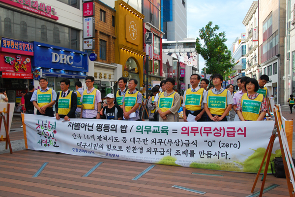ÇÑÆí ´ë±¸½Ã±³À°Ã»Àº 9¿ùºÎÅÍ ´Þ¼º±º ÀÏ´ëÀÇ ÃʵîÇлýµéÀ» ´ë»óÀ¸·Î ¹«»ó±Þ½ÄÀ» ½Ç½ÃÇÏ°í ¸Å³â Àú¼ÒµæÃþÀÇ ÇлýµéÀ» »ó´ë·Î ÇÏ´Â ¹«»ó±Þ½ÄÀÇ ºñÀ²À» ´Ã·Á 2014³â±îÁö´Â Àüü ÇлýÀÇ 40%°¡ ¹«»ó±Þ½ÄÀ» ¹Þµµ·Ï ÇÏ°Ú´Ù°í ¹àÈ÷°í ÀÖÀ¸³ª ¿îµ¿º»ºÎ µî ½Ã¹Î´Üü´Â Àü¸é Àǹ«±Þ½Ä(¹«»ó±Þ½Ä)À» ½Ç½ÃÇÒ °ÍÀ» ¿ä±¸Çϰí ÀÖ´Ù.