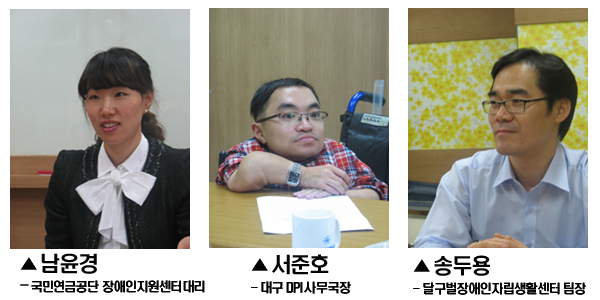 - ÆÐ³Î : ³²À±°æ(±¹¹Î¿¬±Ý°ø´Ü ´ë±¸Áö»ç Àå¾ÖÀÎÁö¿ø¼¾ÅÍ ´ë¸®), ¼ÁØÈ£(´ë±¸DPI »ç¹«±¹Àå), ¼ÛµÎ¿ë(´Þ±¸¹úÀå¾ÖÀÎÀÚ¸³»ýȰ¼¾ÅÍ ÆÀÀå) - »çȸ : ÀºÀç½Ä »ç¹«Ã³Àå - Á¤¸® : ÇÑÈ£½Â Ȱµ¿°¡ - ÀϽà : 2011³â 9¿ù 29ÀÏ ¿ÀÈÄ 3½Ã