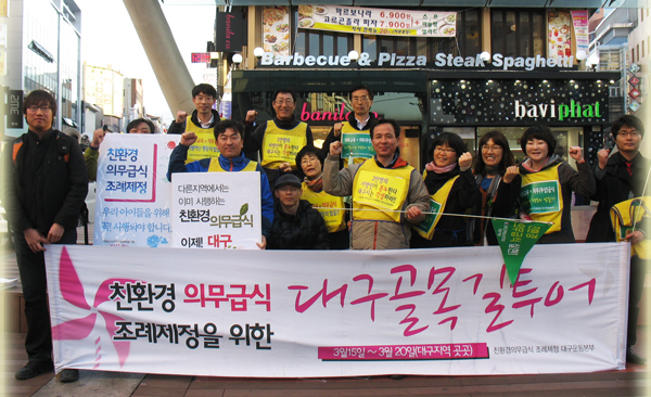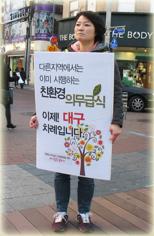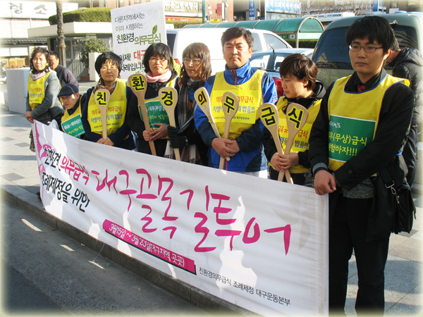 ÇÑÆí, ¡¸Ä£È¯°æ Àǹ«±Þ½Ä Á¶·ÊÁ¦Á¤ ´ë±¸¿îµ¿º»ºÎ¡¹´Â Áö³ 3¿ù15ÀϺÎÅÍ 3¿ù20ÀϱîÁö 6Àϰ£ ´ë±¸½ÃÀÇ ´ÊÀå󸮸¦ ±ÔźÇϰí Àǹ«±Þ½Ä Á¶·ÊÁ¦Á¤À» Ã˱¸Çϱâ À§ÇØ ´ë±¸Àü¿ªÀ» ¼øÈ¸ÇÏ´Â ¡®°ñ¸ñ±æ Åõ¾î¡¯¸¦ °³ÃÖÇß´Ù. Áö¿ª¿¡¼ óÀ½À¸·Î ½Ç½ÃÇÑ ¡®°ñ¸ñ±æ Åõ¾î¡¯¿¡´Â ¸ÅÀÏ 10¸í¿¡¼ 30¸í±îÁö Âü¿©ÇØ ÃÖ¼Ò 3½Ã°£¿¡¼ 5½Ã°£µ¿¾È ¼ö¼º±¸, ³²±¸, ºÏ±¸, ´Þ¼±¸, µ¿±¸, Áß±¸ µî Àç·¡½ÃÀå°ú °ñ¸ñ±æÀ» µ¹¸é¼ Àǹ«±Þ½Ä Á¶·ÊÁ¦Á¤ÀÇ Çʿ伺À» Áö¿ª¹Îµé¿¡°Ô Á÷Á¢ È£¼ÒÇϱ⵵ Çß´Ù.