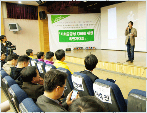 °ø½Ä¼±°Å¿îµ¿À» ÇÏ·ç ¾ÕµÐ 28ÀÏ Áö¿ª¿¡¼ »õ·Ó°Ô ½ÃµµÇÑ À¯±ÇÀÚ´ëȸ°¡ °³ÃֵǾú´Ù. ÃѼ± Èĺ¸ ÃÊû´ë»óÀÚ´Â ¡¸2012 ÃѼ± »çȸ°ø°ø¼º °È ´ë±¸¿¬´ë¡¹°¡ ÁúÀÇÇÑ 12°³ ¿ä±¸¾È Áß 1°³ÀÌ»ó ´äº¯ÇÑ Èĺ¸ 16¸íÀ̾ú´Ù. 12´ë ¿ä±¸¾È Áß ¾î´ÀÇϳª¶óµµ ¼ÒÁßÇÑ °ÍÀÌ ¾ø°í, ¶Ç °¢ È常¶´Ù Á¤Ä¡Àû °ßÇØ°¡ ´Ù¾çÇϱ⠶§¹®¿¡ À̹ø À¯±ÇÀÚ´ëȸ´Â 1°³¶óµµ ´äº¯ÇÑ Èĺ¸ ¸ðµÎ¸¦ ÃÊ´ëÇß´Ù. ÀÌ´Â ´çÃÊ ÁúÀǼ ¹ß¼Û ½Ã Èĺ¸µé¿¡°Ô 1°³ÀÌ»ó ´äº¯Çϸé À¯±ÇÀÚ´ëȸ Âü¼®°ú ´çÀÏ ¼¾à ¾à¼ÓÀ» Èĺ¸µé¿¡°Ô »çÀü °øÁö¿Í ¾à¼ÓÀ» ¹Þ±âµµ Çß´Ù.