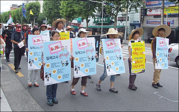 ÀÌ¿Í °ü·ÃÇØ, ´ë±¸Áö¿ª ±³»ç¿Í ÇкθðµéÀÌ 2.4km °Å¸®ÀÇ ¾Æ½ºÆÈÆ® ¹Ù´Ú¿¡ À̸¶¿Í ¼Õ¹Ù´Ú, ¹«¸À» ¸Â´ë°í '3º¸1¹è'¸¦ Çß´Ù. 6¿ù 26ÀÏ Àü±¹¿¡¼ ½ÃÇàµÈ "ÀÏÁ¦°í»ç¸¦ ¹Ý´ë"Çϰí ÀÕµû¸¥ "´ë±¸Áö¿ª û¼Ò³â ÀÚ»ìÀ» Åë°¨"Çϱâ À§Çؼ´Ù. Àü±³Á¶ ´ë±¸ÁöºÎ¿Í 'ÀÏÁ¦°í»ç¸¦¹Ý´ëÇÏ´Â ´ë±¸±³À°½Ã¹Î¿¬´ë'´Â 6¿ù 26ÀÏ ¿ÀÀü ³ëÁ¶.¾ß´ç.½Ã¹Î´Üü Àλç 70¿©¸íÀÌ Âü¼®ÇÑ °¡¿îµ¥ ´ë±¸½Ã±³À°Ã» ¾Õ¿¡¼ 'ÀÏÁ¦°í»ç ÆóÁö¿Í ¾ÆÀÌµé »ì¸®±â 3º¸1¹è ÅõÀï ±âÀÚȸ°ß'À» °®°í "ÀÏÁ¦°í»ç ÆóÁö"¿Í "Âü±³À°½ÇÇö"À» Ã˱¸ÇÏ¸ç ´ë±¸½Ã±³À°Ã» ¾Õ¿¡¼ ´ë±¸¹éÈÁ¡±îÁö 3º¸1¹è ÇàÁøÀ» Çß´Ù.