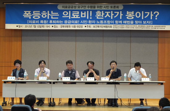 ÆøµîÇÏ´Â ÀÇ·áºñ, ȯÀÚ°¡ ºÀÀÎ ÀÌÀ¯´Â? º´¿ø ÅðÃâÀº ÀÖÀ¸³ª °¡°ÝÀÎÇÏ´Â ¾ø´Ù. ÀǷῬ´ë ¡°3´ë ¿ä±¸¾È Á¦½Ã¡±, °ø°ø¿î¼ö³ëÁ¶ ÀǷῬ´ë ´ë±¸ÁöºÎ, ¿ì¸®º¹Áö½Ã¹Î¿¬ÇÕ µî 9°³ ´Üü·Î ±¸¼ºµÈ ´ë±¸º¸°Çº¹Áö´ÜüÇùÀÇȸ´Â 12ÀÏ ¿ÀÈÄ7½Ã °æºÏ´ëº´¿ø 10Ãþ ´ë°´ç¿¡¼ ÀÇ·á°ø°ø¼º ¿ä±¸¾È ¼ö·ÅÀ» À§ÇÑ ½Ã¹ÎÅä·Ðȸ¸¦ °³ÃÖÇß´Ù. ³ëµ¿Á¶ÇÕ, ½Ã¹Î»çȸ´Üü »Ó ¾Æ´Ï¶ó ȯÀÚ¿Í È¯ÀÚ°¡Á· µî 200¿©¸íÀÌ Âü¼®ÇØ ¶ß°Å¿î °ü½ÉÀ» º¸¿´´Ù. ¡®ÆøµîÇÏ´Â ÀÇ·áºñ, ȯÀÚ°¡ ºÀÀ̰¡?¡¯¶ó´Â ÁÖÁ¦·Î ¿¸° À̹ø ½Ã¹ÎÅä·Ðȸ´Â ÀǷῬ´ë ´ë±¸Áö¿ªÁöºÎ¿¡¼ ¿ÃÇØ ÀÓ´ÜÇù Çù»óÀ» ¾ÕµÎ°í ÀÇ·á°ø°ø¼º ¿ä±¸¾È ¸¶·ÃÀ» À§ÇØ °¢°èÀÇ ÀǰßÀ» ¼ö·ÅÇϰí, Áö¿ª¿¡¼ ÇÔ²²ÇÒ ¼ö ÀÖ´Â ¹æ¾ÈÀ» ã°íÀÚ ¸¶·ÃµÇ¾ú´Ù. º´¿ø°£ °ú´ÙÇÑ °æÀïÀº º´¿ø ¸öÁþ Ű¿ì±â·Î ³ªÅ¸³ª°í, ÀÇ·áÀÇ Æ¯¼º»ó ¿ÀÈ÷·Á ÀÇ·áºñ°¡ ³·¾ÆÁö´Â °ÍÀÌ ¾Æ´Ï¶ó ºñ½ÎÁö´Â ºÒÆíÇÑ Áø½Ç¿¡ ´ëÇØ ±× ¿øÀÎÀÌ ¾îµð¿¡ ÀÖ°í, ¾î¶»°Ô ÇØ°áÇÒ °ÍÀΰ¡°¡ À̳¯ Åä·ÐȸÀÇ ¿äÁö¿´´Ù. °ø°ø¿î¼ö³ëÁ¶ ÀǷῬ´ë ´ë±¸ÁöºÎ ½ÅÀºÁ¤ »ç¹«±¹ÀåÀÇ »çȸ·Î ½ÃÀÛµÈ À̳¯ Åä·Ðȸ´Â 'Áö¿ª ÀÇ·á ÀÌ¿ë ȯÀÚ ½ÇÅ °í¹ß' ¿µ»ó»ó¿µ°ú ÁÖ¹ßÁ¦, º¸Á¶¹ßÁ¦, ÁöÁ¤Åä·Ð ¼øÀ¸·Î ÁøÇàµÇ¾ú´Ù. '°ú´ÙÇÑ °æÀï ¼Ó¿¡¼ ºñ½ÎÁö´Â ÀÇ·áºñ, ÀÌÁ¦´Â ³·ÃßÀÚ'´Â ÁÖÁ¦·Î ÁÖ¹ßÁ¦¸¦ ¸ÃÀº °ø°ø¿î¼ö³ëÁ¶ ÀǷῬ´ëº»ºÎ ÀÌ»óÀ± Á¤Ã¥À§¿øÀº °¢Á¾ Åë°è¸¦ Á¦½ÃÇÏ¸é¼ ¡°Çѱ¹ÀÇ ÀÇ·á´Â °æÀïÀÌ ½ÉÈµÇ¸é¼ ÃÖ±Ù Á¡Á¡ ´õ ÀÇ·áºñ°¡ ºñ½ÎÁö°í ÀÖ°í, ÀÌ´Â ºÒÇÊ¿äÇÑ °Ë»ç, óġ, Åõ¾à µîÀÌ ¸¹¾ÆÁö°í ÀÖ´Â »óȲÀ» ¹Ý¿µÇÑ´Ù¡±°í ¸»Çß´Ù.