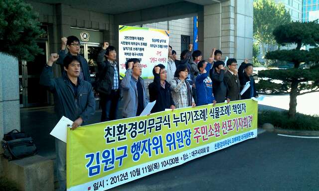 'ģȯ°æÀǹ«±Þ½Ä Á¶·ÊÁ¦Á¤ ´ë±¸¿îµ¿º»ºÎ'(ÀÌÇÏ ´ë±¸¿îµ¿º»ºÎ)´Â 11ÀÏ ¿ÀÀü 10½Ã30ºÐ ´ë±¸½ÃÀÇȸ ¾Õ¿¡¼ ±âÀÚȸ°ßÀ» °®°í ´ë±¸½ÃÀÇȸ ÇàÁ¤ÀÚÄ¡À§¿øÀåÀÎ ±è¿ø±¸ ½ÃÀÇ¿ø(´Þ¼ 5¼±°Å±¸, ÇØ´çÁö¿ª : °¨»ïµ¿, ¼º´çµ¿, µÎ·ù1¡¤2µ¿, µÎ·ù3µ¿)¿¡ ´ëÇÑ ÁֹμÒȯ¿îµ¿ ¼±Æ÷¸¦ ¼±¾ðÇß´Ù. 3¸¸2õ¿©¸íÀÇ ´ë±¸½Ã¹Î ¼¸íÀ¸·Î Á÷Á¢ ¹ßÀÇµÈ Àǹ«±Þ½Ä Á¶·Ê¾ÈÀÌ Áö³´Þ 20ÀÏ ´ë±¸½ÃÀÇȸ¿¡¼ ´©´õ±â Á¶·Ê·Î ÀϹæÀûÀ¸·Î ¼öÁ¤µÇ¾î À¯¸í¹«½ÇÇÏ°Ô Á¦Á¤µÈ °Í¿¡ ´ëÇÑ Ã¥ÀÓÀ» ¹¯°Ú´Ù´Â °ÍÀÌ´Ù. ¼±ÃâÁ÷ °øÁ÷ÀÚ¿¡ ´ëÇÑ ÁֹμÒȯÀº Áö¿ª¿¡¼´Â óÀ½ÀÌ´Ù.