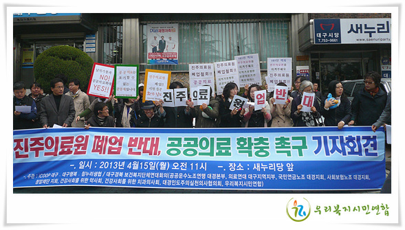[±âÀÚȸ°ß] ÁøÁÖÀÇ·á¿ø Æó¾÷À» ¹Ý´ëÇÑ´Ù. ¹Ú±ÙÇý Á¤ºÎ¿Í »õ´©¸®´çÀº °ø°øº´¿ø Æó¾÷ÀÌ ¾Æ´Ñ °ø°øÀǷḦ È®´ëÇ϶ó.(4.15)