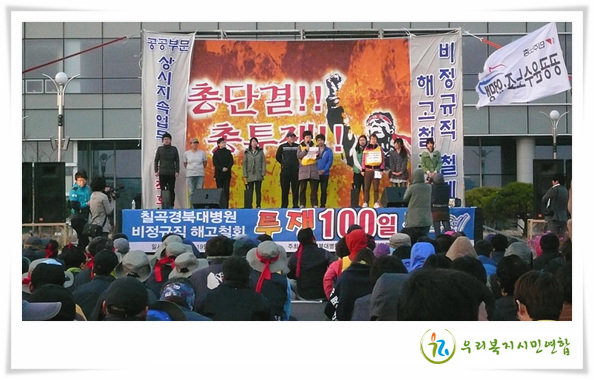 Á¤ºÎµµ, ¹Ú±ÙÇý ´ëÅë·Éµµ °ø°øºÎ¹® ºñÁ¤±ÔÁ÷À» Á¤±ÔÁ÷ÈÇ϶ó´Âµ¥ À̰÷ Ä¥°î°æºÏ´ëº´¿øÀº ºñÁ¤±ÔÁ÷À¸·Î µ¹·Á¸·±â¸¦Çϰí ÀÖ½À´Ï´Ù. ºñÁ¤±ÔÁ÷ ³ëµ¿ÀÚµéÀÇ °í¿ëº¸ÀåÀ» À§ÇÑ ÁöħÀ», ÇØ°í¸¦ À§ÇÑ ÁöħÀ¸·Î ¾Ç¿ëÇϰí Àִ ĥ°î°æºÏ´ëº´¿øÀÇ ÀÛÅ¿¡ Ä¡°¡ ¶³¸³´Ï´Ù. Áö³ ¿¬¸» ÇØ°íÅ뺸¸¦ ¹Þ°í Èûµé¾î ÇÏ´Â Àú¿¡°Ô °¡Á·µéÀº 2³â µ¿¾È °í»ýÇß´Ù¸ç À̹ø ±âȸ¿¡ Á» ½¬¶ó´Â À§·Î, ÇÔ²² ±Ù¹«Çß´ø µ¿·áµéÀÇ À§·Î°¡ Àú¿¡°Ô´Â µµ¿òÀÌ µÇÁö ¾Ê¾Ò½À´Ï´Ù. Ȥµ¶ÇÑ °Ü¿ï ³¯¾¾ ¸¸ÅÀ̳ª Á¦ °¡½¿Àº ½Ã·È½À´Ï´Ù. º´¿øÀ¸·ÎºÎÅÍ ¹ÞÀº ¸¶À½¿¡ »óó°¡ ³Ê¹« Ä¿¼ ¸ÔÀ» ¼öµµ, ¿ôÀ» ¼öµµ ¾ø¾ú½À´Ï´Ù. ±×·± ÀúÈñµéÀÌ Ãµ¸·³ó¼ºÀ» Çϸç Áö±Ý±îÁö ²à²àÀÌ ÀÌ ÅõÀïÀ» ÇØ ¿Ã¼ö ÀÖ¾ú´ø ÈûÀº ¸¹Àº µ¿ÁöµéÀÇ ÁöÁö¿Í °Ý·Á ´öºÐÀÔ´Ï´Ù. ÀÌ ÅõÀïÀÌ °áÄÚ ½±Áö¸¸Àº ¾Ê´Ù´Â °É Àß ¾Ë°í ÀÖ½À´Ï´Ù. ´Ù¼Ò Áö·çÇÑ ½Î¿òÀÌ µÈ °Ç »ç½ÇÀÌÁö¸¸ ÀúÈñµéÀº °áÄÚ Æ÷±âÇÏÁö ¾ÊÀ» °ÍÀÔ´Ï´Ù. Æ÷±âÇÏÁö ¾ÊÀ¸¸é ½Â¸®ÇÒ ¼ö ÀÖ´Ù´Â °ÍÀ» ¾Ë°í ÀÖ½À´Ï´Ù. ÀÌ ½Î¿òÀº Áú±ä ³ðÀÌ À̱ä´Ù°í Àϱú¿ö ÁֽŠ°Íµµ µ¿ÁöÀÔ´Ï´Ù. ÀÌ ÅõÀïÀ» ÇÏ¸é¼ Àú´Â Á¦ ÀÚ½ÅÀ» µÇã¾Æ°¡°í ÀÖ½À´Ï´Ù. 2³â µ¿¾È ¿½ÉÈ÷ ÀÏÇÑ ÁË ¹Û¿¡ ¾ø´Â ¿ì¸®µéÀ» ´ÜÁö ºñÁ¤±ÔÁ÷À̶ó´Â ÀÌÀ¯¸¸À¸·Î ÇØ°íÇϰí´Â ÀÌÁ¦ ¿Í¼ ¹«´É·ÂÀÚ·Î ¸ÅµµÇÏ¿© ¿ì¸®µéÀ» µÎ ¹ø Á×ÀÌ´Â º´¿øÀ» »ó´ë·Î, ¿ì¸®µéÀÇ ¸í¿¹È¸º¹À» À§ÇØ ³¡±îÁö ½Î¿ì°Ú½À´Ï´Ù. ´Ù½Ã´Â ³ª¿Í °°Àº ¾ÆÇÄÀ» °Þ´Â ³ëµ¿ÀÚµéÀÌ ¾ø±æ ¹Ù¶ó±â ¶§¹®¿¡ ÀÌ ÅõÀï, ¸ØÃâ ¼ö ¾ø½À´Ï´Ù. ÀúÈñ ÇØ°íÀÚµéÀÌ ÇöÀåÀ¸·Î º¹±ÍÇÏ°í ºñÁ¤±ÔÁ÷³ëµ¿ÀÚµéÀÇ °í¿ëÀÌ º¸ÀåµÇ´Â °ÍÀÌ¾ß ¸»·Î ¿ì¸® ¸ðµÎÀÇ ½Â¸®ÀÏ °ÍÀÔ´Ï´Ù. ÀÌ ÅõÀïÀº Á¤´çÇϱ⠶§¹®¿¡ ½Â¸®ÇÒ ¼ö¹Û¿¡ ¾ø´Â ½Î¿òÀÔ´Ï´Ù.