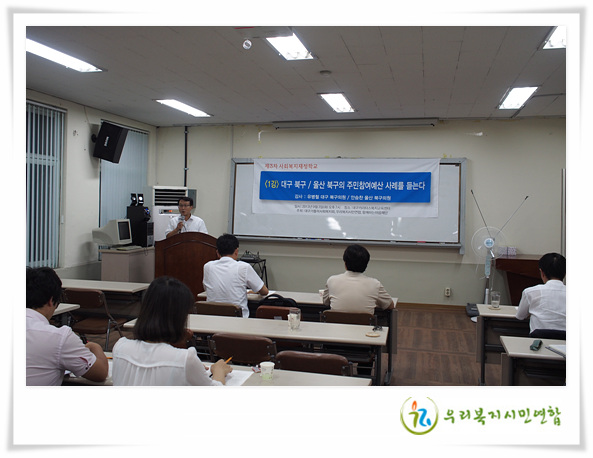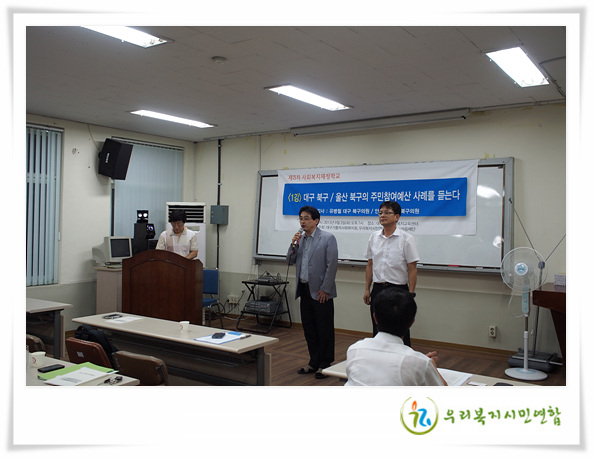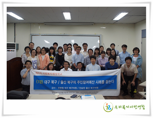 Áö³ 2010³â 1Â÷ ÀçÁ¤Çб³¿¡¼´Â Áö¹æÀçÁ¤ÀÇ ±âº»°³³ä°ú È帧À» »ìÆìº¸¾Ò°í, ÀÛ³â 2Â÷ ÀçÁ¤Çб³¿¡¼´Â Âü¿©¿¹»ê¿îµ¿°ú ±¹°¡ÀçÁ¤¿¡ ´ëÇØ ÀÌÇØ¸¦ ³ô¿´´Ù¸é, À̹ø 3Â÷ ÀçÁ¤Çб³¿¡¼´Â ÁÖ¹ÎÂü¿©¿¹»êÀÇ »ç·Ê¿Í Áö¿ª»çȸº¹Áö°èȹ¿¡ ´ëÇØ ¾Ë¾Æº¸´Â ÀÚ¸®·Î ¸¶·ÃµÇ¾ú´Ù. 40¿©¸íÀÇ ´ë±¸Áö¿ª »çȸº¹Áö»ç°¡ Âü¿©ÇÑ 9¿ù3ÀÏ, ù °Á´ ‘ÁÖ¹ÎÂü¿©¿¹»ê »ç·Ê¸¦ µè´Â´Ù’¶ó´Â ÁÖÁ¦·Î ÃÑ 2ºÎ·Î ³ª´©¾î ÁøÇàµÇ¾ú´Ù. ´ë±¸±¤¿ª½Ã ±âÃÊ´Üü¿¡¼ À¯ÀÏÇÏ°Ô ÁÖ¹ÎÂü¿©¿¹»ê Á¶·Ê ÃëÁö¿¡ ¸Â°Ô Á¦Á¤µÈ ´ë±¸±¤¿ª½Ã ºÏ±¸»ç·Ê¸¦ À¯º´Ã¶ ºÏ±¸ÀÇ¿øÀÌ 1ºÎ¸¦ ¸Ã¾Æ ÁøÇàÇß°í, 2005³â Á¶·Ê¸¦ Á¦Á¤ÇÑ ÈÄ 9³â° ¿î¿µÇϰí ÀÖ´Â ¿ï»ê±¤¿ª½Ã ºÏ±¸»ç·Ê¸¦ ¾È½ÂÂù ºÏ±¸ÀÇ¿øÀÌ 2ºÎ¸¦ ¸Ã¾Æ ¿î¿µ°úÁ¤»ó °Þ¾ú´ø ´Ù¾çÇÑ »ç·Êµé°ú ÀïÁ¡À» ¼Ò°³Çß´Ù. Çè³ÇÑ Á¶·ÊÁ¦Á¤°úÁ¤, ½ÃÇà±îÁö´Â »ê³Ñ°í »ê. ´ë±¸ ºÏ±¸ »ç·Ê 30ºÐ°£ÀÇ ÂªÀº ½Ã°£ µ¿¾È 1°ÀÇ 1ºÎ¸¦ ¸Ã¾Æ ÁØ À¯º´Ã¶ ÀÇ¿øÀº ´ë±¸±¤¿ª½Ã ºÏ±¸ÀÇ °æ¿ì ÁýÇàºÎ¿ÍÀÇ ³íÀÇ¿Í ¼±Áø»ç·Ê Ž¹æ µîÀ» ÅëÇØ ¾î·Æ°Ô 2011³â 10¿ù¿¡ Á¶·Ê°¡ Á¦Á¤µÇ°í, °ðÀ̾î ÁýÇàºÎ¿¡¼µµ ½ÃÇà±ÔÄ¢À» ¸¸µé¾úÁö¸¸ Áö±Ý±îÁö ½ÃÇàµÇÁö ¸øÇϰí ÀÖ¾î ³Ê¹«³ª ¾ÈŸ±õ´Ù°í ¸»Çß´Ù. °ø¹«¿øµé°ú ÇÔ²² Àü±¹ Âü¿©¿¹»êÅä·Ðȸ¿¡ Âü¿©Çϰí, Á¶·ÊÁ¦Á¤À» À§ÇÑ ¿¬±¸È¸¸¦ ±¸¼ºÇßÀ¸¸ç, ÀڷῬ±¸¿Í ¿öÅ©¼ó, ŸÁö¿ª »ç·Ê º¥Ä¡¸¶Å· µîÀ» ÅëÇØ Á¶·ÊÁ¦Á¤°úÁ¤À» °ÅÃÆÁö¸¸ °Ý·ÐÀÌ ¹úÀÌÁö±âµµ Çß´Ù°í ÇÑ´Ù. ±×·¯³ª ¸·»ó Á¶·Ê°¡ Á¦Á¤µÉ ¶§¿¡´Â ÇÙ½É ÀïÁ¡À̾ú´ø ‘Áö¿ªÈ¸ÀÇ’´Â ¹Ý´ë¿¡ ºÎµúÃÄ ºüÁö°Ô µÈ Á¡Àº ³Ê¹«³ª ¾Æ½±´Ù°í ÀüÇß´Ù. ¹®Á¦´Â Á¶·Ê¸¦ Á¦Á¤ÇÑ ÈÄ ºÏ±¸Ã»ÀåÀÌ ½ÃÇàÀ» Áö±Ý±îÁö ¹Ì·ç°í ÀÖ´Ù´Â °Í. ÀÌ¿¡ ´ëÇØ À¯ ÀÇ¿øÀº ¿Ã ÇϹݱâºÎÅÍ ¿¬±¸È¸ µîÀ» °¡µ¿ÇÏ¸é¼ ³»³âºÎÅÍ Á¶·Ê°¡ ½ÃÇàµÉ ¼ö ÀÖµµ·Ï ÃÖ¼±ÀÇ ³ë·ÂÀ» Çϰڴٰí ÀÔÀåÀ» ¹àÇû´Ù. ´õºÒ¾î ºÏ±¸ÀÇ ÁÖ¹ÎÂü¿©¿¹»êÁ¶·Ê°¡ ½ÃÇàµÇµµ·Ï Áö¿ªÁֹΰú ½Ã¹Î»çȸ µîÀÌ Àû±ØÀûÀÎ °ü½É°ú Âü¿©¸¦ ¿äûÇϱ⵵ Çß´Ù.