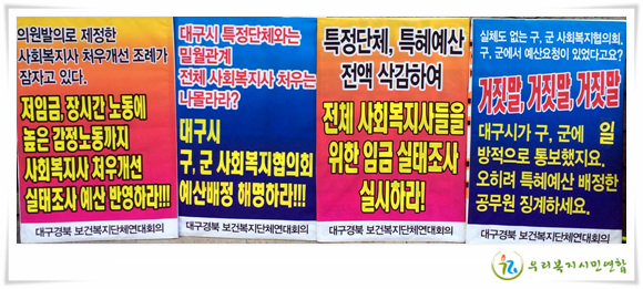 ¡ºº¸À°±³»ç °íÃæ 󸮼¾ÅÍ¡» µ¶¸³Àû ¿î¿µ°ú »çȸº¹Áö»ç ÀÓ±Ý ½ÇÅÂÁ¶»ç ½Ç½Ã Ã˱¸ ¿ì¸®º¹Áö½Ã¹Î¿¬ÇÕ°ú °ø°ø¿î¼ö³ëÁ¶¿¬¸Í ´ë°æº»ºÎ µî ´ë±¸°æºÏº¸°Çº¹Áö´Üü¿¬´ëȸÀÇ´Â 26ÀÏ ¿ÀÀü 9½Ã30ºÐ ´ë±¸½ÃÀÇȸ ¾Õ¿¡¼ Áö³ 6¿ù¿¡ ´ë±¸½Ã°¡ ¹ßÇ¥ÇÑ ‘¾î¸°ÀÌÁý °ø°ø¼º °È ´ëÃ¥’ÀÌ »ý»ö³»±â ´ëÃ¥¿¡ ºÒ°úÇÏ°í ½ÇÈ¿¼ºµµ ÀüÇô ¾ø´Ù¸ç ±âÀÚȸ°ß°ú ÇÇÄÏÆÃÀ» °¡Á³´Ù. ¿ÀÀü 10½ÃºÎÅÍ ÁøÇàµÇ´Â »çȸº¹Áö¿©¼º±¹¿¡ ´ëÇÑ ´ë±¸½ÃÀÇȸ ¹®Èº¹ÁöÀ§¿øÈ¸ÀÇ ¿¹»ê½ÉÀǵµ ¹æÃ»Çß´Ù. Áö³ 5¿ù ´ë±¸¾î¸°ÀÌÁý¿¬ÇÕȸ ¹Î°£¾î¸°ÀÌÁýºÐ°ú ´Þ¼±¸Áöȸ´Â º¸À°±³»ç 7¸íÀÇ ºí·¢¸®½ºÆ® ¸í´ÜÀ» ÀÛ¼º, °øÀ¯Çϰí À¯Æ÷ÇÑ »ç½ÇÀÌ Àü±¹¿¡¼ óÀ½ µå·¯³µ´Ù. ¹Î°£¾î¸°ÀÌÁý Àüü°¡ °øÀ¯ÇÑ ºí·¢¸®½ºÆ®´Â ¿¬ÇÕȸ Â÷¿ø¿¡¼ Á¶Á÷ÀûÀ¸·Î ÀÌ·ç¾îÁ³Áö¸¸, ´ë±¸½Ã¿Í ´Þ¼±¸´Â »çÀü¿¡ ¾Ë°íµµ ¹¬ÀÎÇϰí Áø»ó±Ô¸íµµ Á¦´ë·Î µÇÁö ¾Ê¾Æ ¸¹Àº ºñÆÇÀ» ¹Þ¾Ò´Ù. ÀÌÈÄ ´ë±¸½Ã´Â 6¿ù¿¡ ´ë±¸½ÃÀå °áÀç±îÁö ¹Þ°í °£ºÎȸÀDZîÁö °øÀ¯ÇÑ ¡¸¾î¸°ÀÌÁý °ø°ø¼º °È ´ëÃ¥¡¹À» ¹ßÇ¥Çß´Ù. ÀÌ ´ëÃ¥ÀÇ ÇÙ½ÉÀº º¸À°±³»çÀÇ °íÃæÀ» ó¸®Çϰí, °øÀÍÁ¦º¸¸¦ Ȱ¼ºÈÇÏ´Â ¡ºº¸À°±³»ç °íÃæ 󸮼¾ÅÍ¡»¸¦ ¸¸µé°Ú´Ù´Â °Í. ±×·±µ¥, 2014³â ¿¹»ê¿¡ 2õ¸¸¿ø¸¸ ¹Ý¿µµÇ°í, ¿î¿µµµ ´ë±¸½Ãº¸À°Á¤º¸¼¾ÅÍ¿¡¼ ¸Ã´Â´Ù°í µÇ¾î ÀÖ´Ù. À̳¯ ±âÀÚȸ°ß¿¡¼´Â “º¿¹°Ã³·³ ÅÍÁö´Â ¾î¸°ÀÌÁý ºñ¸®¸¦ »çÀü¿¡ ¿¹¹æÇϱâ À§Çؼ´Â ³»ºÎ°í¹ßÀÚÀÇ ºñ¹Ðº¸Àå°ú ½ÅºÐº¸ÀåÀÌ ¹Ýµå½Ã ÇÊ¿äÇϸç, ÀúÀÓ±Ý Àå½Ã°£³ëµ¿, ³ôÀº °¨Á¤³ëµ¿¿¡ ½Ã´Þ¸®´Â ¾î¸°ÀÌÁý ±³»çÀÇ °íÃæÀ» ÇØ°áÇϱâ À§Çؼ´Â µ¶¸³ÀûÀÎ ¿î¿µÀÌ ¿ä±¸µÈ´Ù”°í ÁÖÀåÇß´Ù. ¼³¸³ÃëÁö³ª ±â´ÉÀ¸·Î ºÃÀ» ¶§, ´ë±¸½Ãº¸À°Á¤º¸¼¾ÅͰ¡ °íÃæ»ó´ã°ú ³»ºÎÀÚ ºñ¸®°í¹ß±îÁö ´ã´çÇÑ´Ù´Â °Í ÀÚü°¡ ³Í¼¾½º¶ó´Â °ÍÀÌ´Ù. ºñ¹Ðº¸Àåµµ Èûµé »Ó ¾Æ´Ï¶ó ¼³·É ³ë¹«»ç¸¦ ä¿ëÇÏ´õ¶óµµ ÀÏÁÖÀÏ Áß 2~3ÀÏ ½Ã°£Á¦·Î ³ª¿Í¼ »ó´ãÀ» ÇØµµ ½ÇÈ¿¼ºÀÌ ¾ø´Ù´Â °Í. º¸À°±³»ç ´©°¡ ÀÌ ¼¾Å͸¦ ã°Ú´À³Ä´Â °ÍÀÌ´Ù. ÀÌ¿¡ ´ëÇØ ÀºÀç½Ä ¿ì¸®º¹Áö½Ã¹Î¿¬ÇÕ »ç¹«Ã³ÀåÀº °ø¹«¿ø¿¡ ÀÇÇØ ÁÂÁö¿ìÁöµÇ´Â ¿¹»êÆí¼ºÀÇ ½É°¢ÇÑ ¿Ö°î¹®Á¦¸¦ ÁöÀûÇß´Ù. Àº óÀåÀº “¹Ì¹ßÁ·ÇÑ ¹Î°£´Üü¿¡ ´ëÇØ¼´Â ƯÇý¼º ¿¹»êÀ» Æí¼ºÇϰí, Àüü »çȸº¹Áö»çµéÀÇ Ã³¿ì°³¼± ¿¹»êÀº ¹Ý¿µÁ¶Â÷ ÇÏÁö ¾Ê°í, ´ë±¸½ÃÀåÀÌ ¾à¼ÓÇÑ º¸À°±³»ç °íÃæ 󸮼¾ÅÍ´Â À¯¸í¹«½ÇȽÃŰ´Â ÇàÀ§ ÀÚü°¡ °ø¹«¿øÀÇ µ¶Á¡ÀûÀÎ ¿¹»êÆí¼º ±ÇÇÑ ¶§¹®”À̶ó°í ÁÖÀåÇß´Ù. ÀÌ·± ½É°¢ÇÑ ¿¹»êÆí¼º ¿Ö°îÀº À¯ÂøÀÇȤÀ̳ª ƯÇýÁö¿ø ¹®Á¦¸¦ ³º´Â´Ù´Â °ÍÀÌ´Ù. ´ëºÎºÐ ÀÌÀÍÁý´ÜÀ̳ª ¹Î°£´ÜüÀÇ Ä¡¿ÇÑ ·ÎºñÀÇ °¢ÃàÀüÀº ¿¹»êÀÌ´Ù. ¿¹»êÀ» »ðÀÔ½Ã۰í Áõ¾×½ÃŰ´Â ÇÑÆí ¹Î°£´Üü¿¡ ºÒ¸®ÇÑ °æ¿ì¿¡´Â »è°¨±îÁö ½ÃŰ´Â »ç·Ê°¡ ´Ã°í ÀÖ´Ù´Â ¾ê±â´Ù.