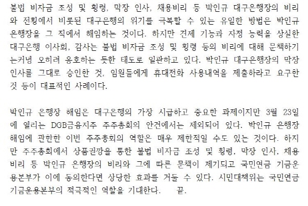 [º¸µµÀÚ·á] DGB±ÝÀ¶ÁöÁÖ ÁÖÁÖÃÑȸ ½Ã ±¹¹Î¿¬±Ý°ø´Ü ¿µÇâ·Â Çà»ç ¿äû (3.20)