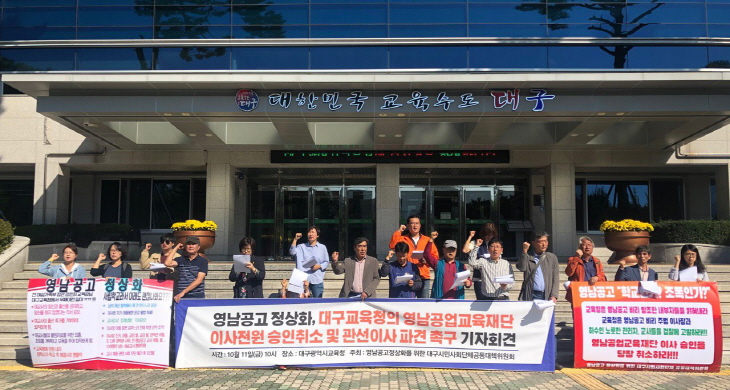 ´ë±¸±³À°Ã»ÀÇ ¿µ³²°ø°í ÀÌ»çÀü¿ø½ÂÀÎÃë¼Ò ¹× °ü¼±ÀÌ»çÆÄ°ß Ã˱¸ ±âÀÚȸ°ß ´ë±¸±³À°Ã»Àº Áö³ 8¿ù 29ÀÏ ¿µ³²°ø°í¿¡ ´ëÇÑ °¨»ç Á÷ÈÄ ±³À°Ã» °¨»ç´ã´çÀÚÀÇ °¨»ç °á°ú¿¡ ´ëÇÑ ¾ð·Ð ÀÎÅͺ信¼ ¿µ³²°ø°í »ç¾ÈÀº ÀÌ»çÀå¿¡ ´ëÇØ¼¸¸ ÀÌ»ç½ÂÀÎÃë¼Ò¸¦ ÁøÇàÇÒ °ÍÀ̸ç, ÀÌ»çÀü¿ø½ÂÀÎÃë¼ÒÀÇ ´ë»óÀÌ µÇÁö´Â ¸øÇÑ´Ù´Â °ø½Ä ÀÔÀåÀ» ¹ßÇ¥ÇÏ¿´´Ù. À̰ÍÀº ÇѸ¶µð·Î ³ë°ñÀûÀÎ ºÎÆÐ»çÇÐ Æíµé±â¸¦ À§ÇÑ ²Ä¼öÀÌ´Ù. ½Ê ¼ö ³â¿¡ °ÉÄ£ ¿µ³²°ø°í ÀÌ»çÀå°ú ±×ÀÇ ¼öÁ·µéÀÌ ÀúÁö¸¥ ºÒ¹ý°ú ºÎÆÐ´Â ±³À°Ã»ÀÇ ¸ð¸£¼è Á¤µµ°¡ ¾Æ´Ï¶ó Àû±ØÀûÀÎ °¡´ã ¾øÀÌ´Â ºÒ°¡´ÉÇÏ¿´´Ù. ´ë±¸±³À°Ã»Àº ¾ðÁ¦±îÁö ¿µ³²°ø°í Á¤»óȸ¦ ¹Ì·ç·Á Çϴ°¡. ¾Æ´Ï ºÎÆÐ»çÇÐÀÇ µÞ¹è ³ë¸©À» °è¼ÓÇÏ·Á´Â°¡. ¿µ³²°ø°í Á¤»óÈÀÇ Àǹ̸¦ ¾ÆÁ÷µµ ¸ð¸¥ ô ÇÒ °ÍÀΰ¡. ¼ºÀûÁ¶ÀÛÀÇ ÀÏ»óÈ, ¿©±³»çµé¿¡ ´ëÇÑ Áß¼¼Àû ¼öÁØÀÇ ÀαÇź¾Ð, ±³»ç ä¿ë¿¡ ±Ýǰ¼ö¼ö, Çб³¸¦ Àå¾ÇÇϴµ¥ ÇÊ¿äÇÏ´Ù¸é »ç¾ÇÇϱ⠱×Áö¾ø´Â ¹æ¹ýµµ µ¿¿øÇϴµ¥ ÁÖÀúÇÔÀÌ ¾ø´Â ÀÌ»çÀå°ú ±×ÀÇ ¼öÁ·µé, ÀåÇаüÀ» ÅëÇÑ ±³À°Ã»°ú ÇùÀâ¿¡ ¿©±³»ç¸¦ ¼ú½ÃÁß µé°Ô ÇÏ´Â ¾Ç¸¶Àû ¹ß»ó. ÀÏÀÏÀÌ ³ª¿Çϱ⵵ ¹Î¸ÁÇÑ ºñ¸® ¹éÈÁ¡ ¿µ³²°ø°í. ¾ð·Ð º¸µµ¿¡ ÀÇÇÏ¸é ¿©±³»ç ¼ú½ÃÁßÀÌ ´ç½ÃÀÇ ¹®È¿´´Ù°í »õ·Î ±³ÀåÀ» ¸ÃÀº ±³»ç°¡ Å¿¬È÷ Áø¼úÇϰí ÀÖ´Ù. ÀÌ·± »ç¶÷ÀÌ »õ ±³ÀåÀ̶ó´Ï °Ô´Ù°¡ ¼ºÀûÁ¶ÀÛÀ» ÁÖµµÇÑ ±³»ç´Â ±³À°Ã»ÀÌ ºÒÇãÇØµµ ±³°¨ Á÷¹«´ëÇàÀÌ µÇ¾ú´Ù°íµµ ÇÑ´Ù. ¾ÆÁ÷µµ ±»°ÇÇÏ°Ô Çã¼±À± ÀÌ»çÀåÀÇ ¿µÇâ·ÂÀº ±×´ë·Î À¯ÁöµÇ°í ÀÖÀ½ÀÌ ºÐ¸íÇÏ´Ù. ½ÉÁö¾î ÀÚ½ÅÀÇ ºñ¸®¸¦ Áõ¾ðÇÑ ±³»çµé¿¡ ´ëÇÑ °í¼Ò¿Í ½ÉÁö¾î ¾ð·Ð±îÁö ¸Å¼öÇÏ·Á´Â ½Ãµµ±îÁö, ±×ÀÇ ¾ÇÇàÀº °ÅħÀÌ ¾ø´Ù. ¶ÇÇÑ ÇöÀç ¿µ³²°ø°í´Â À̹ø ±¹Á¤°¨»ç ÀÚ·áÁ¦Ã⠿䱸¸¦ °ÅºÎÇϰí ÀÖ´Ù. ±³À°Ã»ÀÌ ¿ä±¸Çصµ ¡®ÀÚ·á°¡ ¾ø´Ù.¡¯ ¡®Æó±âÇß´Ù.¡¯ µîÀ¸·Î ¹öƼ°í ÀÖ´Â ÁßÀ̶ó°í ÇÑ´Ù. ±×·¸´Ù¸é ±³À°Ã»Àº ±¹Á¤°¨»ç¹ýÀ» Àû¿ëÇÏ¿© ÀÌ»çÀü¿ø½ÂÀÎÃë¼Òµµ °¡´ÉÇÏ´Ù. ¾î¼´Ù ´ë±¸±³À°Ã»Àº ÀÌ·¸°Ô ºñ¸®»çÇп¡°Ô Á¶Â÷ °³ ¹«½Ã´çÇϰí ÀÖ´Â °ÍÀϱî. ÇöÀçÀÇ ¿µ³²°ø°í´Â ¼ÓµÈ ¸»·Î µÚÁý¾î¾þ¾îµµ Á¤»óȰ¡ ºÒ°¡´ÉÇÔÀ» È®ÀνÃÄÑÁÖ°í ÀÖ´Ù. ÀÌÂë µÇ¸é Á¤»óÀûÀÎ ±³À°Ã»À̶ó¸é ½º½º·Î ¹®Á¦¸¦ ¹àÇô³»°í ½Ã¹Îµé¿¡°Ô ¼®°í ´ëÁËÇϴ ŵµ¶óµµ º¸ÀÌ·Á ÃÖ¼±À» ´ÙÇÒ °ÍÀÌ´Ù. ´ë±¸±³À°Ã»Àº ½º½º·Î ¹°¾îº¸¶ó. Áö±Ý±îÁö ÇÑ ÀÏÀÌ ¹«¾ùÀÎÁö. 1³â ¹Ý µ¿¾È ¹«·Á ¼¼ Â÷·Ê °ÅÀÇ ´Ù¼¸ ´Þ °£ °¨»ç¸¦ Çß´Ù. ±×·±µ¥ Á¦´ë·Î µÈ °¨»ç°á°ú°¡ ³ª¿ÔÀ»±î. 18°³¿ù Á¤µµÀÇ ±â°£¿¡ ¿¬¼Ó 3¹øÀÇ °¨»ç, ÀÌ»çÀ常 ½ÂÀÎÃë¼Ò. °¨»çÇÏ°í ³ª¸é ¶Ç ´Ù¸¥ »ç¾ÈÀÌ ºÒ°ÅÁö°í ÇÏ°í³ª¸é ¶Ç ºÒ°ÅÁö´Â ¾Ç¼øÈ¯. ¼ú´ëÁ¢ ¹ÞÀº ÀåÇаüÀº ¼ú¸¸ ¹Þ¾Æ¸Ô¾úÀ»±î. ¼·Î °Å·¡ÇÑ ³»¿ëÀÌ ÀÖ¾úÀ» ÅÍ. °Ô´Ù°¡ ±× ÀåÇаü ¾ÆµéÀÌ ¿µ³²°ø°í ÇàÁ¤½Ç Á÷¿øÀ¸·Î Ãë¾÷Çß´Ü ¸»ÀÌ´Ù. ±³À°Ã» ½º½º·Î°¡ °¨»ç±â´ÉÀ» »ó½ÇÇßÀ½À» ÀÚ¹éÇÏ´Â °ÍÀÌ ¾Æ´Ï¶ó¸é ±×µéÀÌ ¹«¾ùÀ» °Å·¡Çß´ÂÁö ±×°ÍÀ» ¹àÇô³»¶ó´Â °ÍÀÌ´Ù. ±³À°Ã»ÀÇ °èȹ´ë·Î Çö ÀÌ»çÀ常 ÀÌ»çÁ÷À» Ãë¼ÒÇÑ´ÙÇѵé, ±×°¡ ³»¼¼¿î À̸§»ÓÀÎ ÀÌ»çµéÀÌ ¿©ÀüÈ÷ Àϰö ¸íÀ̳ª ³²¾Æ ÀÖ´Ù. À̵é Áß¿¡´Â ÀüÁ÷ ±³°¨µéµµ Àִµ¥, ±×Áß¿¡´Â ¾ÆµéÀÌ ¿µ³²°ø°í ±³»ç·Î ¼¼½ÀÇϰí ÀÖ´Â °æ¿ìµµ ÀÖ´Ù. ½ÉÁö¾î ÇöÀç ±³ÀåÁ÷À» ´ëÇàÇϰí ÀÖ´Â ±³»çÀÇ µþµµ ±³Á÷ ¼¼½ÀÀÚÀÌ´Ù. À̵éÀº ÀÌ»ç·Î¼ÀÇ ÀÚ°ÝÀÌ ¾ø´Ù. ½Ê ¼ö ³â °£ ¹ú¾îÁø Çб³ ¾È¿¡¼ÀÇ ÆÄÇàÀûÀÎ Àϵ鿡 ´ëÇØ¼ ¾Æ¹« °Íµµ ¸ô¶ú´Ù¸é ±× ÀÚü·Î ÀÚ°Ý »ó½Ç°¨ÀÌ´Ù. ¶ÇÇÑ ÀÌ»çÀå°ú ±× ¼öÁ·µéÀÌ Çб³¸¦ ¸ÁÄ¡°í ÀÖ¾úÀ½¿¡µµ ÃÖ¼ÒÇÑÀÇ °ßÁ¦ ¿ªÇÒµµ ¸øÇß´Ù´Â °ÍÀº À̵鵵 °ø¹üÀÇ °¡´É¼ºÀÌ ÀÖ´Â °ÍÀÌ´Ù. ±³À°Ã»Àº °¨»ç¿¡¼ ÀÌ Á¤µµ ³»¿ëµµ È®ÀÎÇÏÁö ¾Ê¾Ò´Ù¸é Á÷¹«À¯±âÀÌ´Ù. Â÷¶ó¸® ±³À°Ã» ¿ª½Ã À̵éÀÌ À̸§»ÓÀÎ ÀÌ»çÀ̸ç, Çö ÀÌ»çÀå È¥ÀÚ¼ ÀÌ ¸ðµç ÀÏÀ» ÀúÁú·¯ ¿ÔÀ½À» ÀÌ¹Ì ÆÄ¾ÇÇϰí ÀÖ¾ú´Ù°í º½ÀÌ ¿ÇÀ» °ÍÀÌ´Ù. µû¶ó¼ ±³À°Ã»ÀÇ Á¶Ä¡´Â ¹ÌÈíÇÏ´Ù. ¾Æ´Ï ±â¸¸Ã¥ÀÌ ¾Æ´Ñ°¡ ÇÏ´Â ÀǽÉÀ» »ç±â¿¡ ÃæºÐÇÏ´Ù ÇÒ °ÍÀÌ´Ù. Çã¼±À± ÀÌ»çÀåÀº Àá½Ã °ø½ÄÀûÀÎ ÀÌ»çÀå¿¡¼ ¹°·¯³ª º¸ÀÏ »Ó ¿©ÀüÈ÷ ¿µ³²°ø°í¸¦ Áö¹èÇÑ´Ù. ±×µ¿¾È Çö ÀÌ»çÀå°ú ´õºÒ¾î Çб³¸¦ ºñ¸®¿Í ÆÄÇàÀ¸·Î À̲ø¾î ¿Ô´ø ±×ÀÇ ¼öÁ·µéÀº ¿©ÀüÈ÷ ½Â½ÂÀ屸Çϰí ÀÖ´Ù. À̰ÍÀ» ¿µ³²°ø°