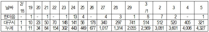 ´ë±¸½Ã Á÷¿µ ÇѸ¶À½¾ÆÆÄÆ® Áý´Ü¹ßº´ÀÇ ´ÁÀå ´ëÀÀ, µÞºÏ ¹ßÇ¥¸¦ °·Â ±ÔźÇÑ´Ù. ´ë±¸½Ã »ç¾÷¼ÒÀÎ Á¾ÇÕº¹Áöȸ°üÀÌ ¿î¿µÇÏ´Â ÀÓ´ë¾ÆÆÄÆ®(ÇѸ¶À½¾ÆÆÄÆ®)¿¡¼ 46¸íÀ̳ª µÇ´Â Äڷγª19 Áý´Ü¹ßº´°ú ÄÚȣƮ °Ý¸®´Â ´ë±¸½Ã ¹æ¿ª ´ç±¹ÀÌ ¾Æ´Ñ ¾ð·Ð¿¡ ÀÇÇØ ¾Ë·ÁÁ® Áö¿ªÁֹο¡°Ô Ãæ°ÝÀº ¹°·Ð ¼ö¸¹Àº Àǹ®À» ´øÁö°í ÀÖ´Ù. ÀÌ ¾ÆÆÄÆ® ÀÔÁÖÀÚ 140¸í Áß 46¸íÀÌ È®ÁøÀ» ¹Þ¾Ò°í, È®ÁøÀÚ´Â Àü¿ø ½ÅõÁö ±³ÀÎÀ¸·Î µå·¯³µ´Ù. ´ë±¸½Ã´Â 3¿ù 4ÀÏ Àü±¹¿¡¼ óÀ½À¸·Î ¾ÆÆÄÆ® ´ë»ó ÄÚȣƮ °Ý¸®¸¦ ÇÏ¸é¼ À̸¦ Áï°¢ °ø°³ÇÏÁö ¾Ê´Ù°¡ 3ÀÏ ÈÄ ¾ð·Ðº¸µµ°¡ ³ªÀÚ ºÎ·ªºÎ·ª °ø°³Çß´Ù. µÞºÏ °ø°³¿¡ ´ëÇÑ ÇØ¸íµµ ¼®¿¬Ä¡ ¾Ê´Ù. ±Ç¿µÁø ½ÃÀåÀº 3¿ù 8ÀÏ Á¤·Êºê¸®Çο¡¼ "ÇÏ·ç ¼ö¹é¸í¾¿ ³ª¿À´Â ȯÀÚ¸¦ ¿ªÇÐÁ¶»ç·Î ¿¬°ü¼ºÀ» ¹àÈ÷´Â °ÍÀº ºÒ°¡´ÉÇϸç, ÀÌ ¾ÆÆÄÆ® È®ÁøÀÚµéÀÌ ÇѲ¨¹ø¿¡ ¾ç¼º ÆÇÁ¤À» ¹ÞÀº °Ô ¾Æ´Ï¾ú´Ù"°í ÇØ¸íÇß´Ù. ±Ç ½ÃÀåÀÌ ¸»ÇÑ ÀÌ ºÎºÐÀÌ ¿ì¸®°¡ ÀÇȤÀ¸·Î º¸´Â ÀïÁ¡ÀÌ´Ù. °Ëü °Ë»ç¸¦ ÇÑ´Ù´Â µ¿Ç⺸°í¸¦ ´ë±¸½Ã°¡ ¼¸éÀ¸·Î ¿©·¯ Â÷·Ê ¹Þ¾Ò´Ù´Â ÀÇȤÀÌ Á¦±âµÇ°í ÀÖ°í, ½ÅõÁö ½ÅµµµéÀÇ ÇѸ¶À½¾ÆÆÄÆ® ´Ù¼ö °ÅÁÖ »ç½ÇÀ» ¾Ë°í ÀÖ´Â »óȲ¿¡¼ ÀÌ¹Ì ´ë±¸½Ã°¡ ½ÅõÁö ½Åµµ¿¡ ´ëÇÑ Àü¼öÁ¶»ç¸¦ ½ÃÀÛÇß°í, Áý´Ü°ÅÁֽü³ÀÌ¶ó ¿ªÇÐÁ¶»ç·Î ¿¬°ü¼ºÀ» ¹àÈ÷±â°¡ ºÒ°¡´ÉÇÑ ½ÃÁ¡µµ ¾Æ´Ï¾úÀ¸¸ç °¡º±°Ô ³Ñ¾î°¥ ¹®Á¦´Â ´õ¿í ¾Æ´Ï±â ¶§¹®ÀÌ´Ù. ¸¸¾à, ´ëÇÐ ±â¼÷»ç¿Í °°Àº Áý´Ü½Ã¼³¿¡¼ ¹æÈ£º¹±îÁö ÀÔÀº ¹æ¿ª¿ä¿øÀÌ °Ëü °Ë»ç¸¦ Çß´Ù¸é, ÀÌ·¸°Ô ´ëÃæ ³Ñ¾î°¬À»±î? ´ë±¸½Ã°¡ Á÷¿µ °ü¸®ÇÏ´Â ÇѸ¶À½¾ÆÆÄÆ®´Â 2ÀÎ 1½ÇÀ̾ú´Ù°¡ 2017³â 8¿ù ¡®´ë±¸±¤¿ª½Ã Á¾ÇÕº¹Áöȸ°ü ¿î¿µ Á¶·Ê ½ÃÇà±ÔÄ¢¡¯À» °³Á¤ÇÏ¿© 1ÀνÇÀÌ 50°¡±¸°¡ µÈ °ÍÀ¸·Î ÆÄ¾ÇµÇ¸ç, ´ë±¸½Ã Á¶·Ê¿Í ±ÔÄ¢¿¡ ÀǰŠÁ¾ÇÕº¹Áöȸ°ü¿¡¼ ½Åû°ú ¼±Á¤, °ü¸® µî ¸ðµç ¾÷¹«¸¦ ´ã´çÇϰí ÀÖÀ¸¸ç, ¾ÆÆÄÆ® °ü¸®½Ç °ü¸®ÀÚµµ °ø¹«Á÷ °ø¹«¿ø 3¸íÀÌ ÀÖ´Ù. Áï, ´ë±¸±¤¿ª½Ã Á¾ÇÕº¹Áöȸ°üÀº ¹Î°£±â°üÀÌ ¾Æ´Ï°í ´ë±¸½Ã °ø¹«¿øµéÀÌ ±Ù¹«ÇÏ´Â ´ë±¸½Ã »ç¾÷¼Ò(°üÀå : 4±Þ)À̸ç, ÇѸ¶À½¾ÆÆÄÆ®´Â Á¶·Ê¿Í ±ÔÄ¢¿¡ µû¶ó ¾ö°ÝÈ÷ °ü¸®µÇ´Â »ç¾÷ÀåÀÌ´Ù. 1. ´ÁÀå ´ëÀÀ