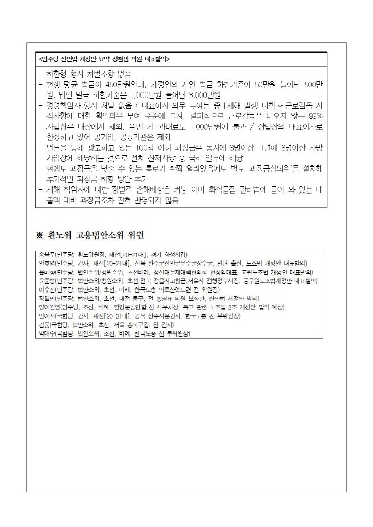 < ±âÀÚȸ°ß¹® > ¹®ÀçÀÎÁ¤ºÎ¿Í ´õºÒ¾î¹ÎÁÖ´çÀº ³ëµ¿¹ý¾È °³¾Ç½Ãµµ¸¦ ´çÀå ¸ØÃç¶ó! ¹®ÀçÀÎ Á¤ºÎ¿Í ´õºÒ¾î¹ÎÁÖ´çÀÌ ³ëÁ¶¹ýÀ» ºñ·ÔÇÑ ³ëµ¿°³¾Ç ¹ý¾È Àüü¸¦ ¿À´Â 30ÀÏ È¯³ëÀ§ °í¿ë³ëµ¿¼ÒÀ§ ½ÉÀǺÎÅÍ 12¿ù 9ÀÏ º»È¸ÀDZîÁö ¾à ¿Èê ¸¸¿¡ ÀÏ»çõ¸®·Î ó¸®ÇÏ·Á´Â ¿òÁ÷ÀÓÀ» º¸À̰í ÀÖ½À´Ï´Ù. ¹®ÀçÀÎ Á¤ºÎ´Â ±¹Á¦³ëµ¿±â±¸(ILO) ÇÙ½ÉÇù¾àÀ» ºñÁØÇÏ·Á¸é »Ô³ ÀÚº»°¡µéÀ» ´Þ·¡¾ß ÇÑ´Ù¸ç, Àü´ë¹Ì¹®ÀÇ ¿ª´ë±Þ ³ëµ¿°³¾ÇÀ» ½ÃµµÇϰí ÀÖ½À´Ï´Ù. Á¦ÃâµÈ ³ëµ¿°³¾Ç¾ÈÀº ÇöÀå¼±ÀüÀü, ÇöÀå¼øÈ¸, Áýȸ µî ÀïÀÇÇàÀ§¸¦ ±ÝÁöÇÏ°í ÆÄ¾÷À» ÇÏ¸é »ç¾÷Àå¿¡¼ ÂѰܳ¯ ¼öµµ ÀÖ½À´Ï´Ù. ILOÇÙ½ÉÇù¾à°ú ¸Â¹Ù²Ù°Ú´Ù´Â Á¤ºÎÀÇ ³ëÁ¶¹ý °³Á¤¾ÈÀº ³ëµ¿Á¶ÇÕÀÇ °£ÆÇ¸¸ ³²°Ü ³õ´Â ¸í¹éÇÑ ³ëÁ¶ÆÄ±«¹ýÀÔ´Ï´Ù. ±Ù·Î±âÁعýÀ» ¿ÀÈ÷·Á ÈÄÅð½ÃŰ´Â ¹®ÀçÀÎ Á¤ºÎÀÇ ³ëµ¿°³¾Ç¾ÈÀº öȸµÇ¾î¾ß ÇÕ´Ï´Ù. ÀÌ¿¡ ´õÇØ Áß´ëÀçÇØ±â¾÷ó¹ú¹ý Á¦Á¤°ú °ü·ÃÇØ¼µµ ´õºÒ¾î¹ÎÁÖ´çÀº °æ¿µ Ã¥ÀÓÀÚ¿¡ ´ëÇÑ Ã³¹úÀÌ Á¦¿ÜµÈ »ê¾È¹ý °³Á¤À¸·Î ¹Ð¾îºÙÀÌ·Á Çϰí ÀÖ½À´Ï´Ù. Áö³ 12ÀÏ ¹®ÀçÀÎ Á¤ºÎ´Â ÀüÅÂÀÏ ¿»ç¿¡°Ô ¹«±ÃÈ ÈÆÀåÀ» ÁÖ¾ú½À´Ï´Ù. Á¤ºÎ´Â ÀüÅÂÀÏ ¿»ç 50Áֱ⿡ ÈÆÀåÀ¸·Î »ý»ö³¾ °ÍÀÌ ¾Æ´Ï¶ó, ³ëµ¿°³¾ÇÀ» ¸ØÃß°í ÀüÅÂÀÏ3¹ýÀ» ÀÔ¹ýÇØ¾ß ÇÒ °ÍÀÔ´Ï´Ù. Çå¹ýÀÌ º¸ÀåÇÏ´Â ³ëµ¿ÀÚÀÇ ±âº»±Ç, ³ëÁ¶ÇÒ ±Ç¸®, »ý¸í°ú ¾ÈÀüÀ» º¸È£ÇÒ ÃÖ¼ÒÇÑÀÇ ÀÇÁöµµ ¾ø´Â ¹®ÀçÀÎ Á¤ºÎ¿Í ´õºÒ¾î¹ÎÁÖ´çÀÇ ³ëµ¿°³¾Ç ½Ãµµ¸¦ °·ÂÈ÷ ±ÔźÇϸç, ¹ÎÁÖ³ëÃÑÀº 25ÀϺÎÅÍ ÃÑÆÄ¾÷À» ¿¹°íÇϰí ÀÖ½À´Ï´Ù. ´ë±¸Áö¿ªÀÇ ½Ã¹Î»çȸ´Üü¿Í Áøº¸Á¤´çÀº ÀÌ·¯ÇÑ ³ëµ¿ÀÚµéÀÇ ÅõÀïÀ» Àû±Ø ÁöÁöÇÕ´Ï´Ù. ÀüÅÂÀÏ ¿»ç°¡ ÀÚ½ÅÀÇ ¸ö¿¡ ºÒÀ» ºÙÀÎ Áö 50³âÀÌ µÇ´Â ÇØ¿¡ °Å²Ù·Î °¡´Â ¹®ÀçÀÎ Á¤ºÎ¿Í ¹ÎÁÖ´çÀÇ ³ëµ¿Á¤Ã¥À» ¸·¾Æ³»°í, ¸ðµç ³ëµ¿ÀÚ¸¦ À§ÇÑ ÀüÅÂÀÏ 3¹ýÀÌ ¿ÂÀüÈ÷ ÀÔ¹ýµÉ ¼ö ÀÖµµ·Ï ¿¬´ëÇϰí ÅõÀïÇÒ °ÍÀÔ´Ï´Ù.