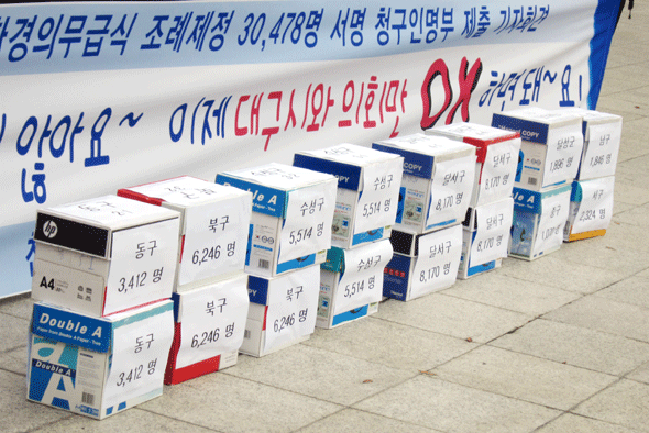 ¡¸Ä£È¯°æ Àǹ«±Þ½Ä Á¶·ÊÁ¦Á¤À» À§ÇÑ ´ë±¸½Ã¹Î 30,478¸í ¼¸í û±¸ÀθíºÎ¡¹´ë±¸½Ã Á¦Ãâ ±âÀÚȸ°ß