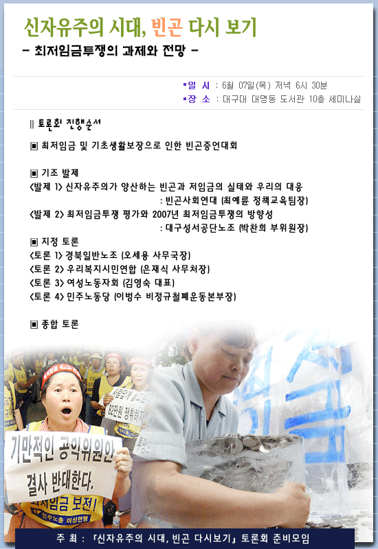 6¿ù¸»¿¡ 2007³â ÃÖÀúÀÓ±ÝÀÌ °áÁ¤µË´Ï´Ù. ÃÖÀúÀÓ±ÝÀÌ ÃÖ°íÀÓ±ÝÀ¸·Î ¹Þ´Â »ç¶÷µéÀÌ ´Ã¾î³ª°í ÀÖ½À´Ï´Ù.