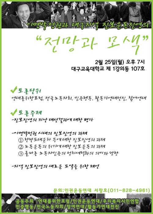 2/25 À̸í¹Ú Á¤±Ç°ú ´ë±¸Áö¿ª Áøº¸¿îµ¿Áø¿µÀÇ Àü¸Á°ú ¸ð»ö